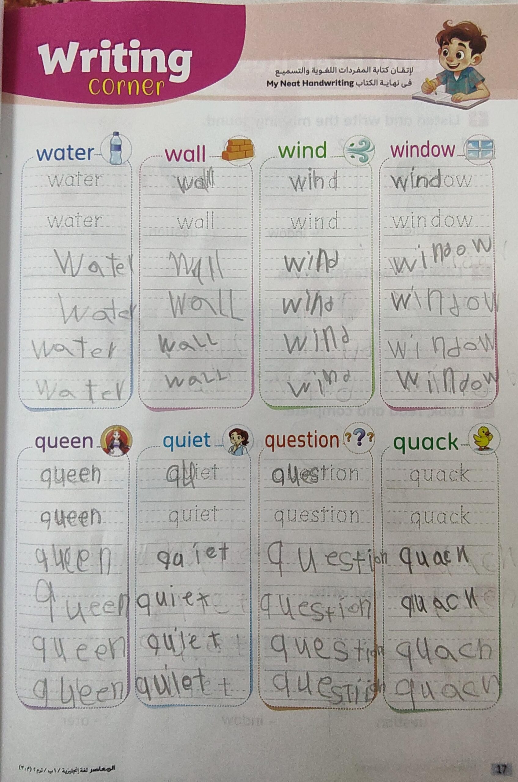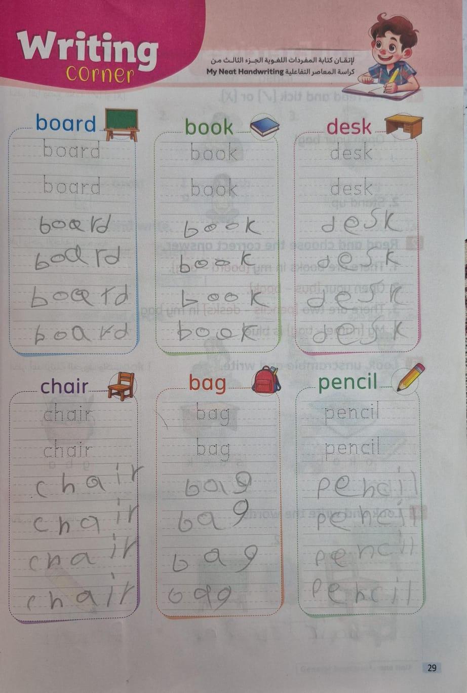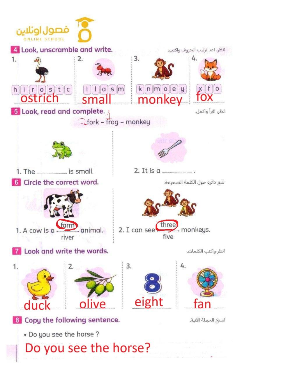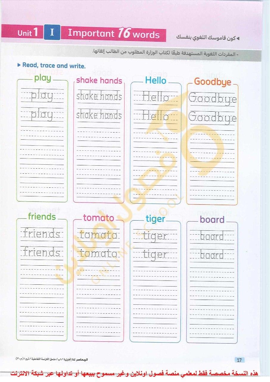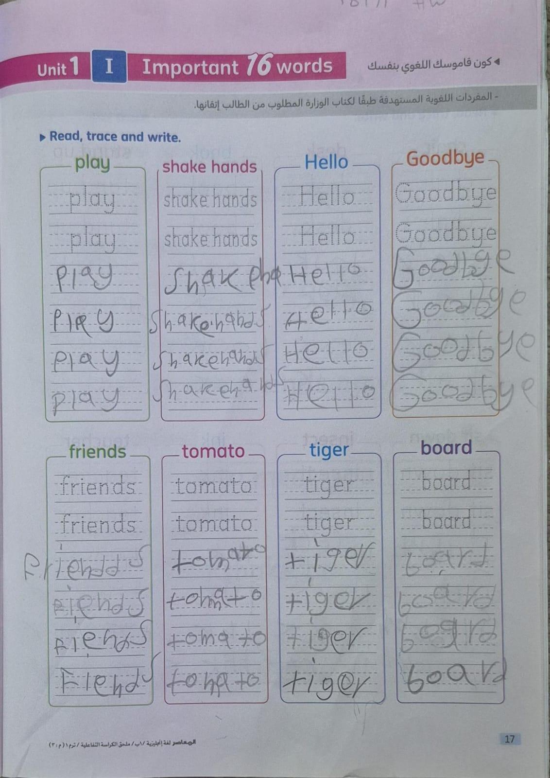 HW حفظ الكلمات وحل أسئلة الكتاب صفحة ١٨،١٩،٢٠