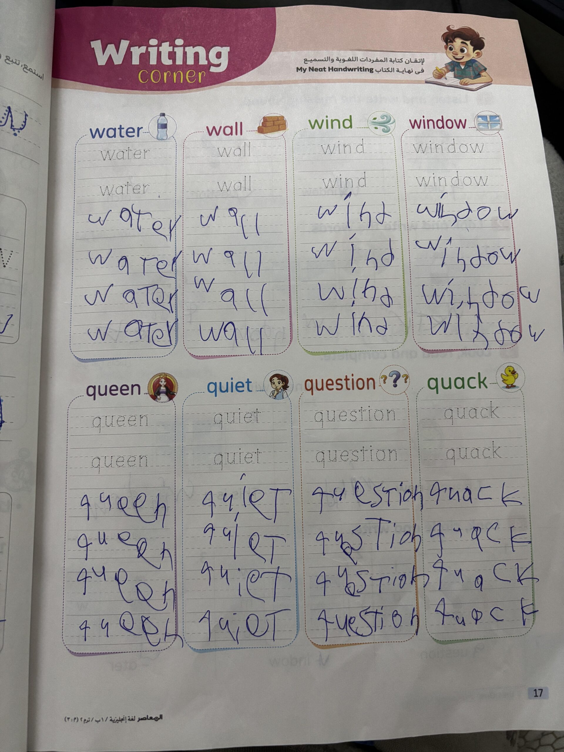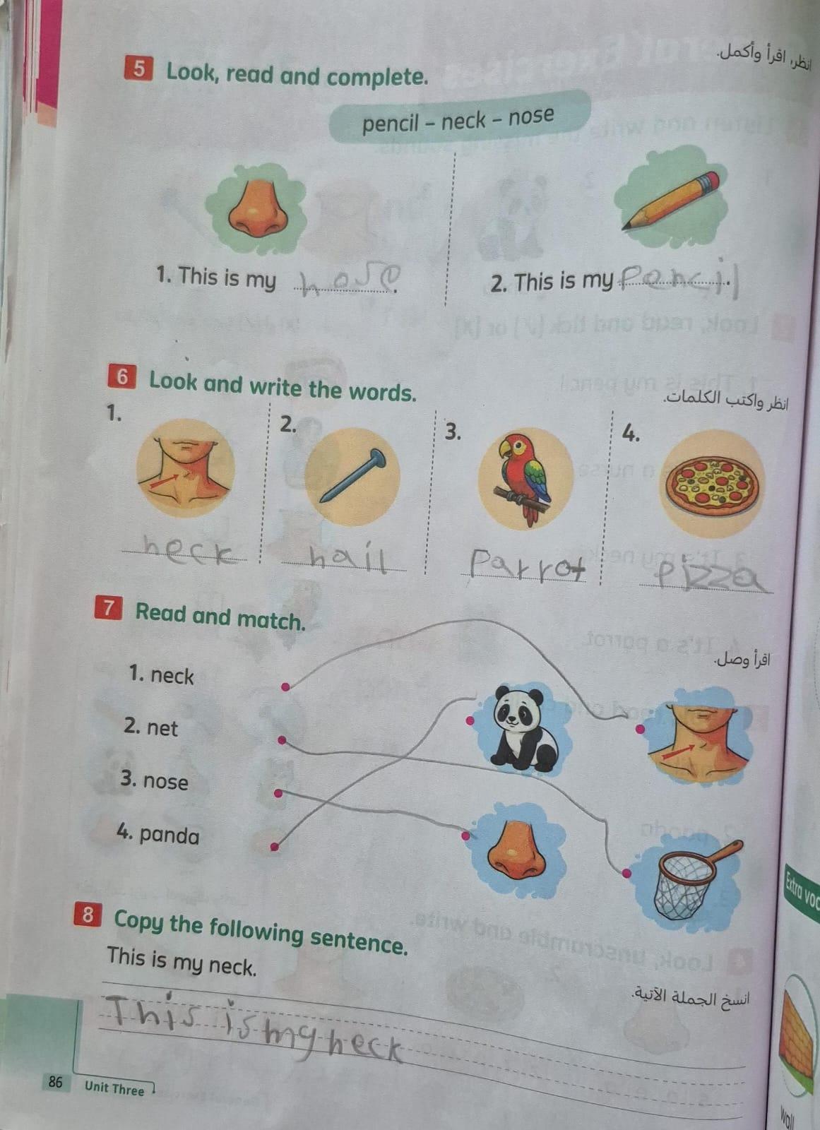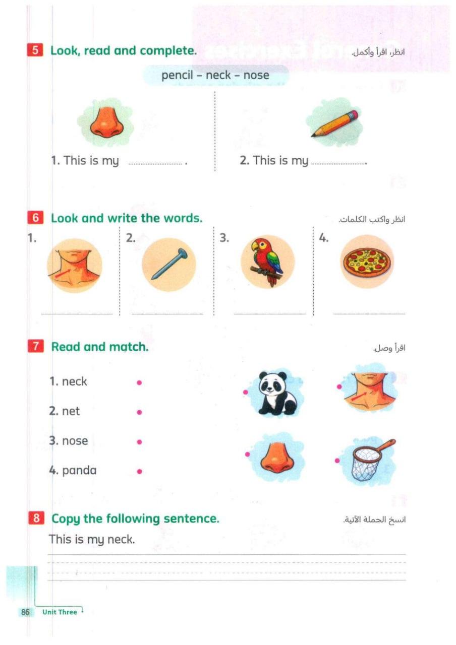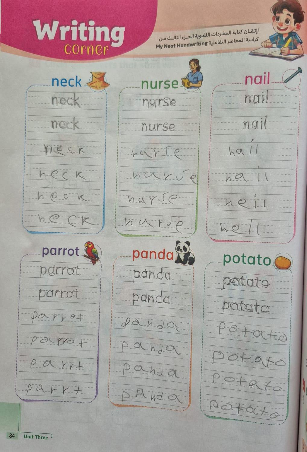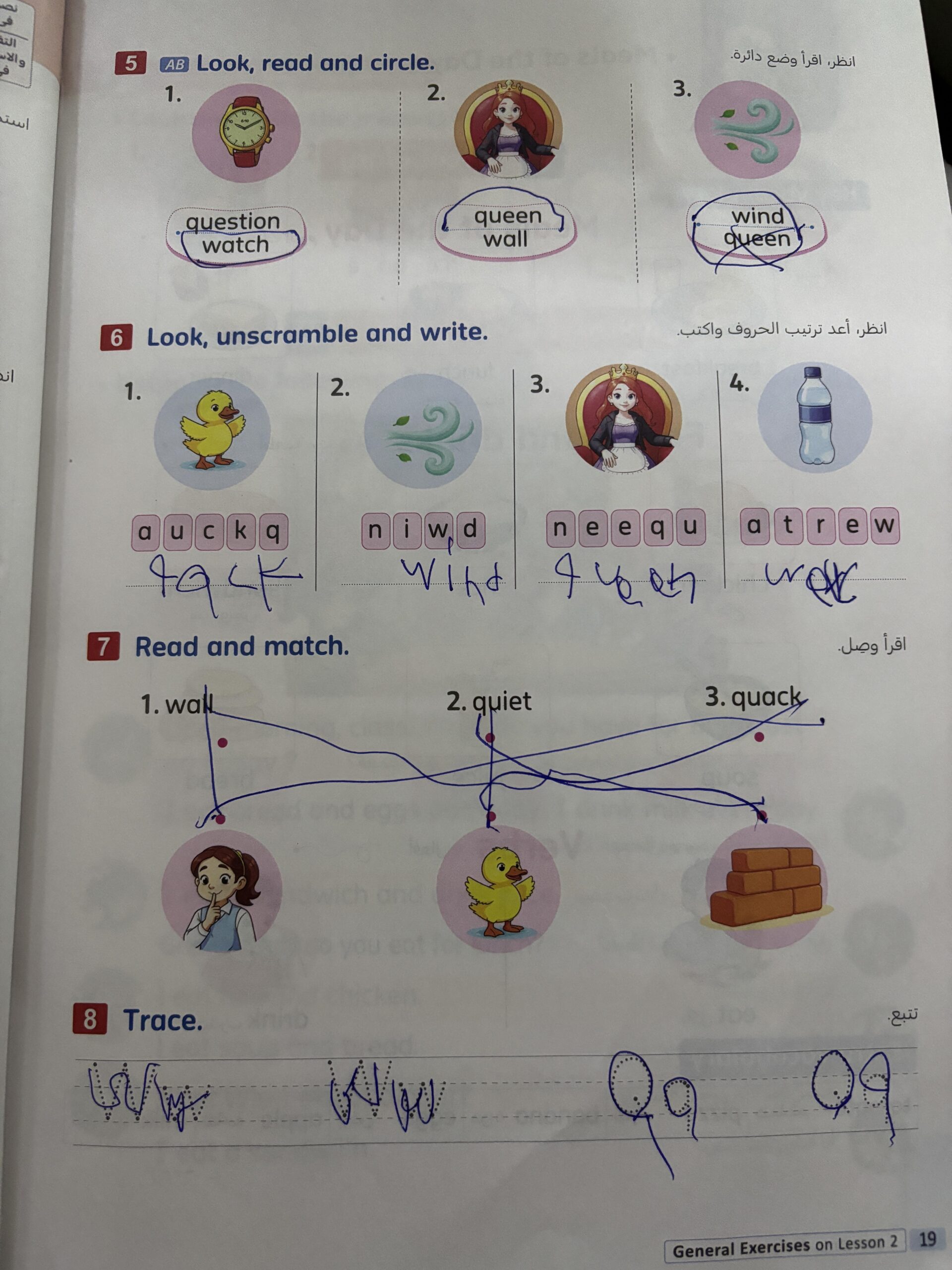 HW حفظ الكلمات وحل أسئلة الكتاب صفحة ١٨،١٩،٢٠