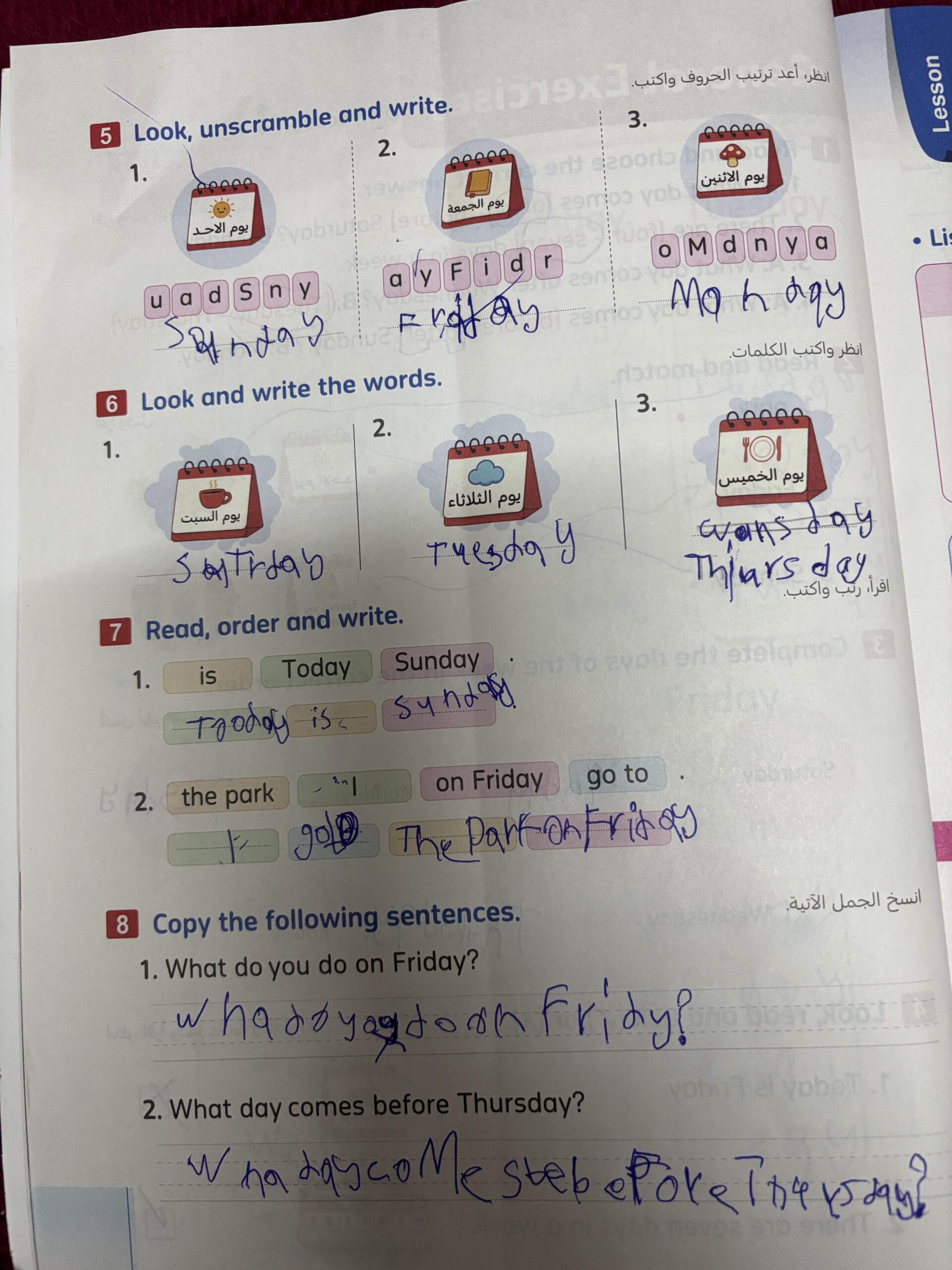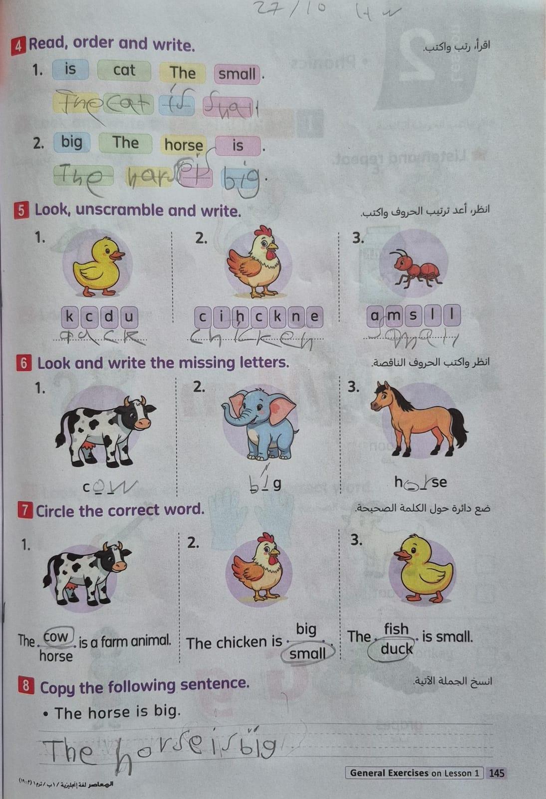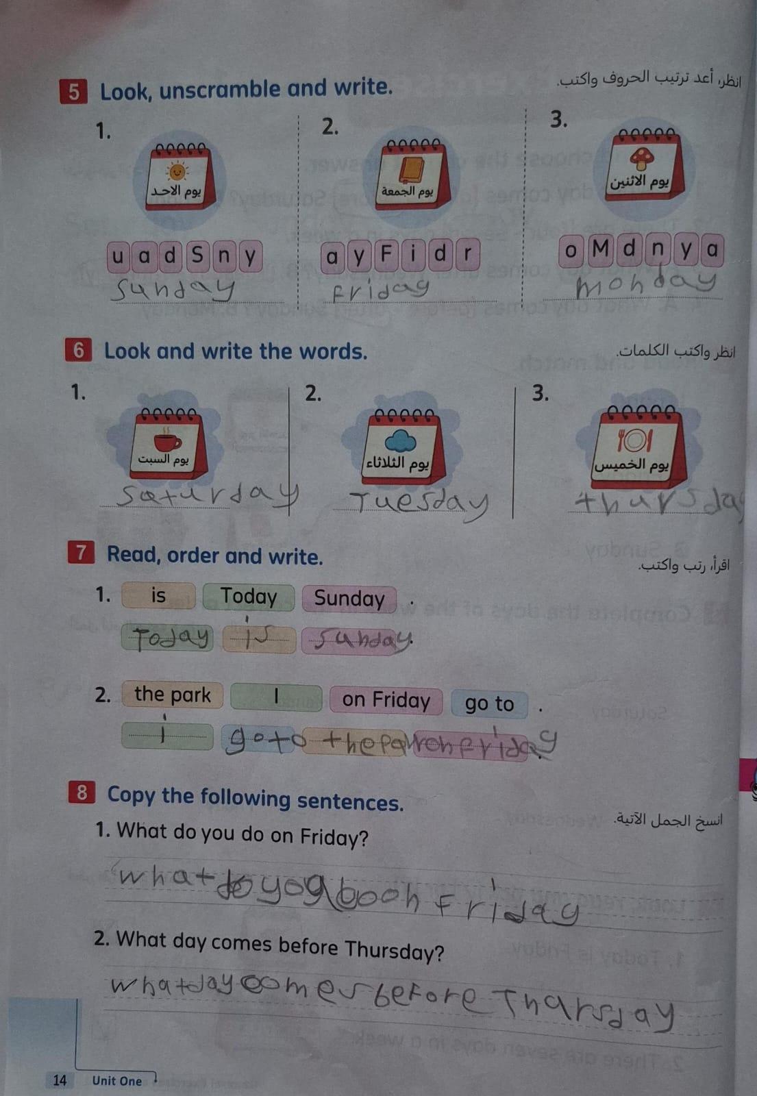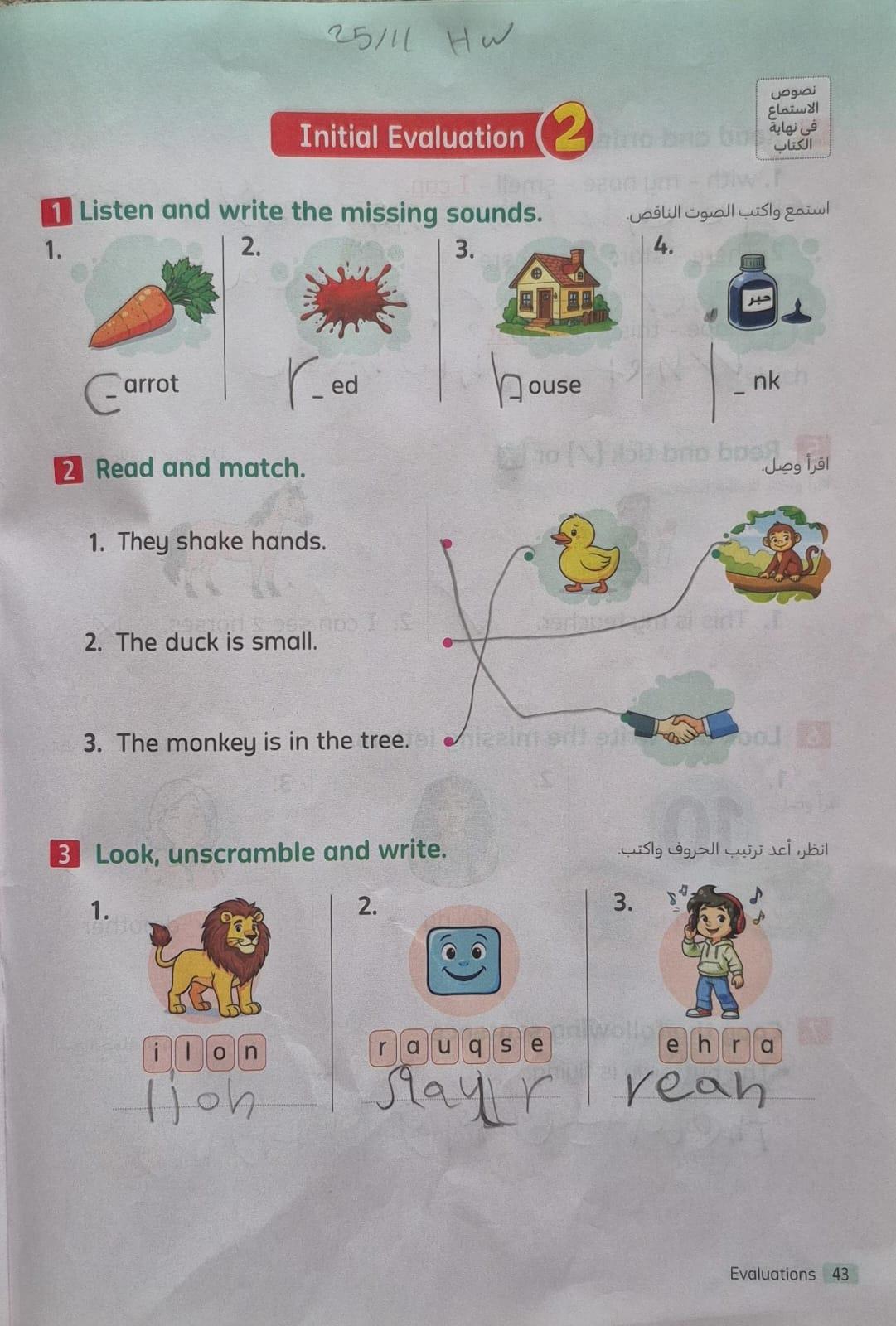 Today’s HW يجب إرسال الإملاء مع الواجب
