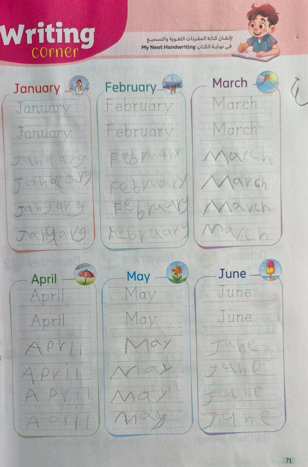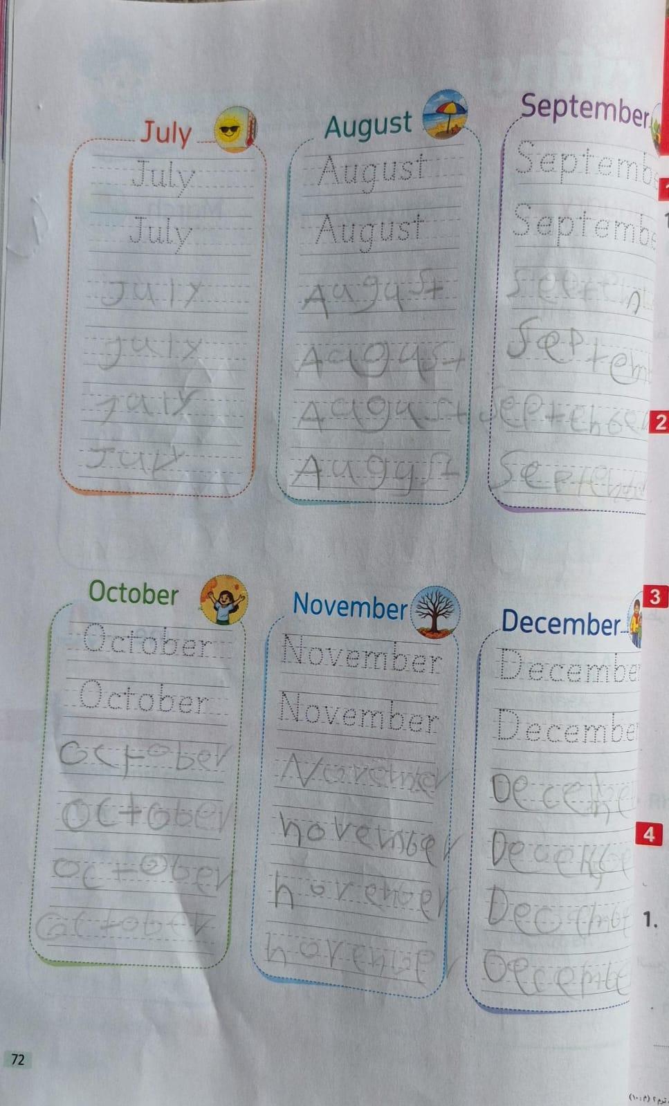 moths of the year :January, February, March, April, May, June, July, August, September, October, November, and December homework: pg71.72 and 73