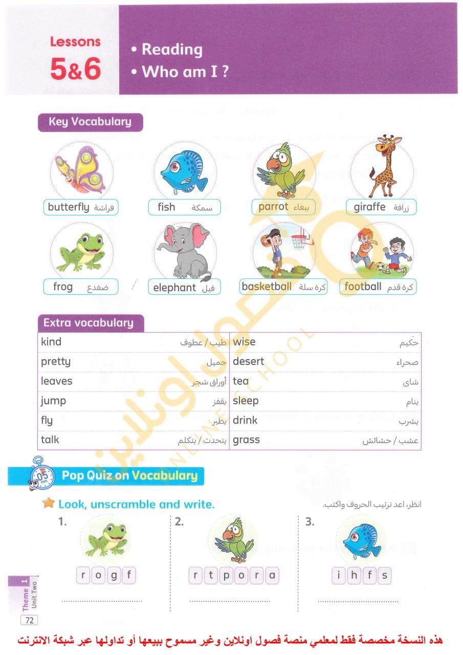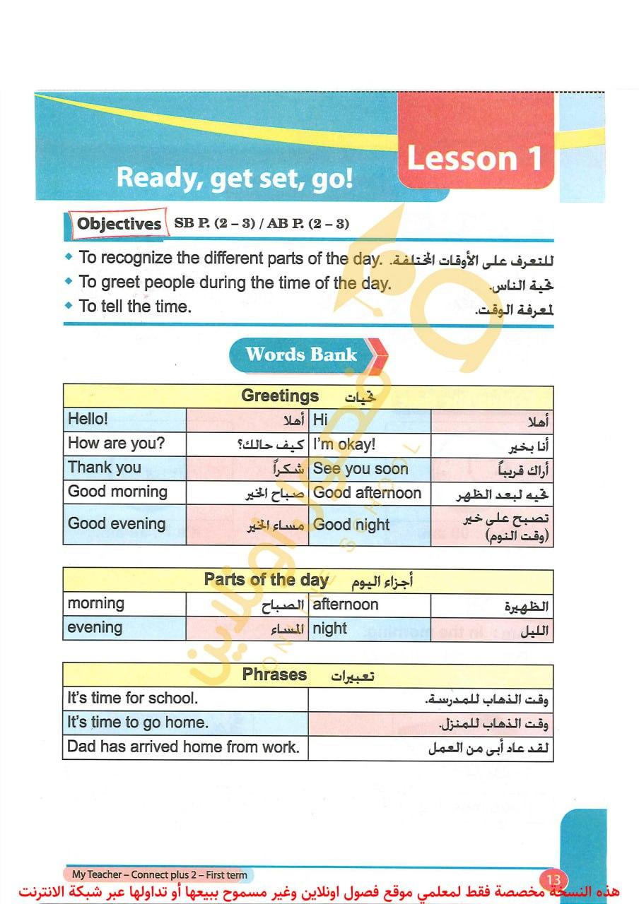 درس اليوم + كلمات الحفظ