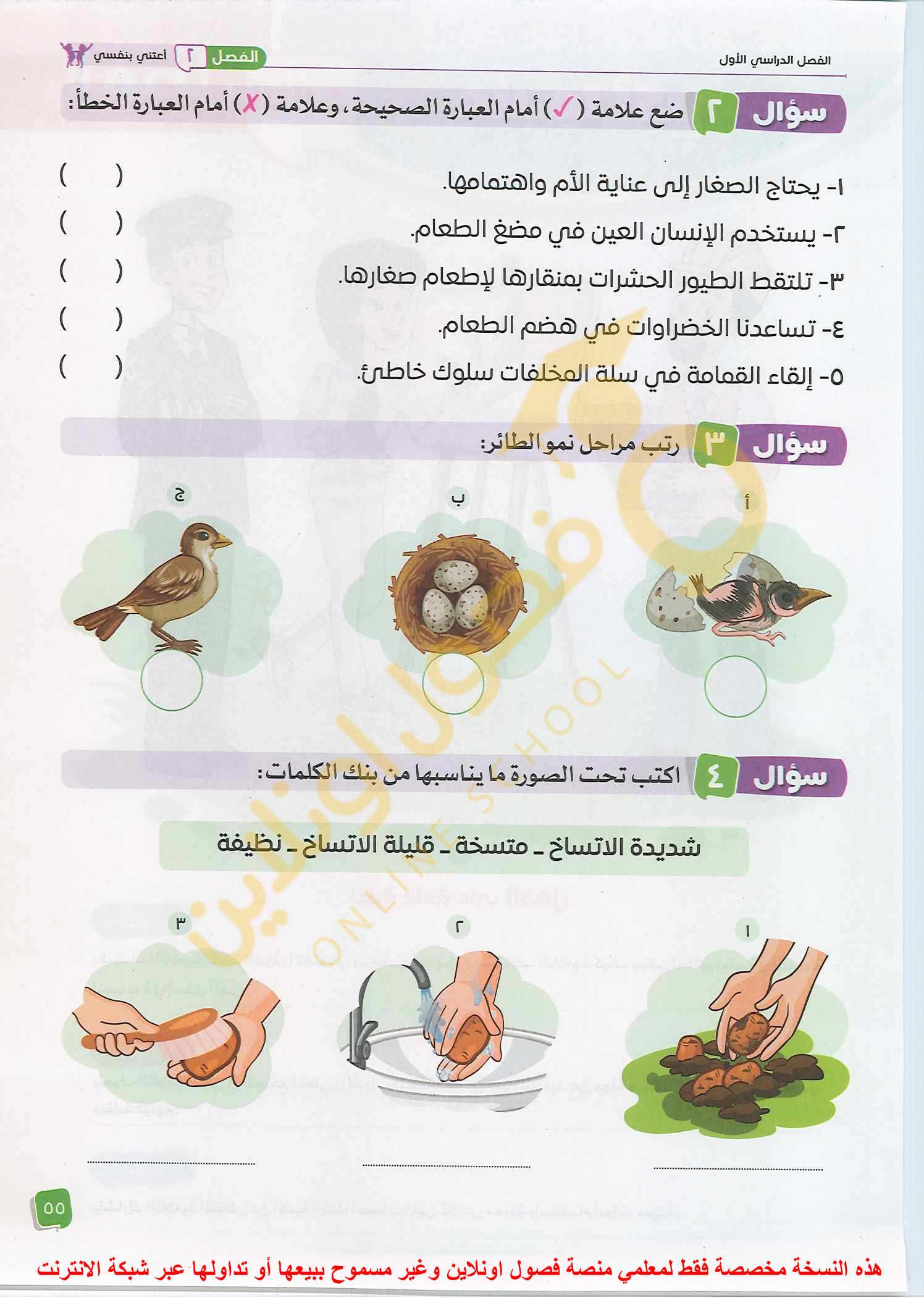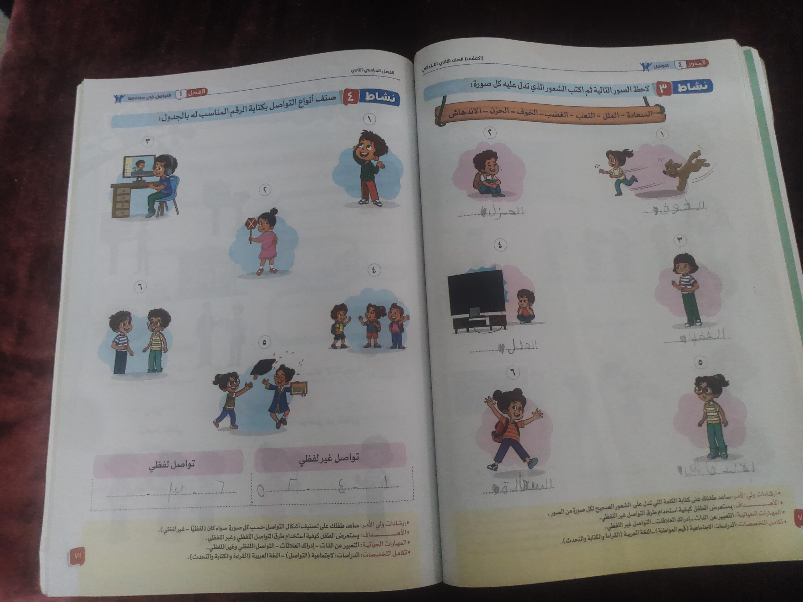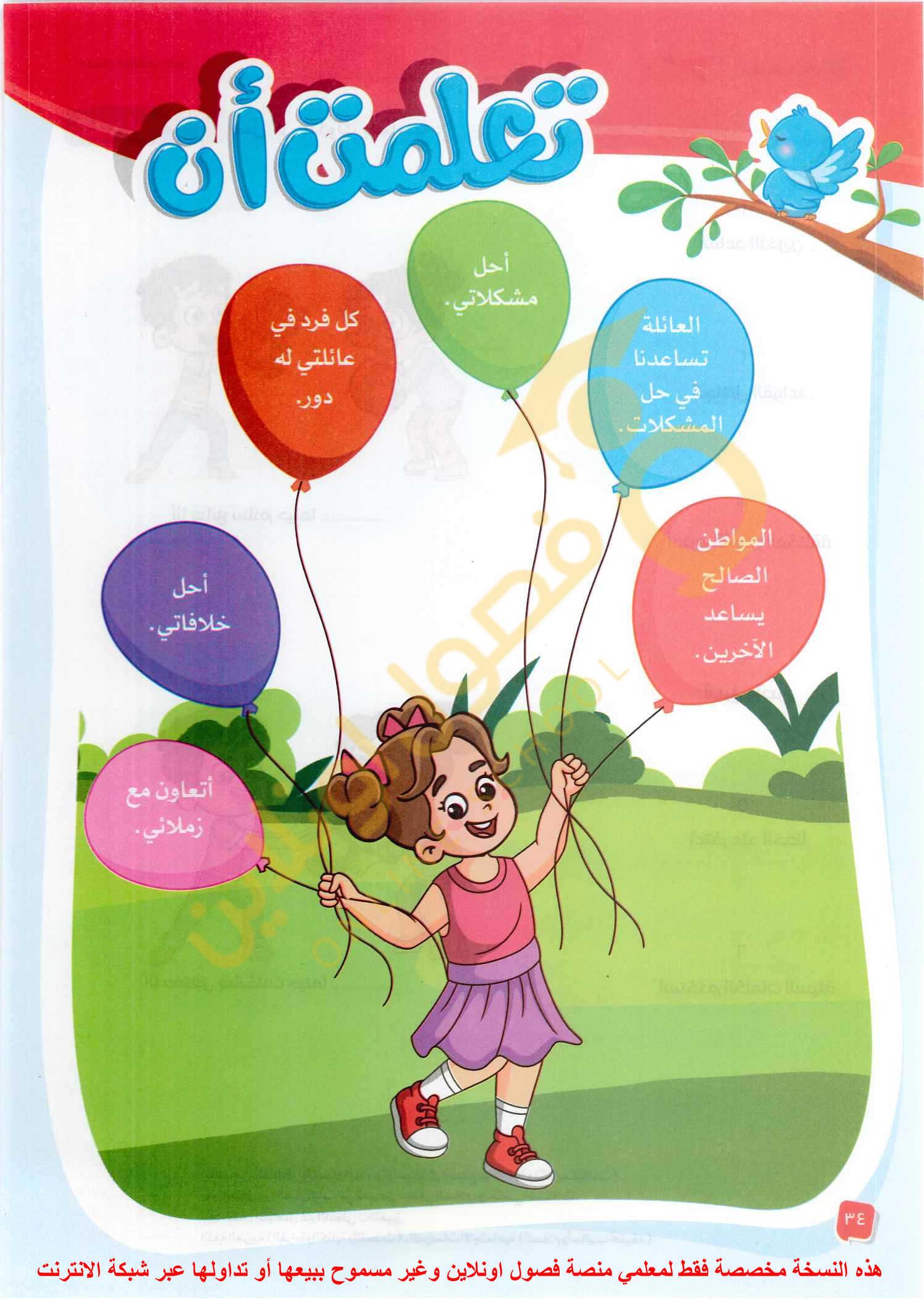 الواجب ارسم ما تعلمت من المفهوم الاول داخل بلالين مع التلوين