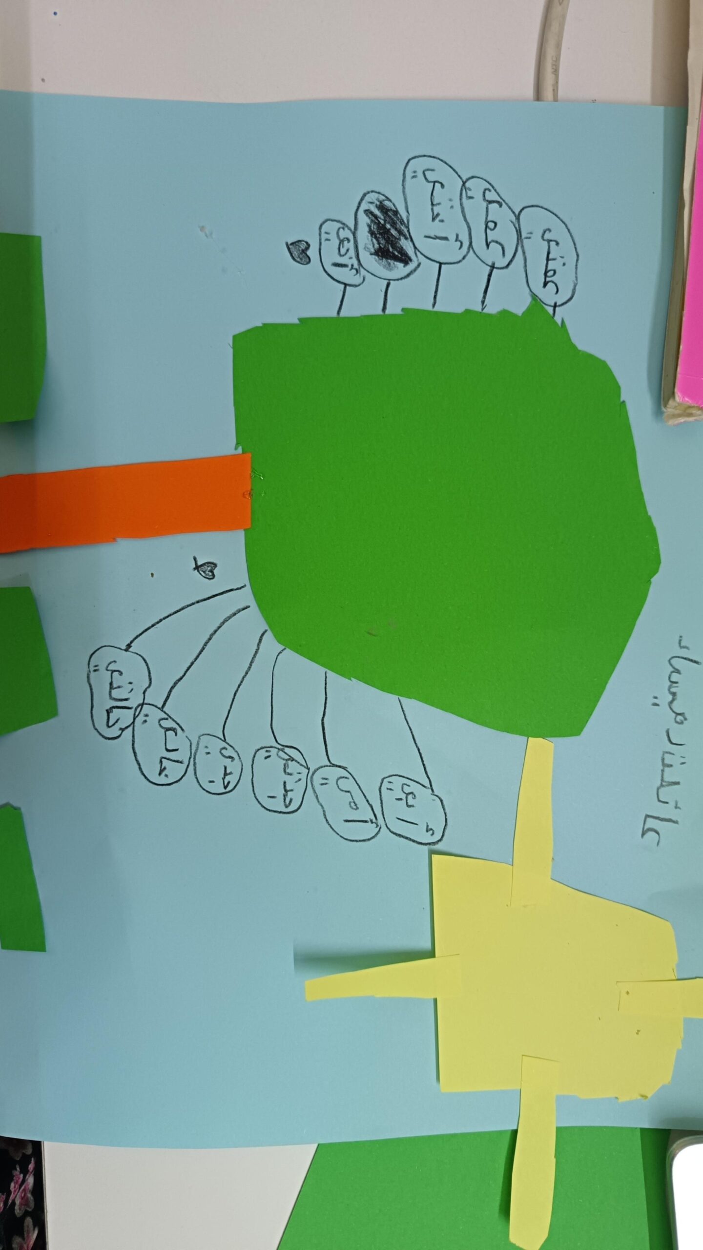 الواجب رسم شجرة جميلة عن العائلة مع تلويتها