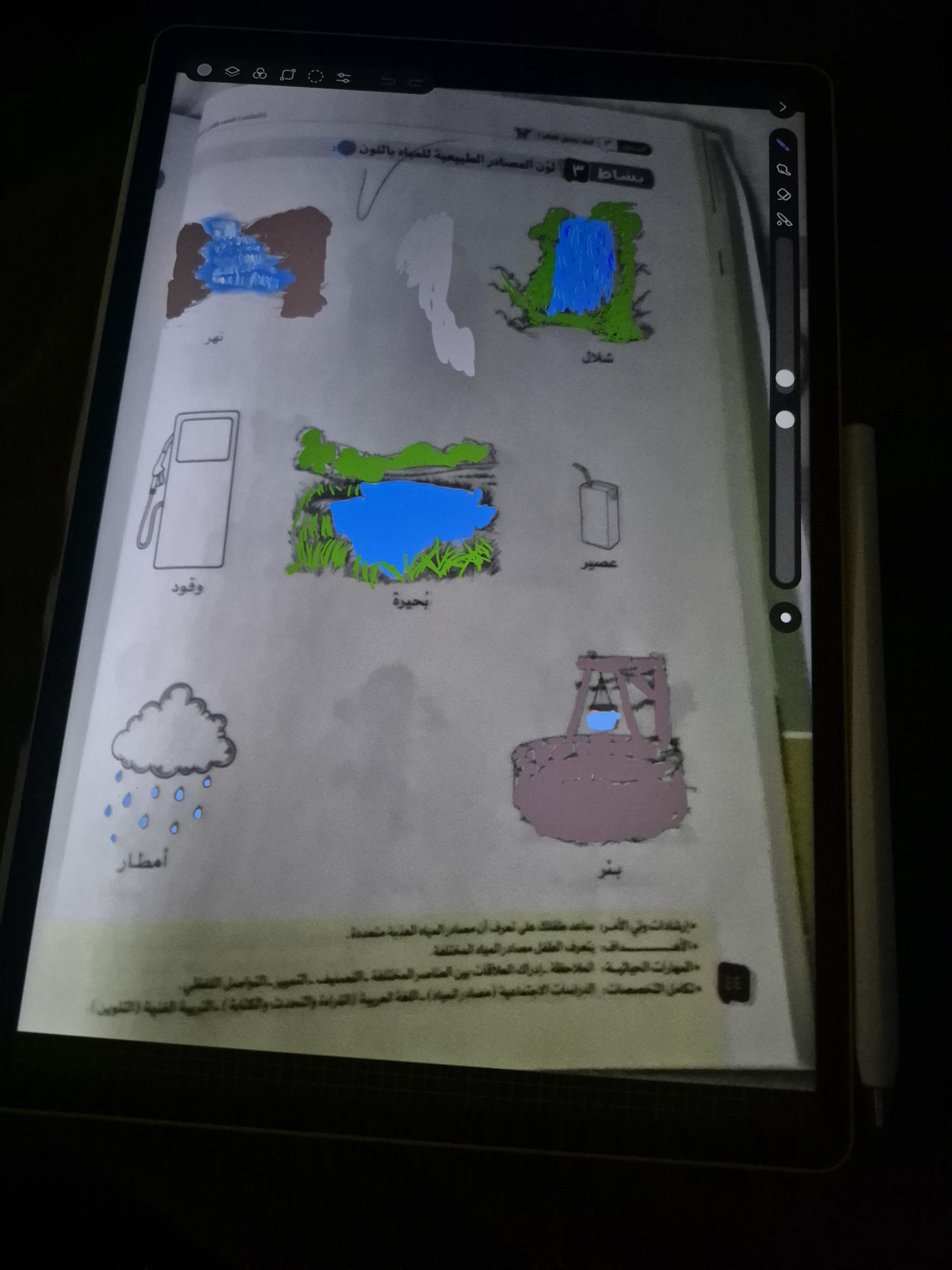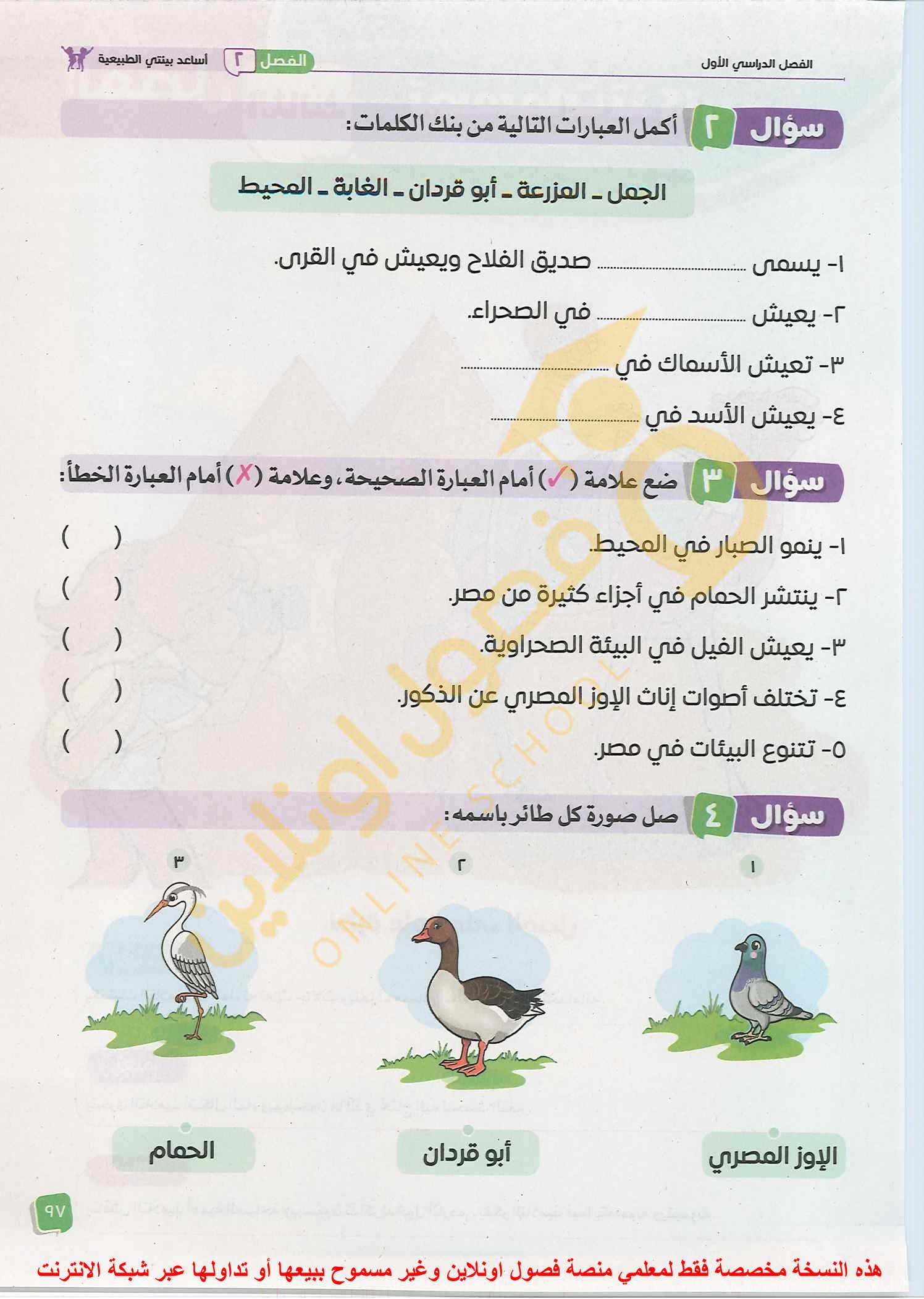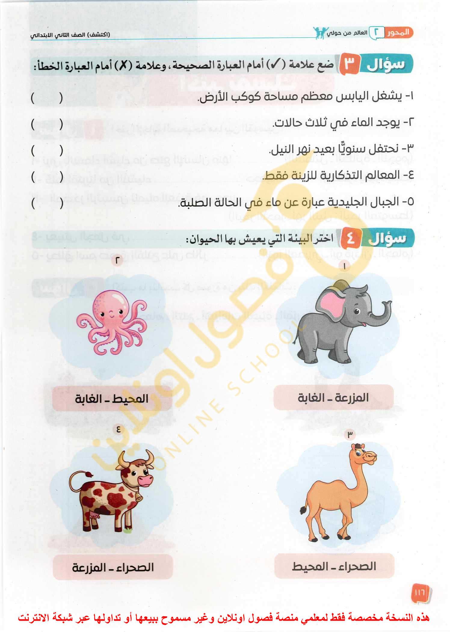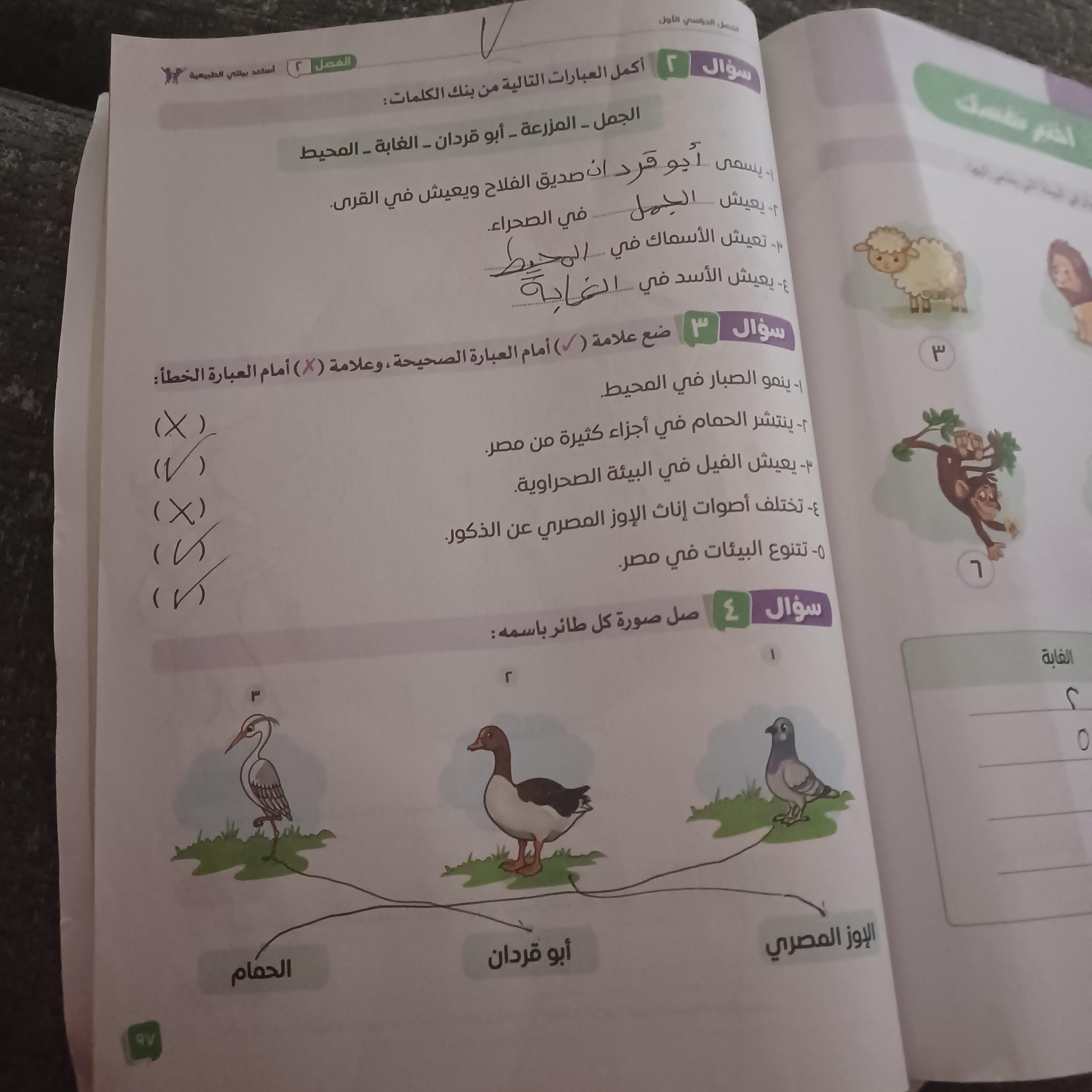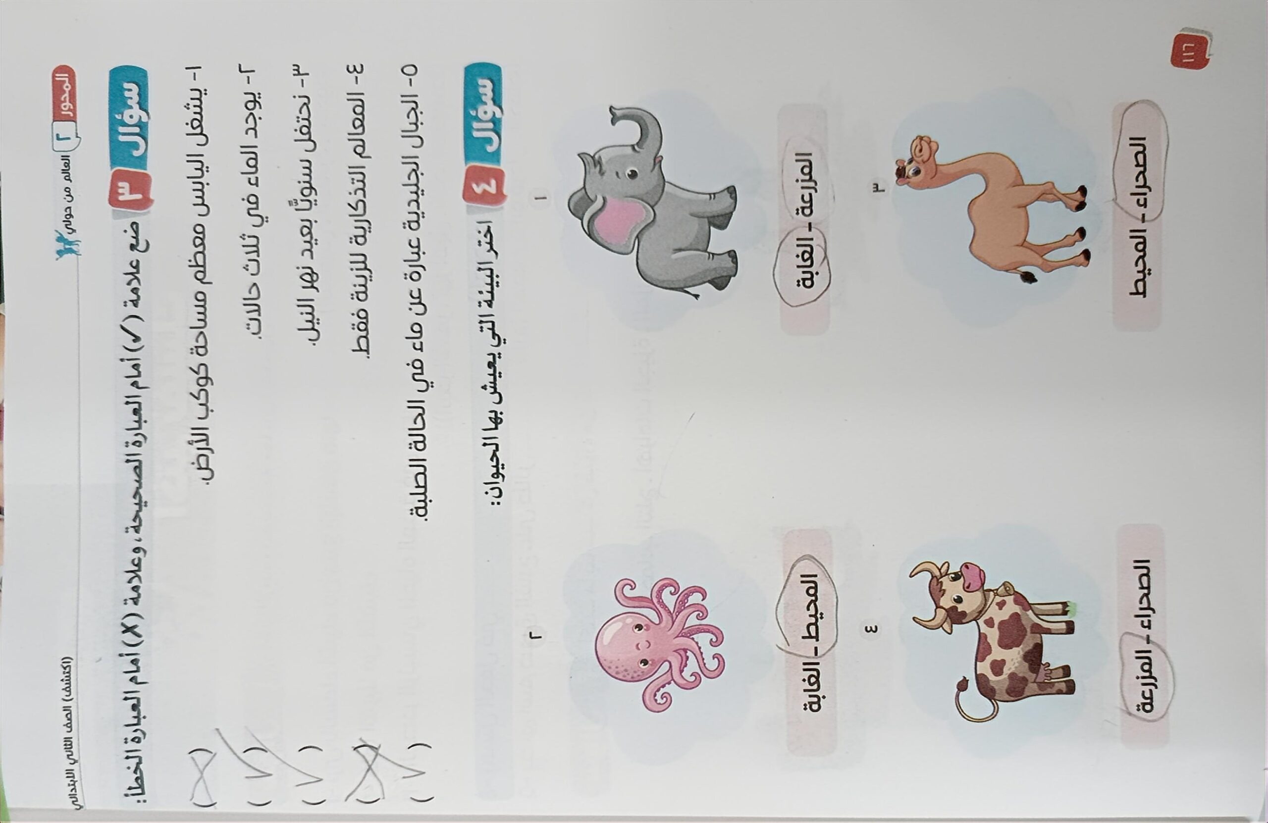الواجب قم برسم الصحراء و الغابة و المحيط