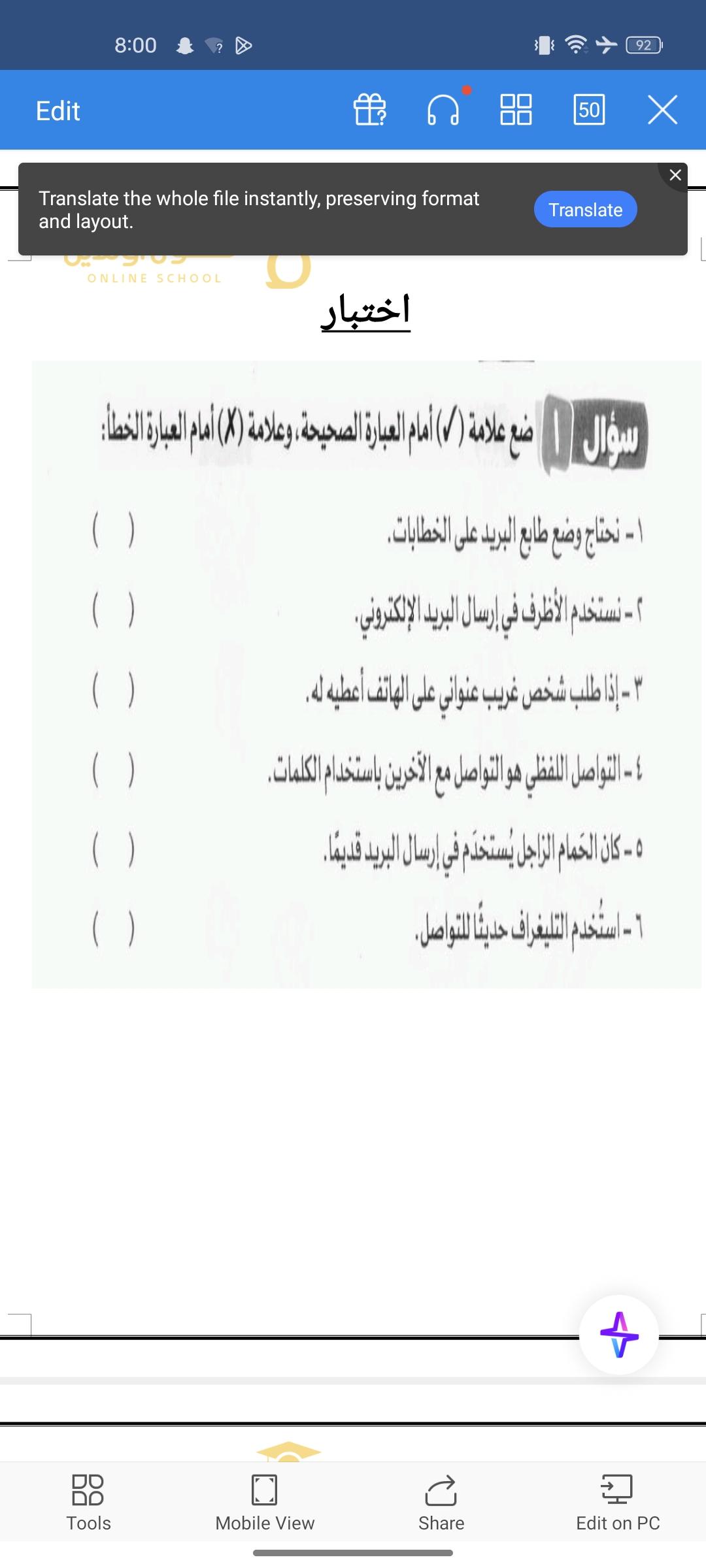 تم الانتهاء من درس التواصل اللفظي و غير اللفظي
