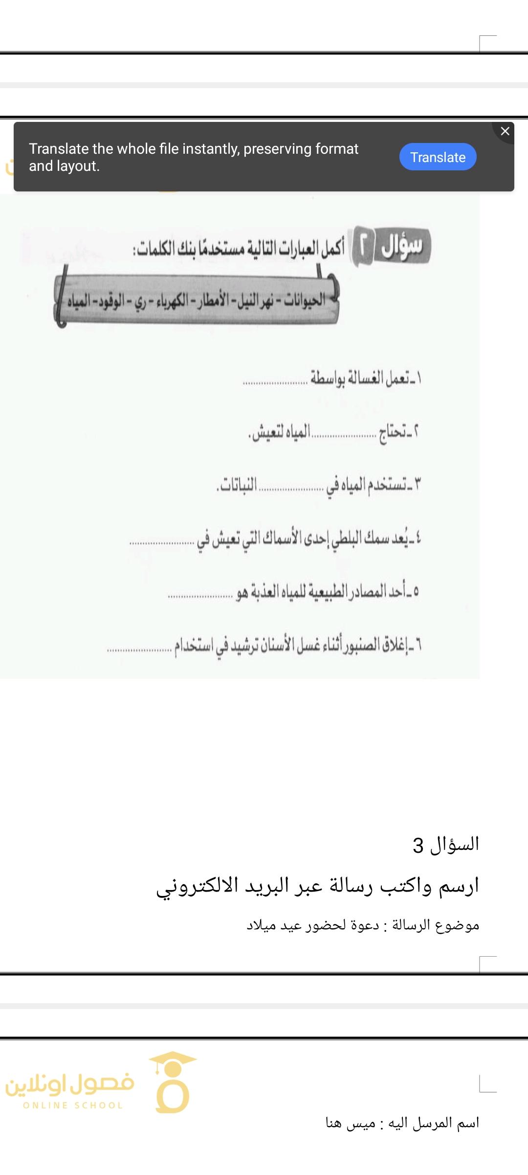 اعملي نشاط الرسالة