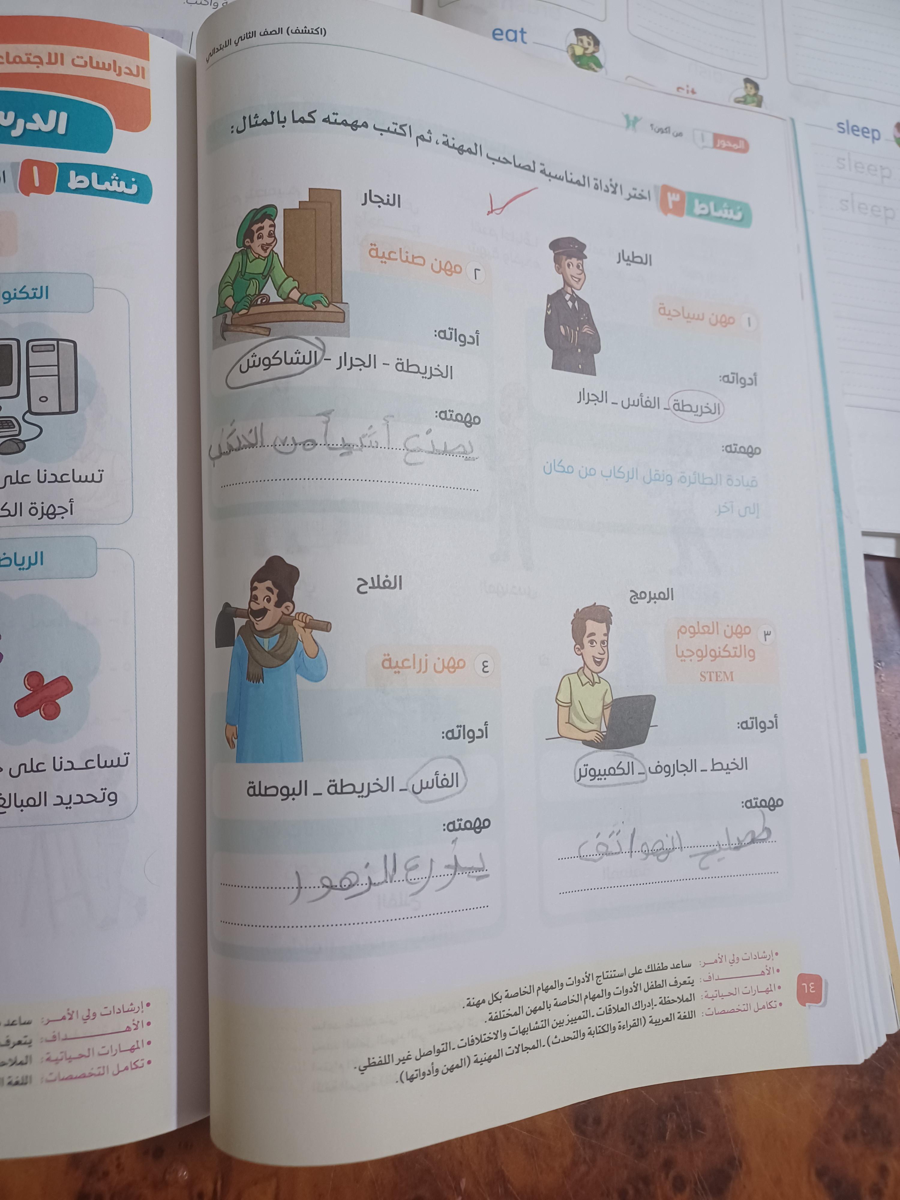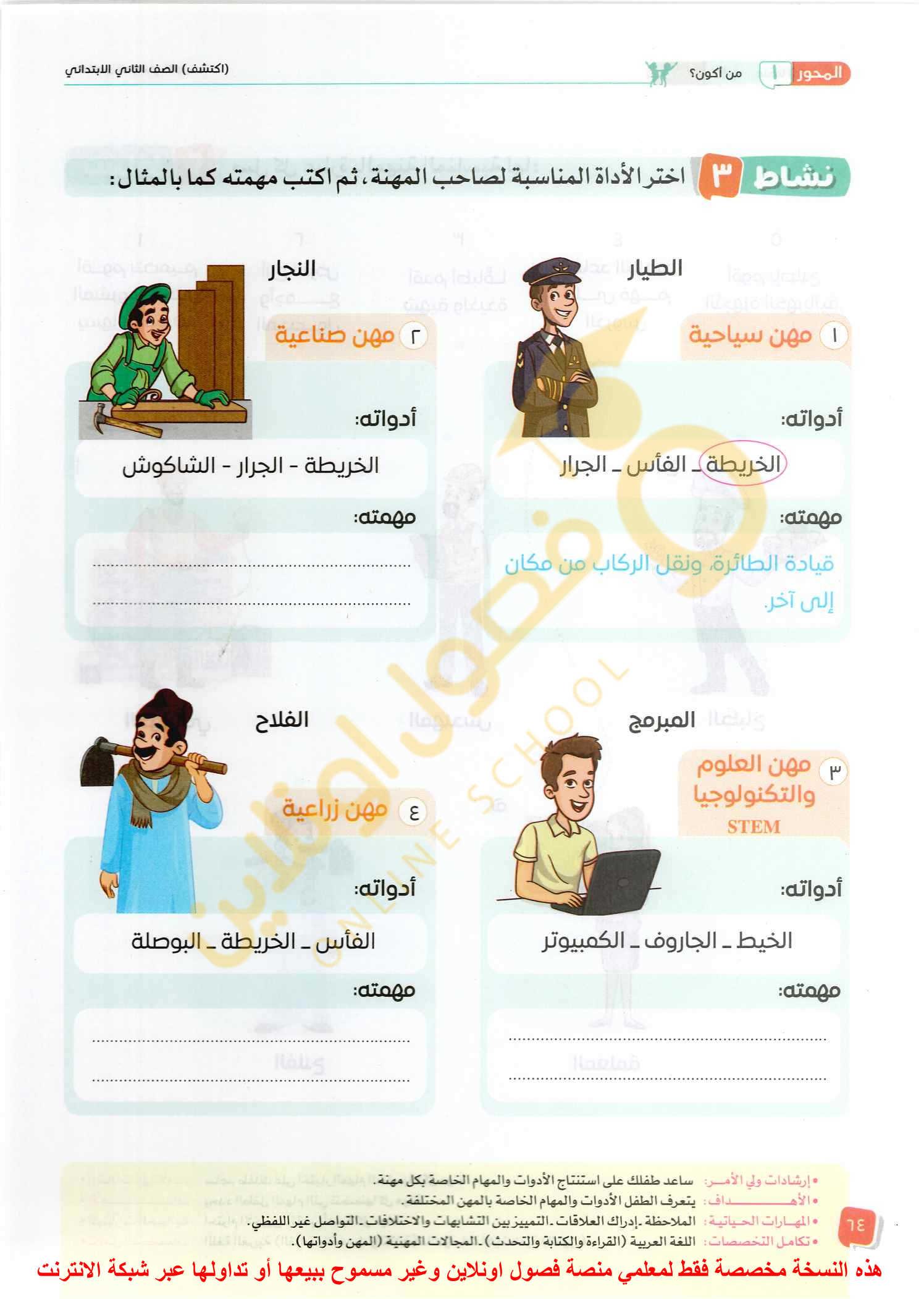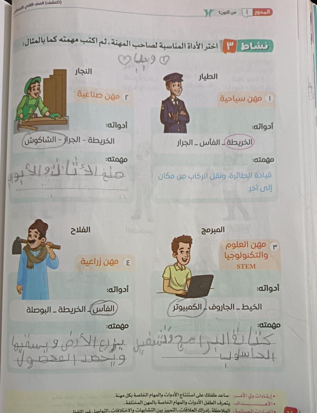 الواجب قم برسم الادوات التي يستخدمها كل المهن