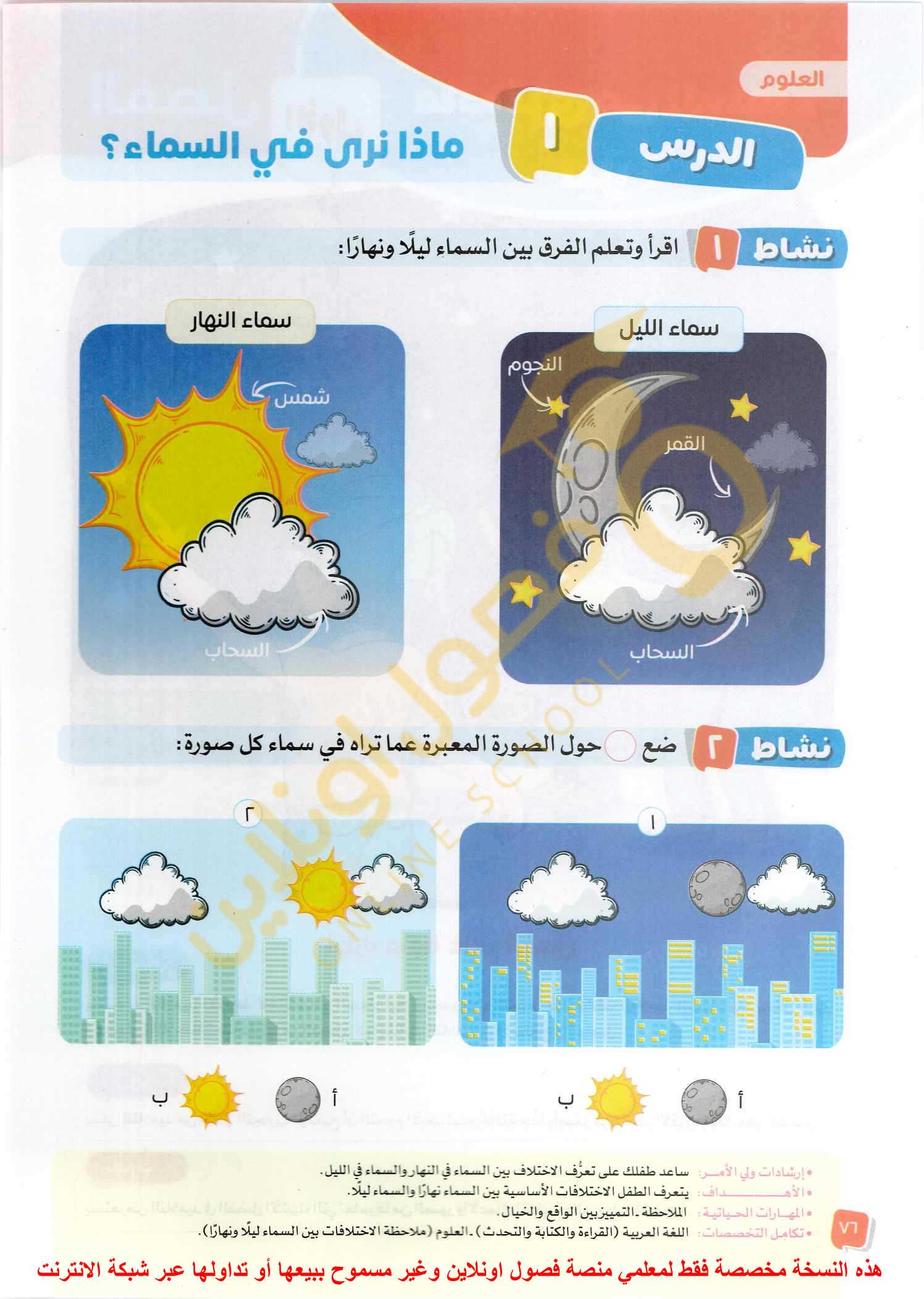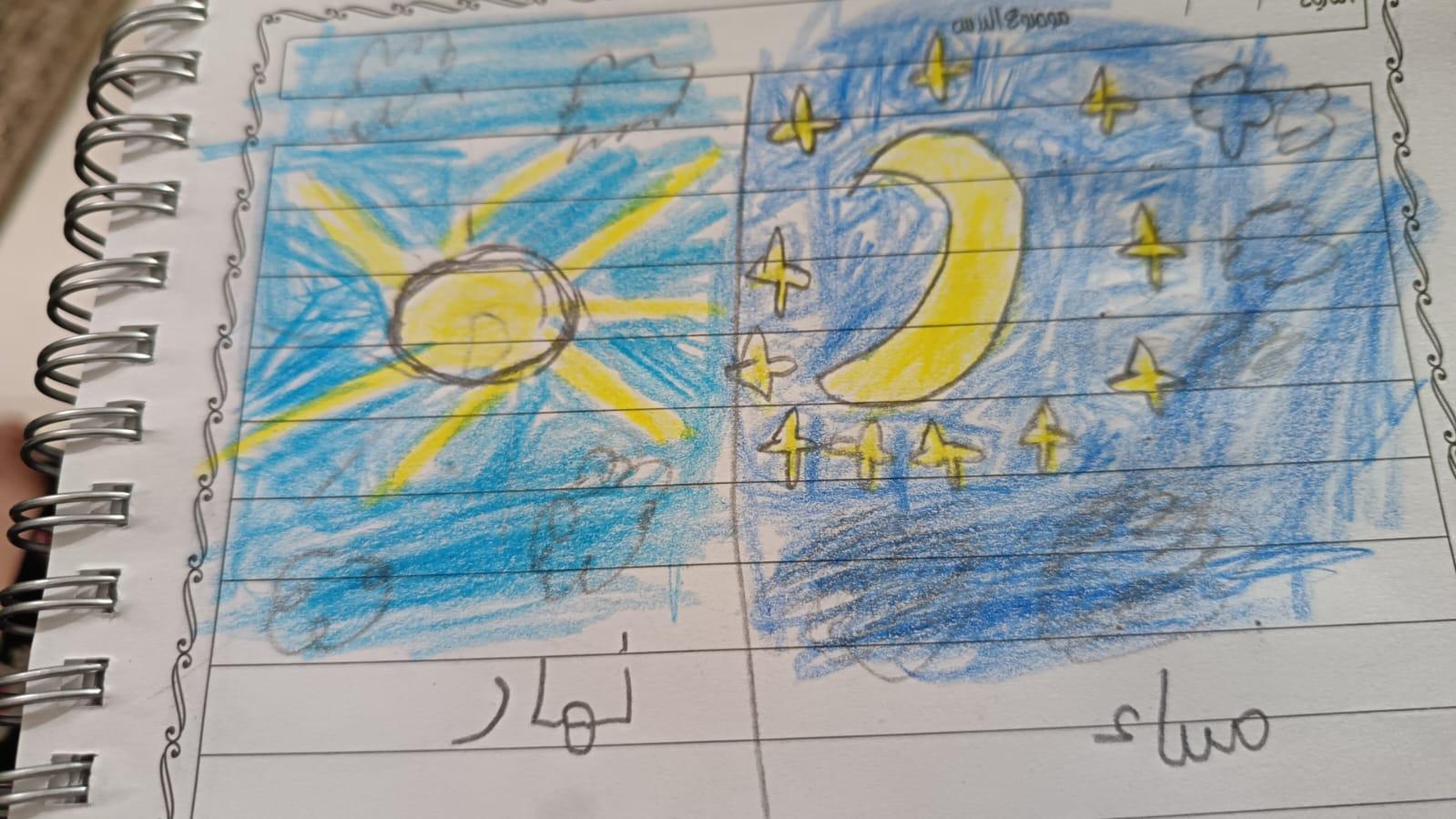 ارسم رسمة تعبر عن السماء ليلا و نهارا