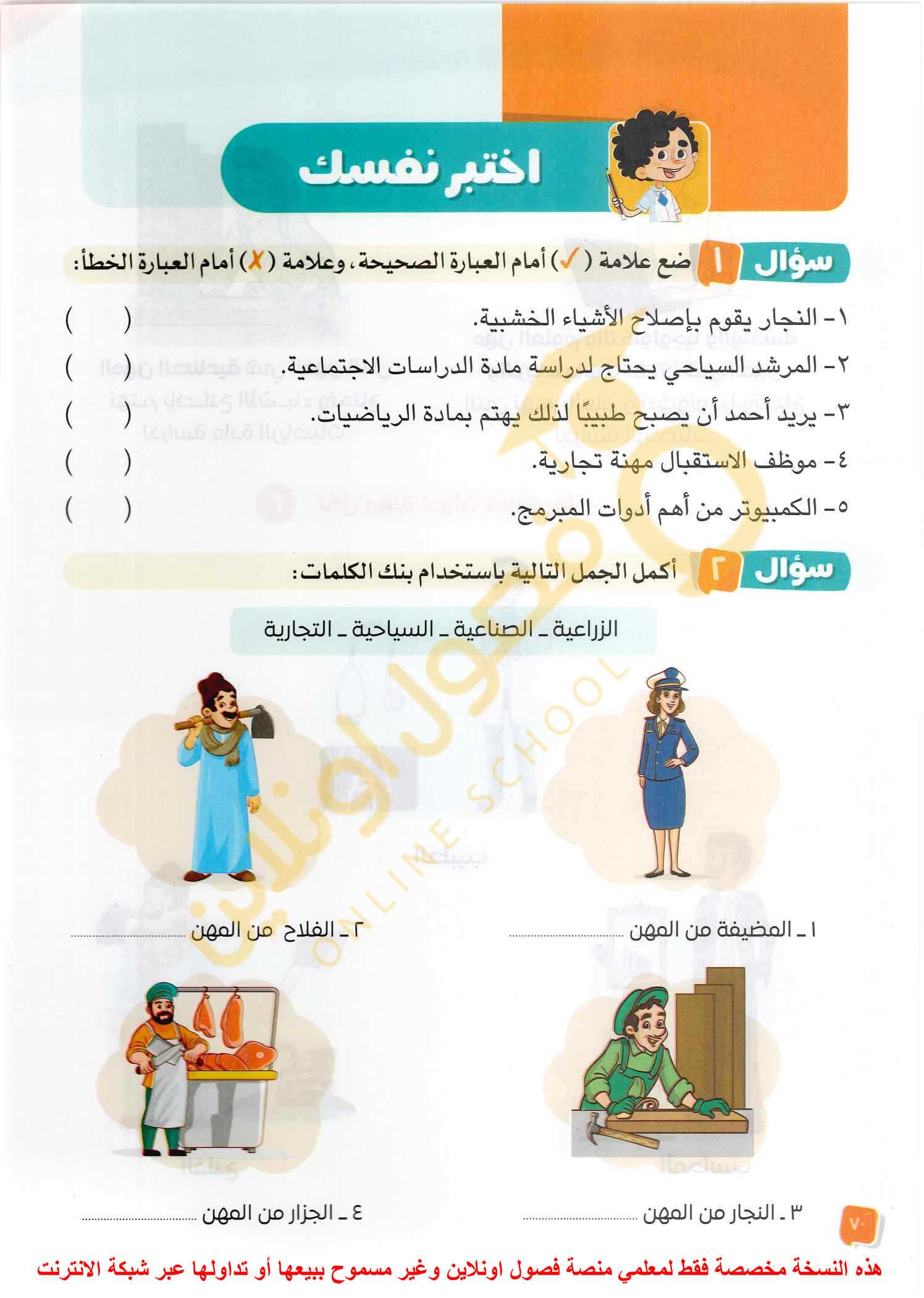 ارسم رسومات تعبر عن المهن الزراعية و الصناعية و التجارية و السياحية و الطبية