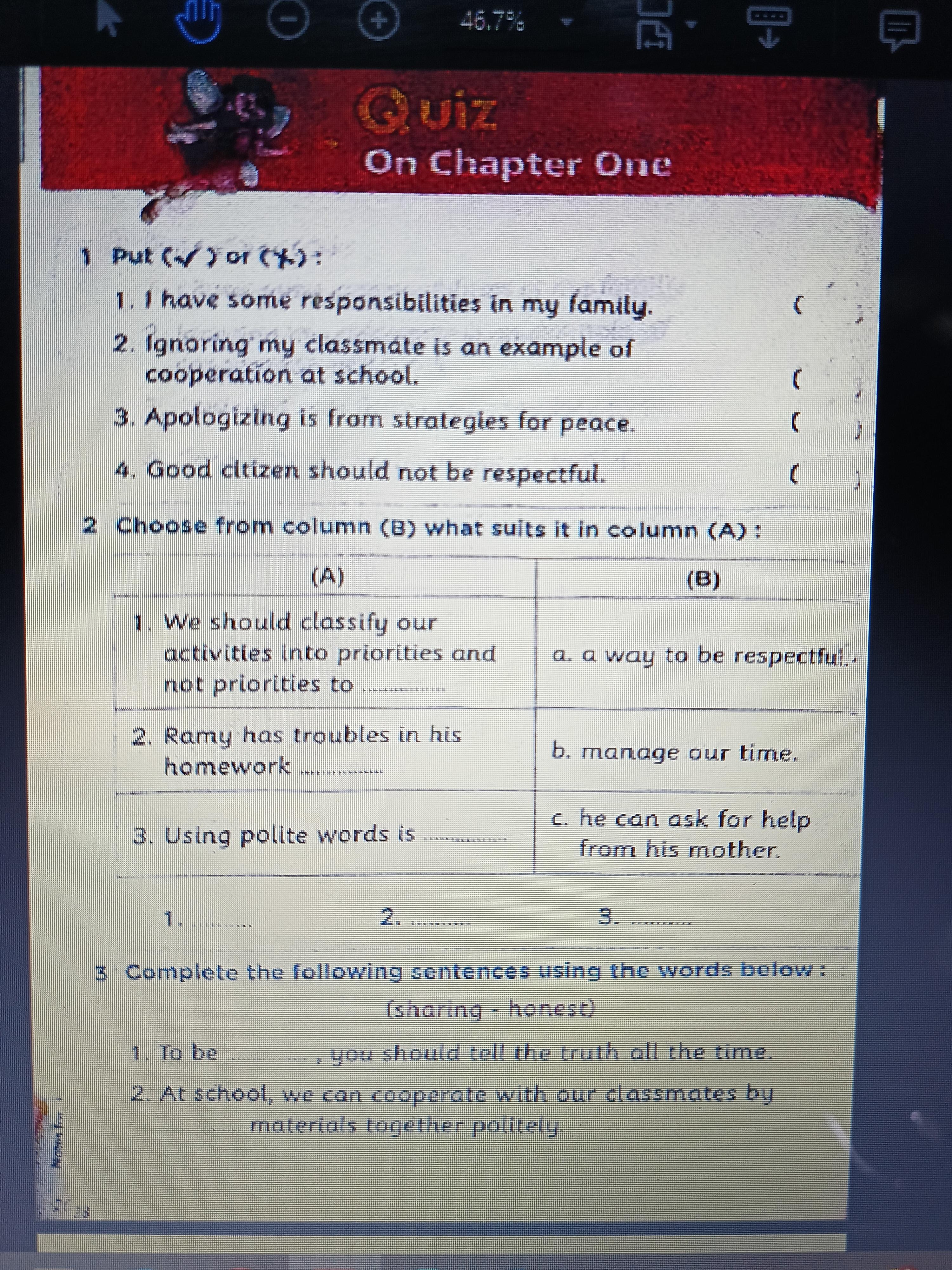NO H.W BE SURE TO COME ON TIME NEXT TIME