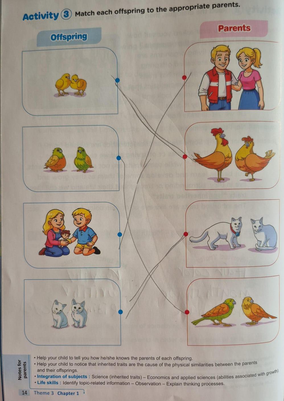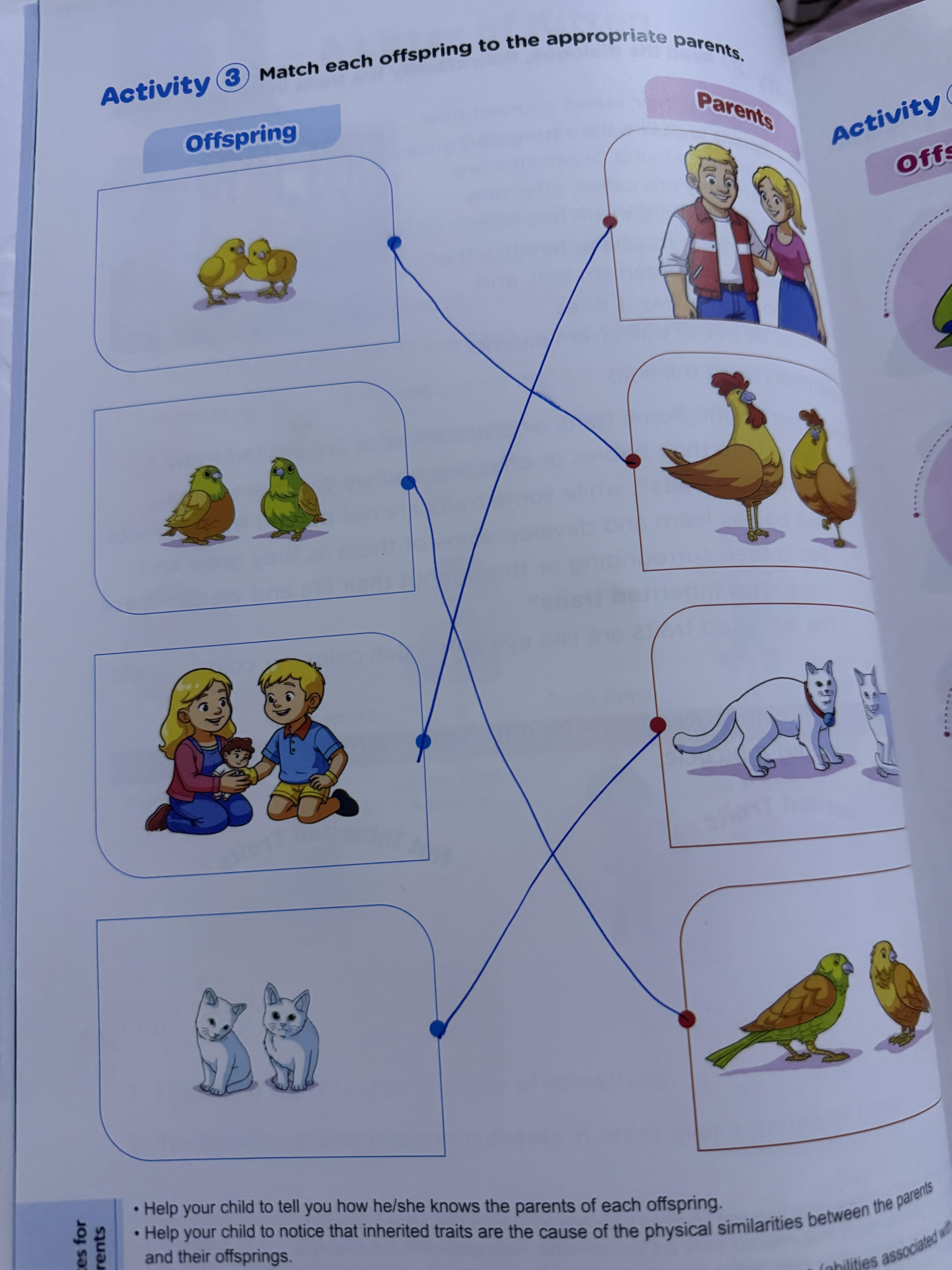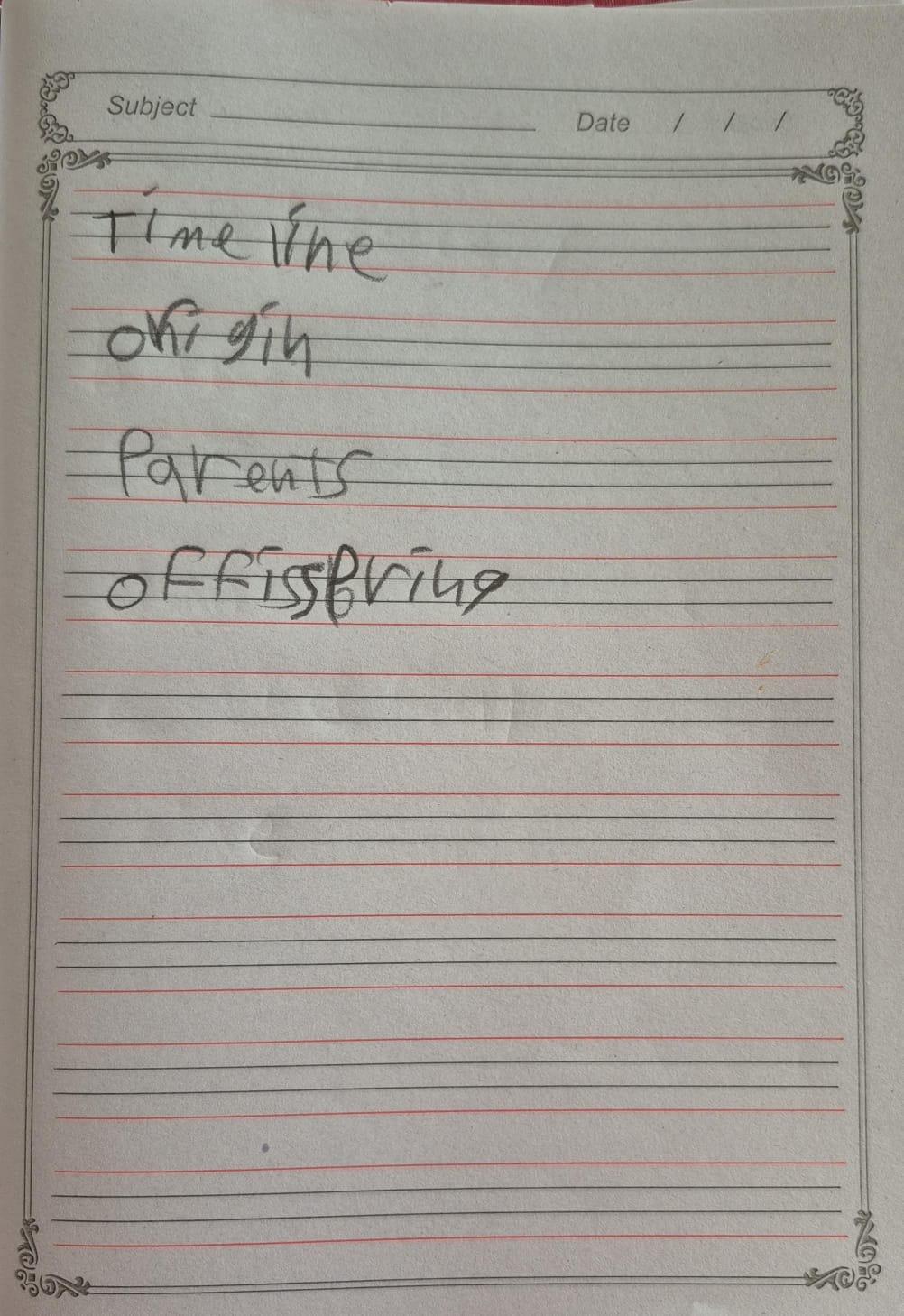 please keep these words ( origin-timeline – parents – baby=offspring – look like – traits – inherited traits – not inherited traits )