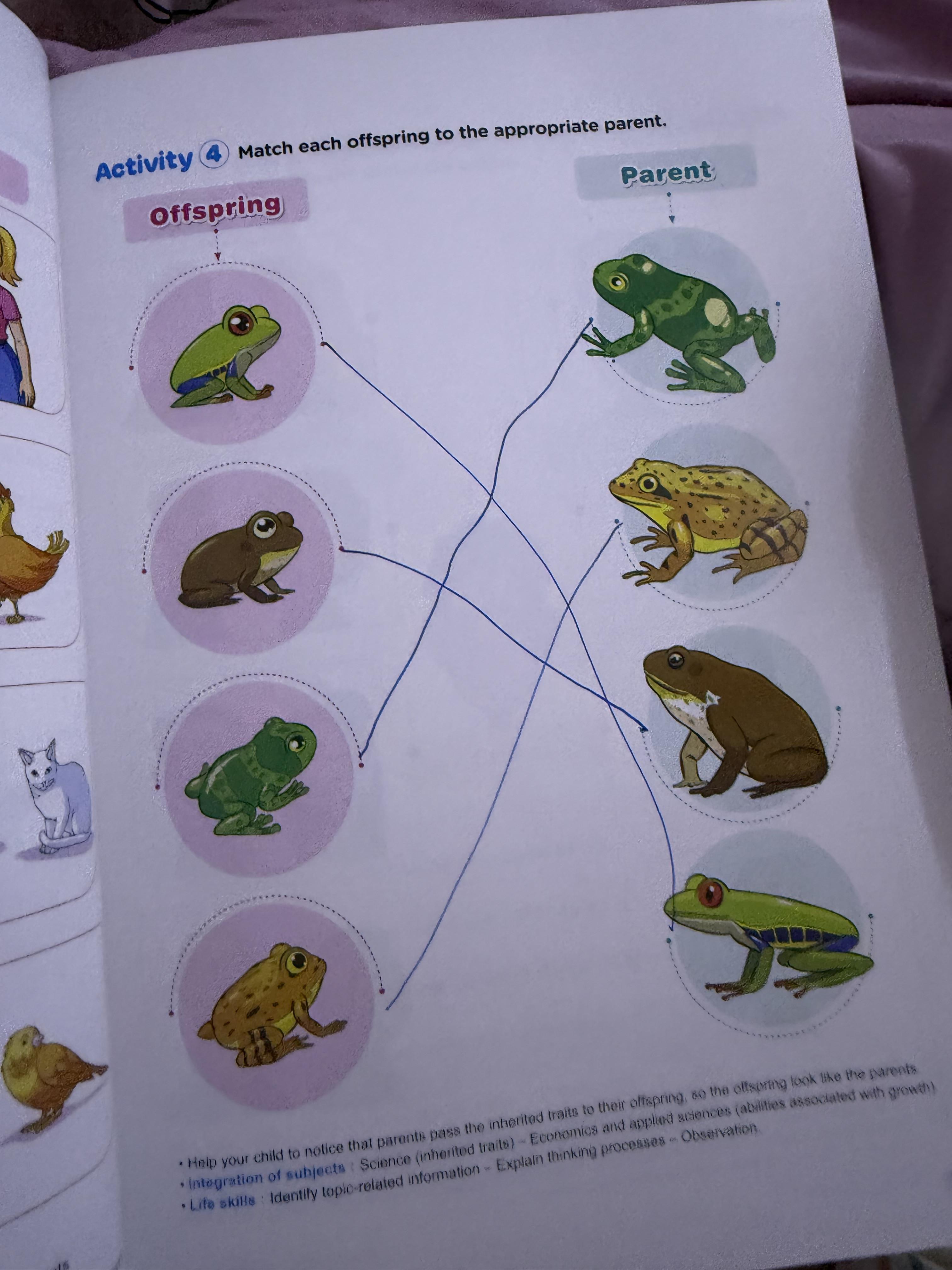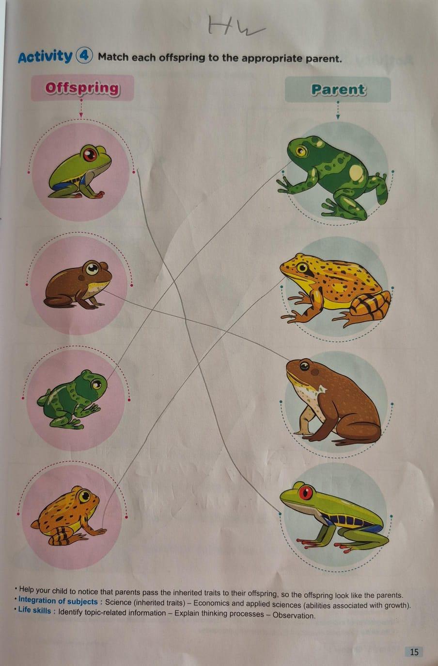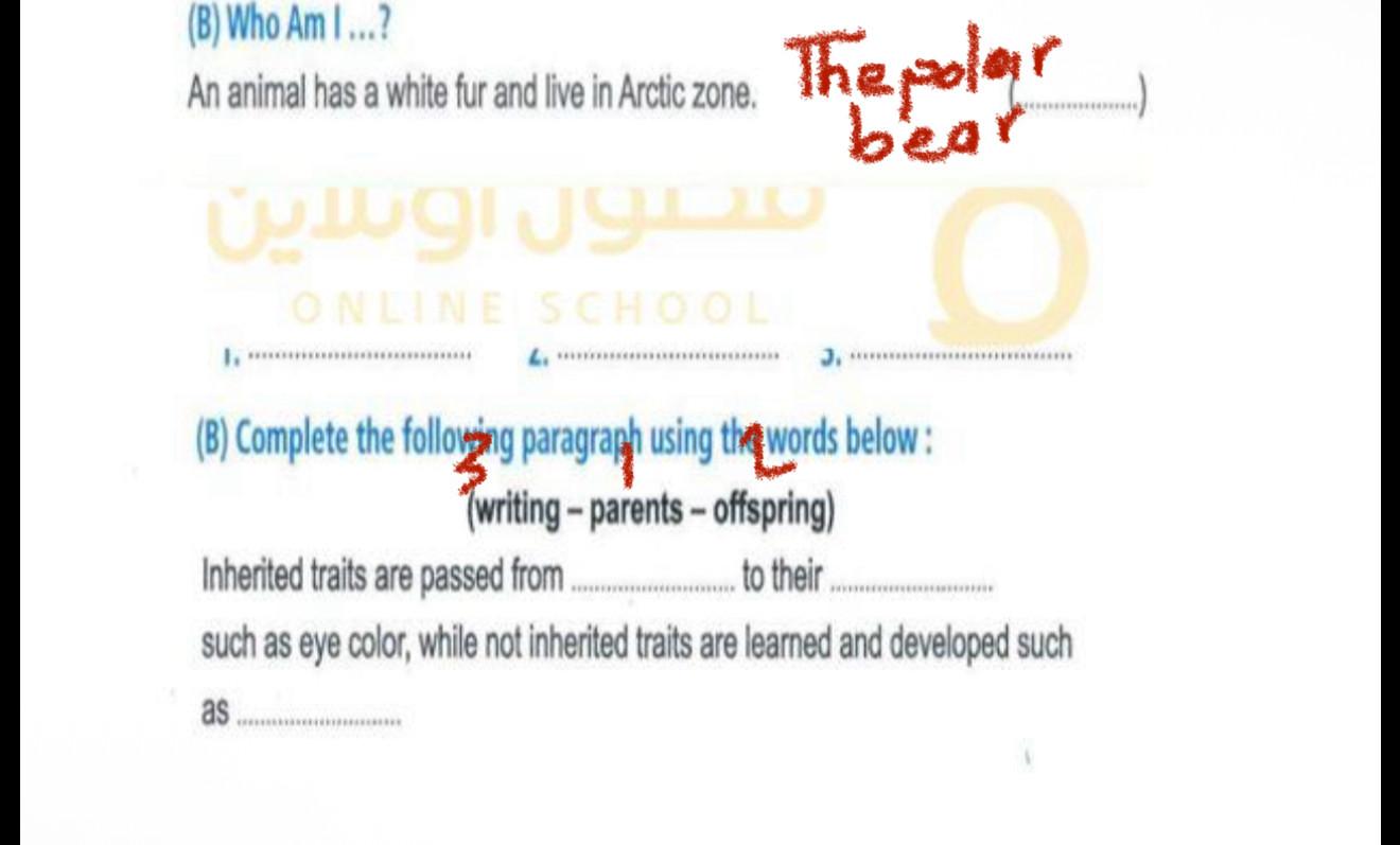 please keep these words ( origin-timeline – parents – baby=offspring – look like – traits – inherited traits – not inherited traits )