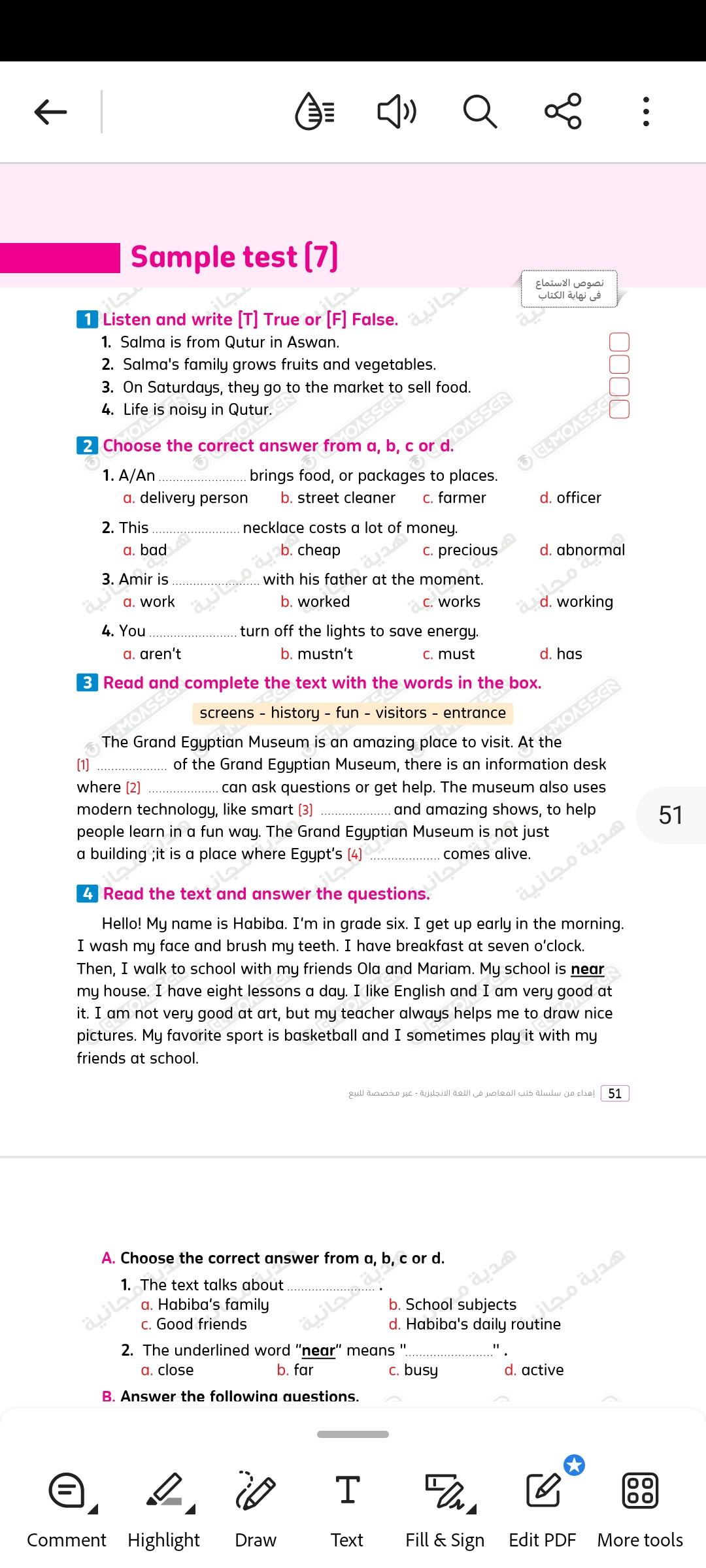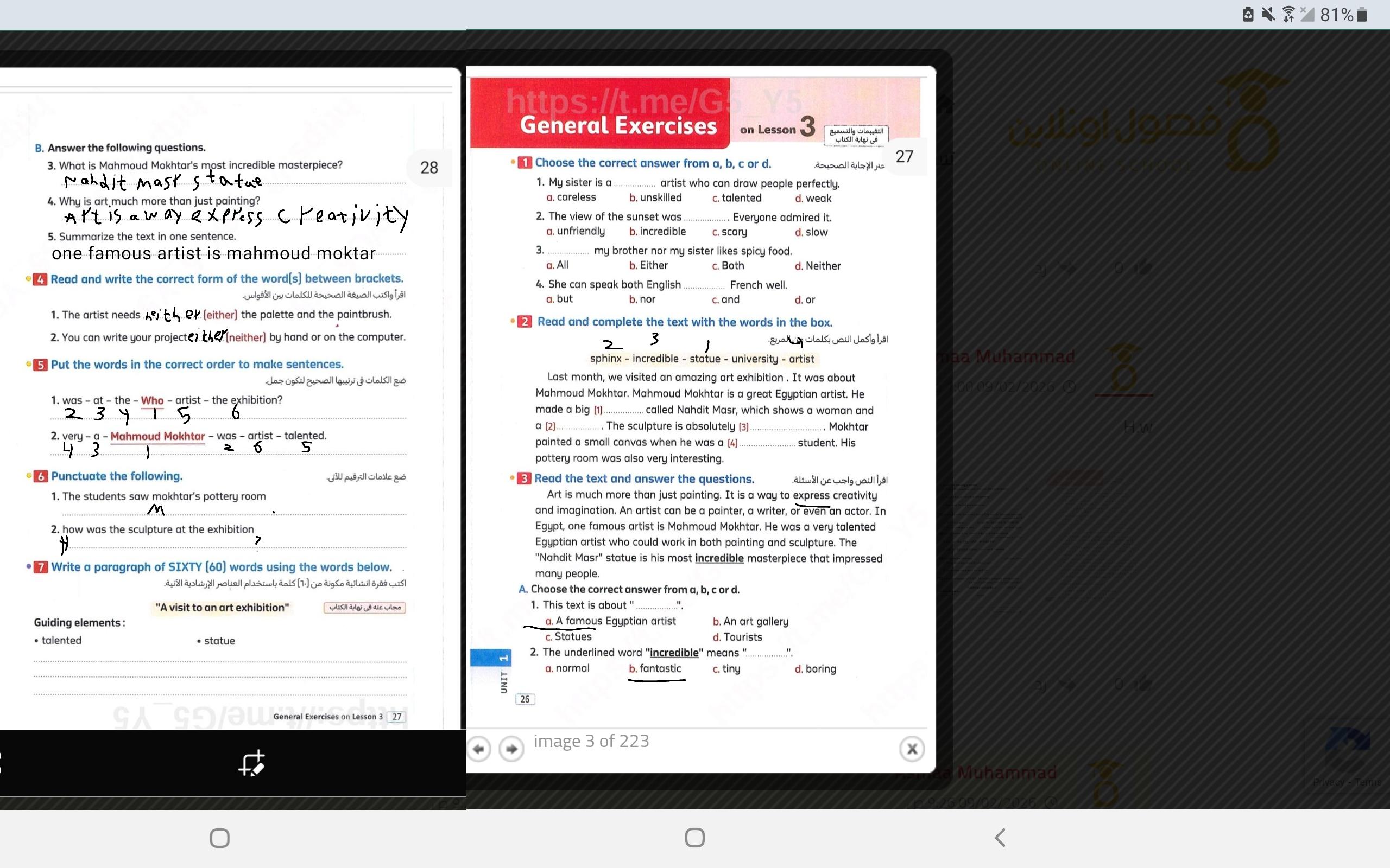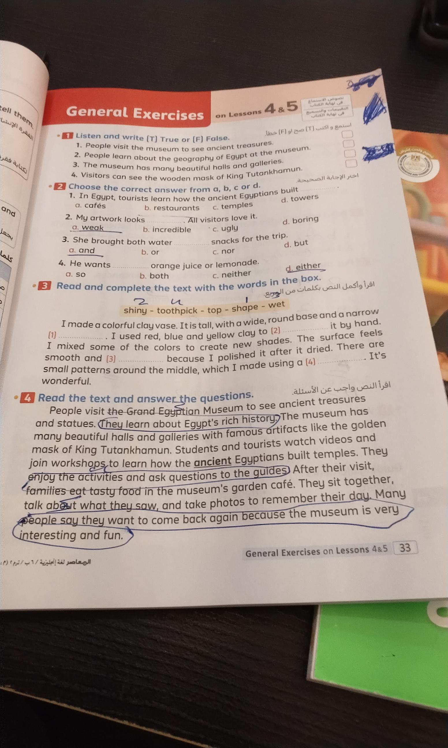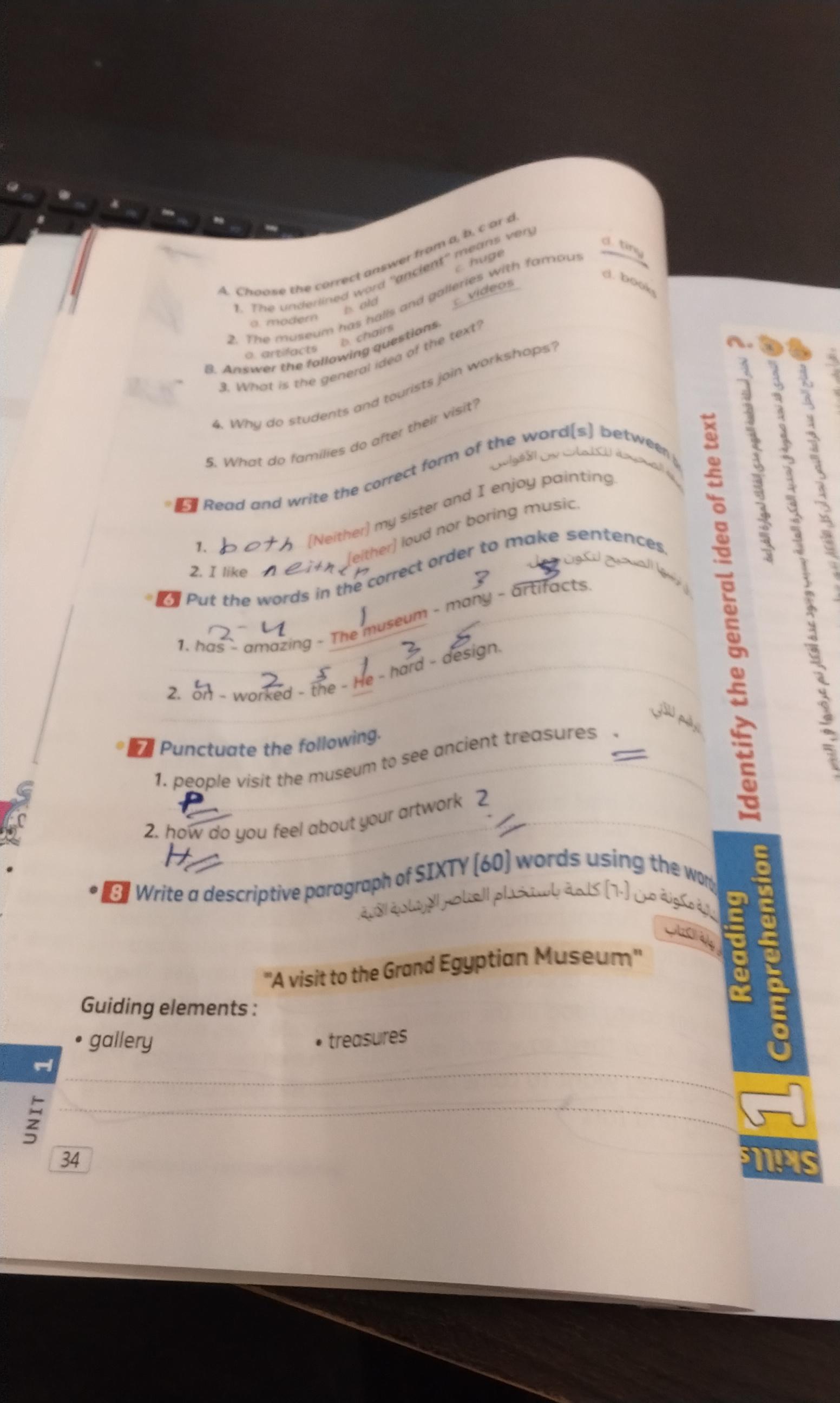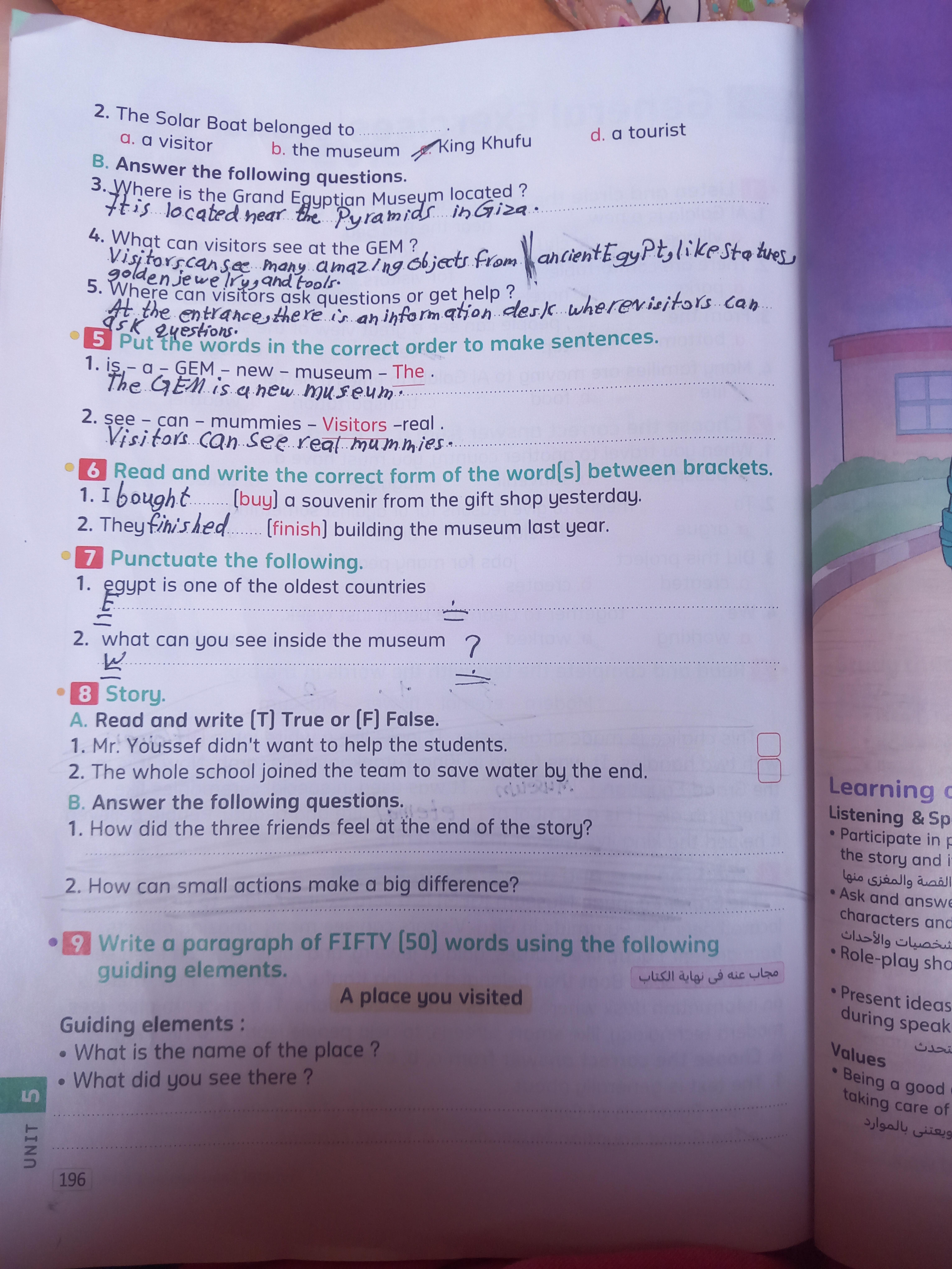 During my visit to the Grand Egyptian Museum, I walked into a big gallery full of history. I saw many statues, tools, and beautiful treasures from ancient Egypt. The gallery was quiet and well organized. The treasures showed how people lived long ago. I enjoyed learning new things and felt proud of Egypt’s great past. It was a nice and interesting visit for me.