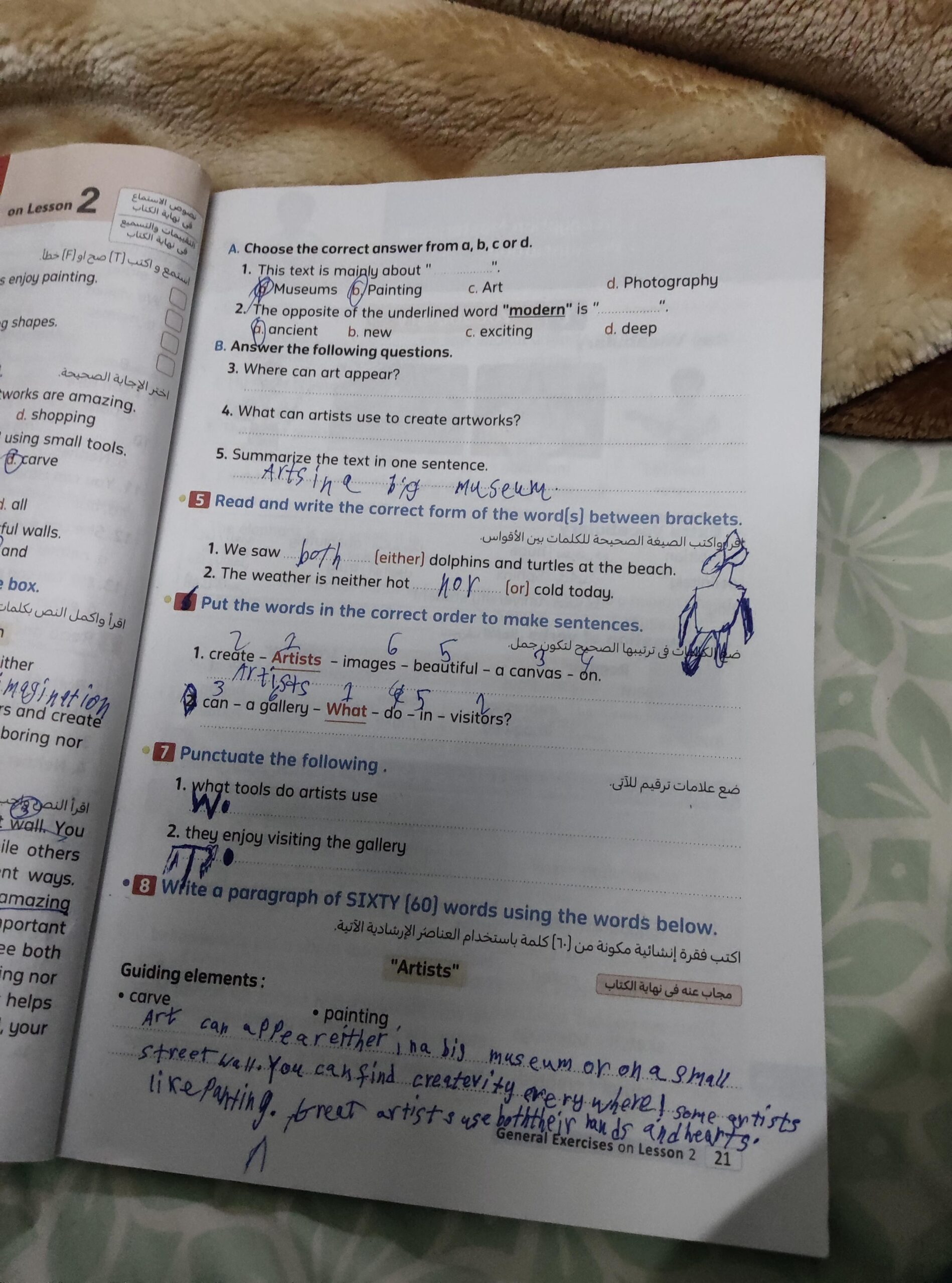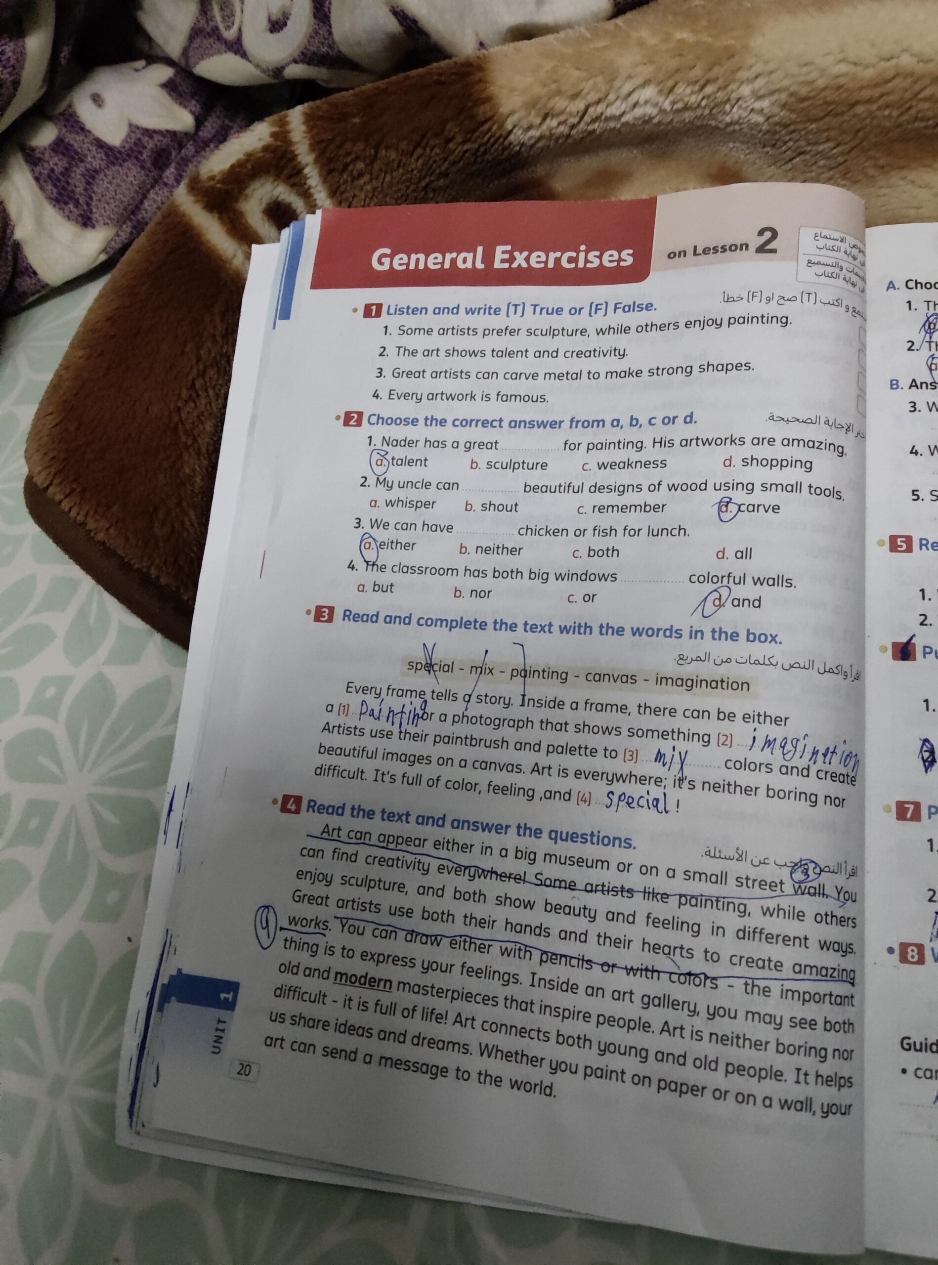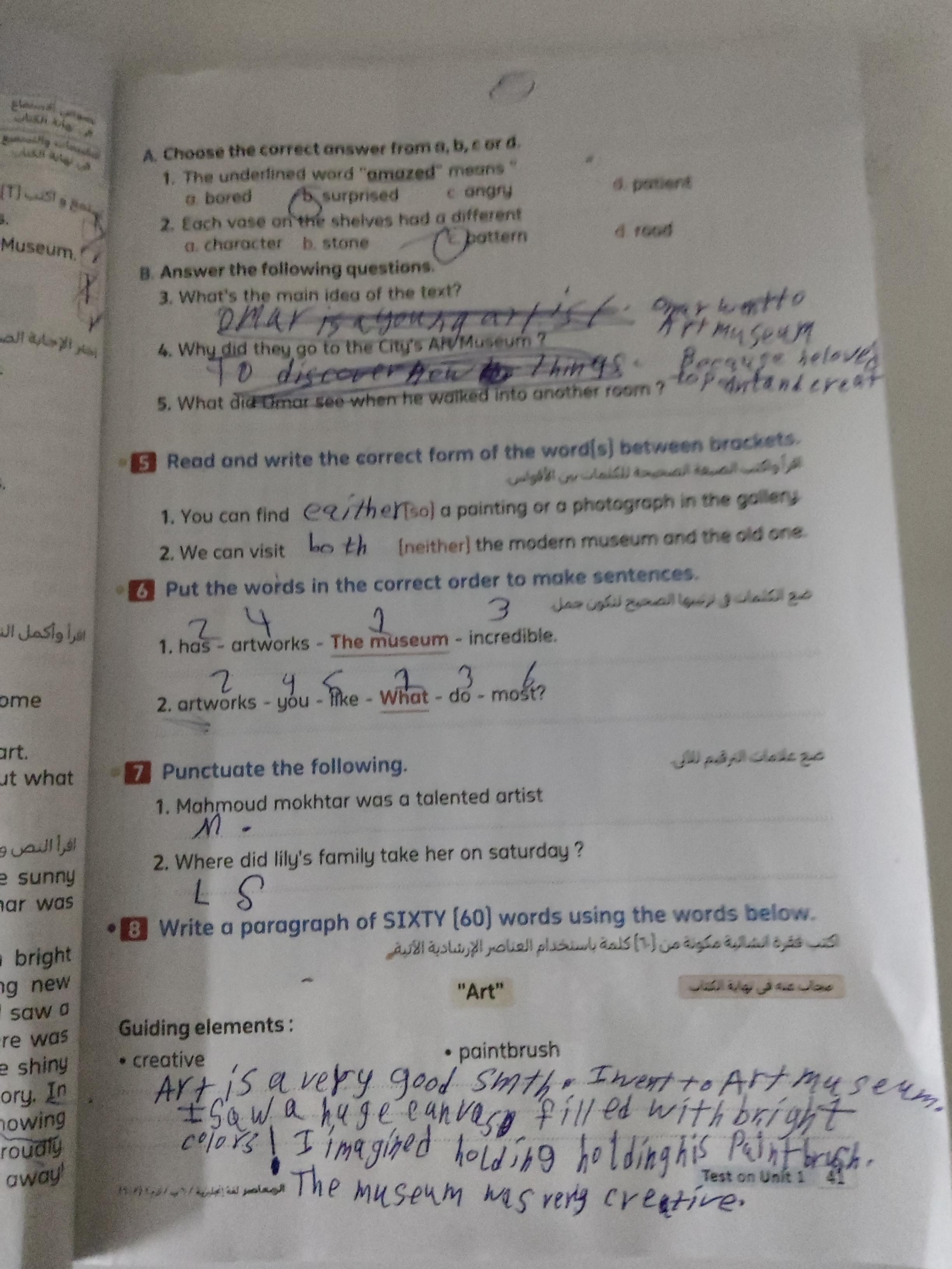 Art is a beautiful way to express ideas and feelings. Many people love art because it helps them be creative and show their imagination. When I hold a paintbrush, I feel calm and happy. I can mix colors and create new shapes on the paper. Art also helps us see the world in different ways. It is not only fun, but it also helps us think and grow.
