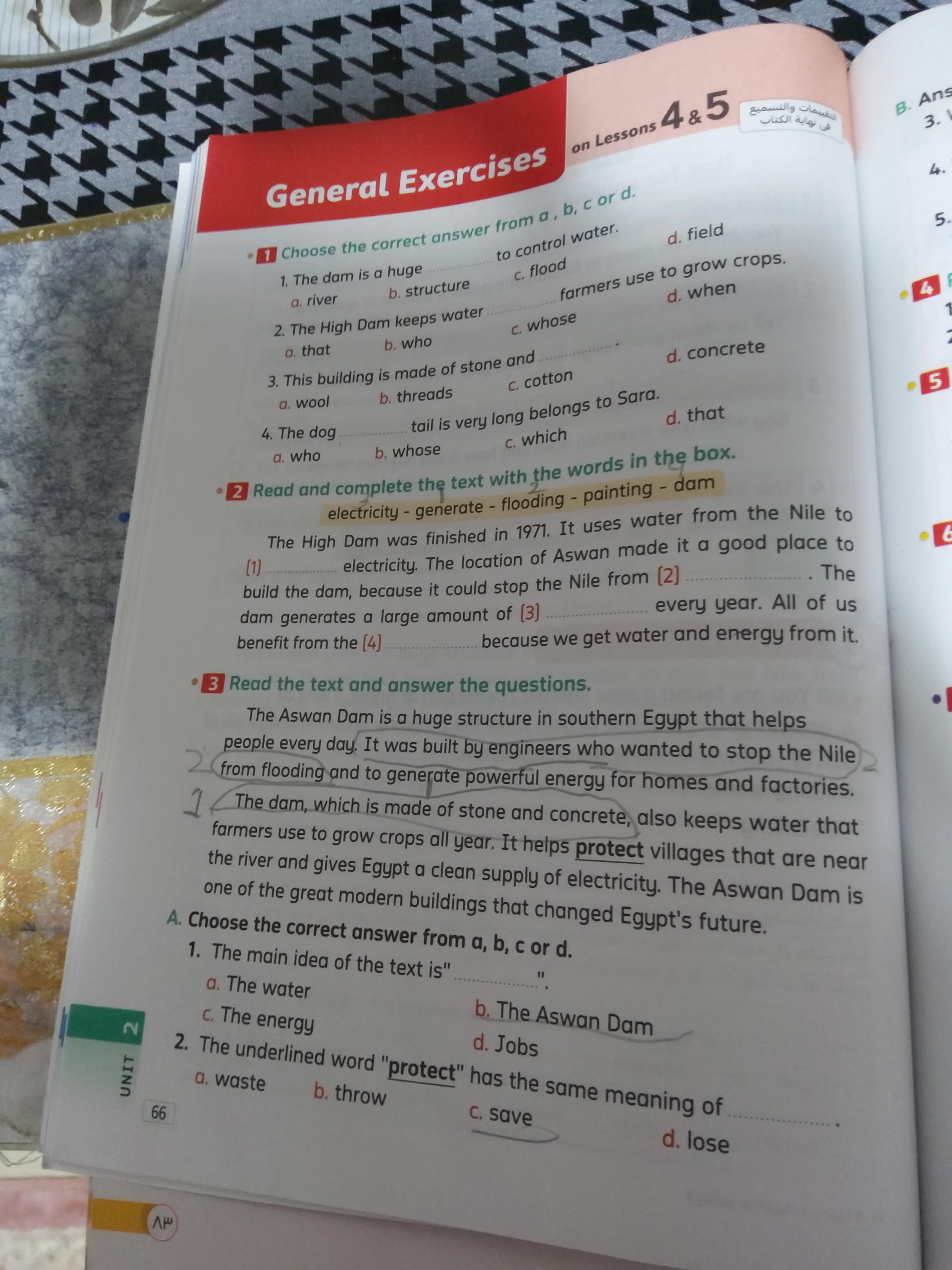 the Aswan m is very important it can generate electricty and They protect us form nile flood it made from stoon and concrete farmers use it water to grow crops all years the aswan dam is very important to us