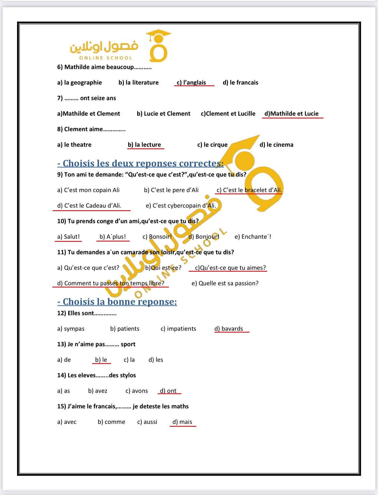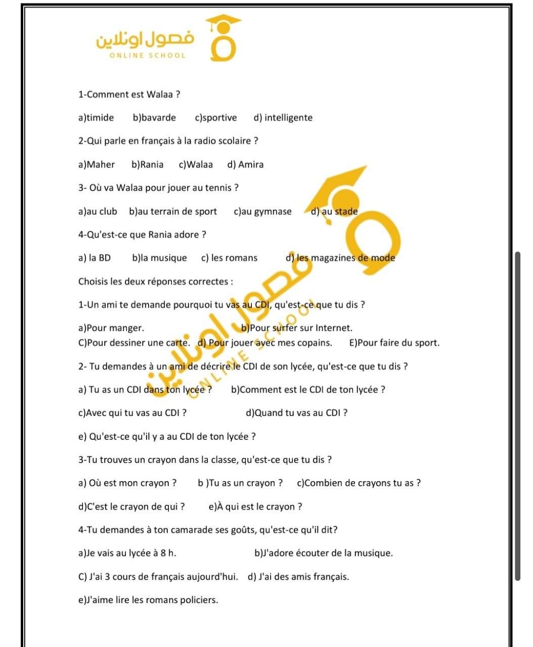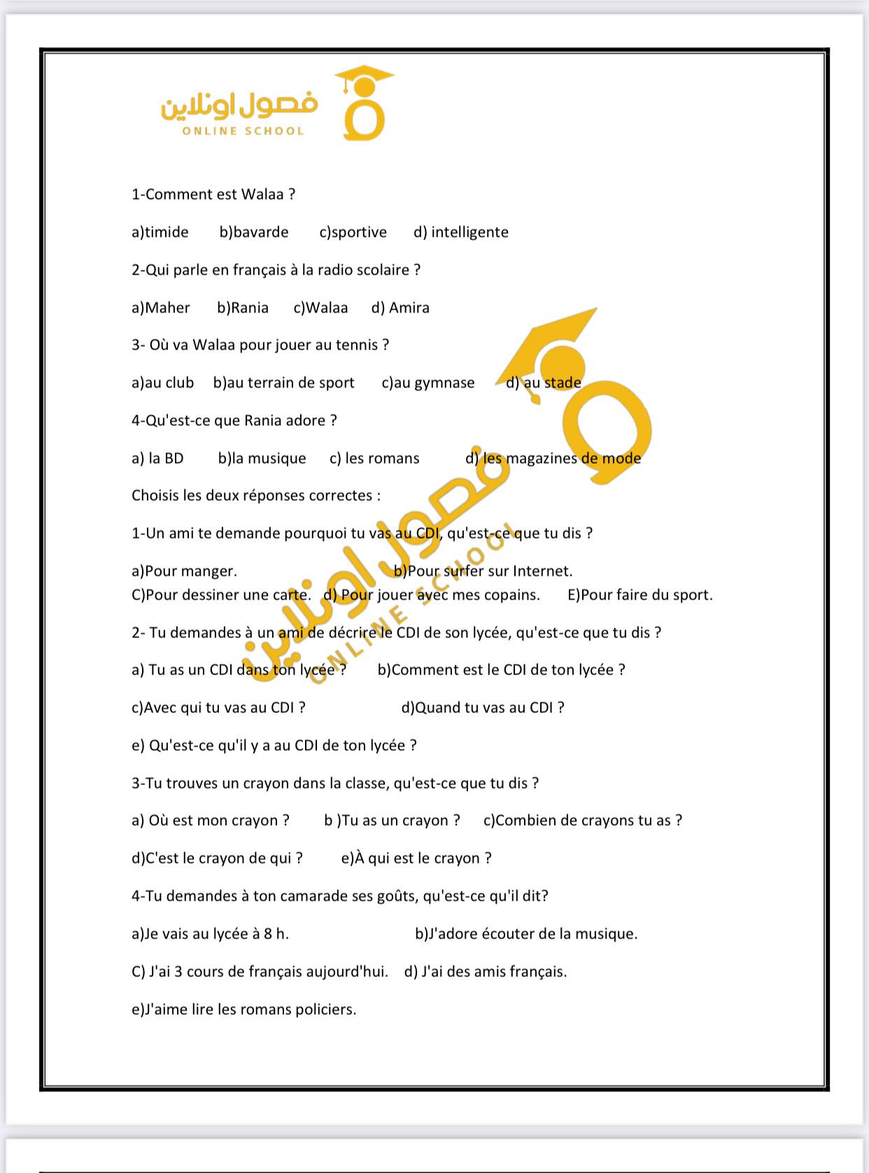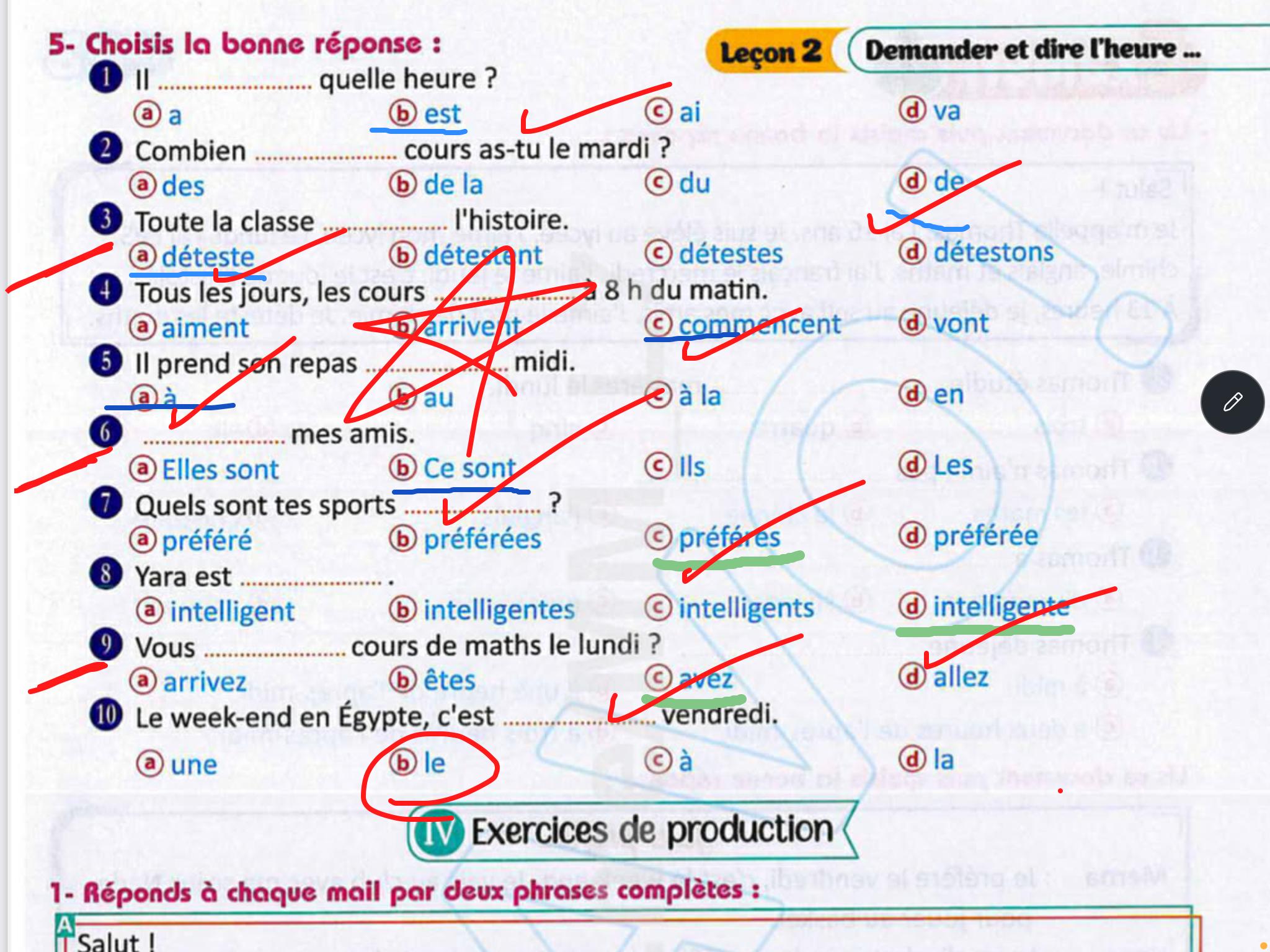 حصه اضافيه Exercices variées sur Leçon 2///*