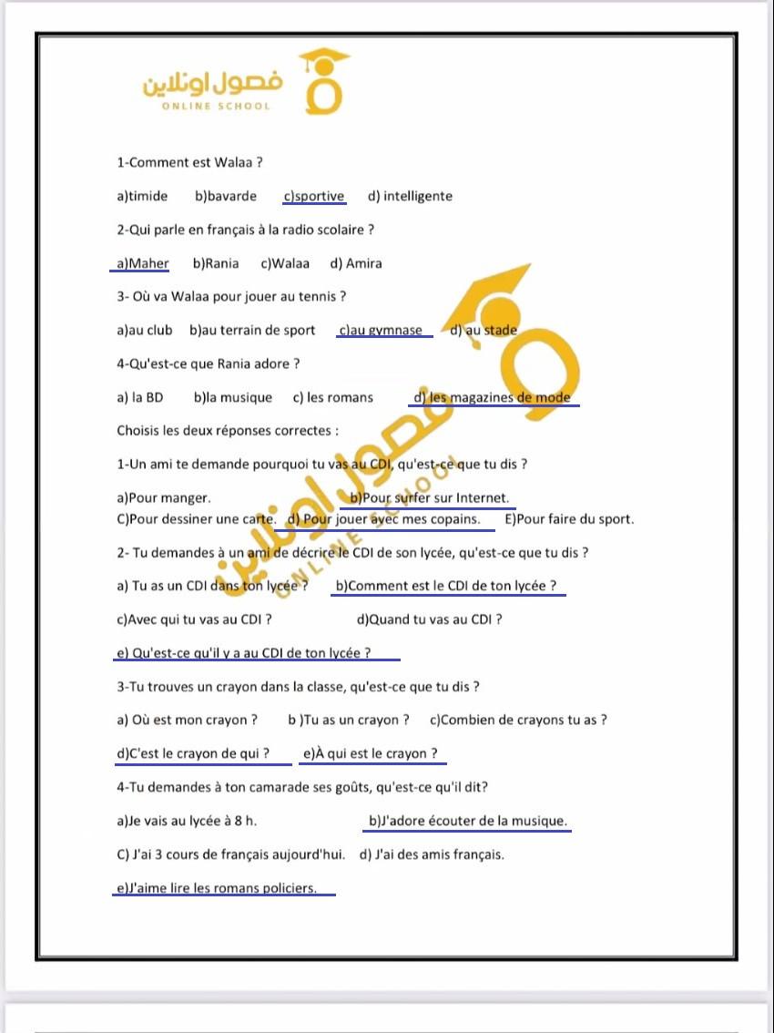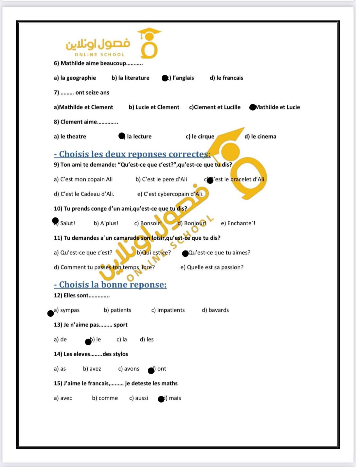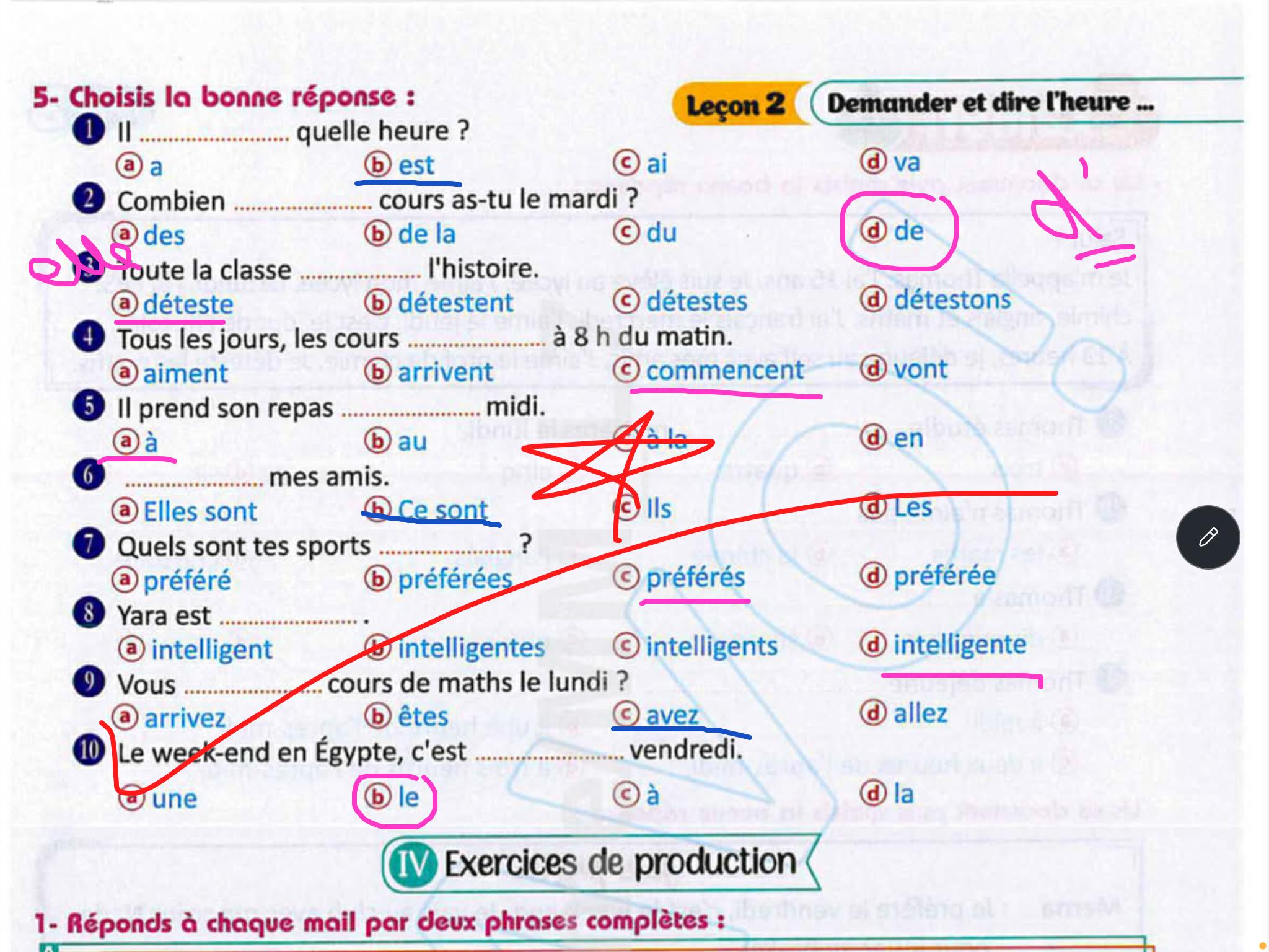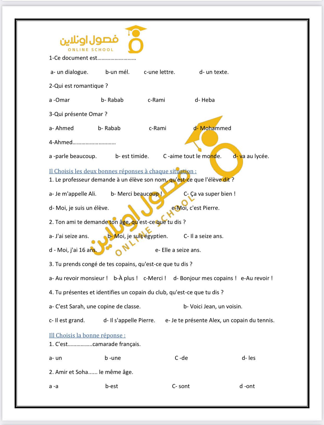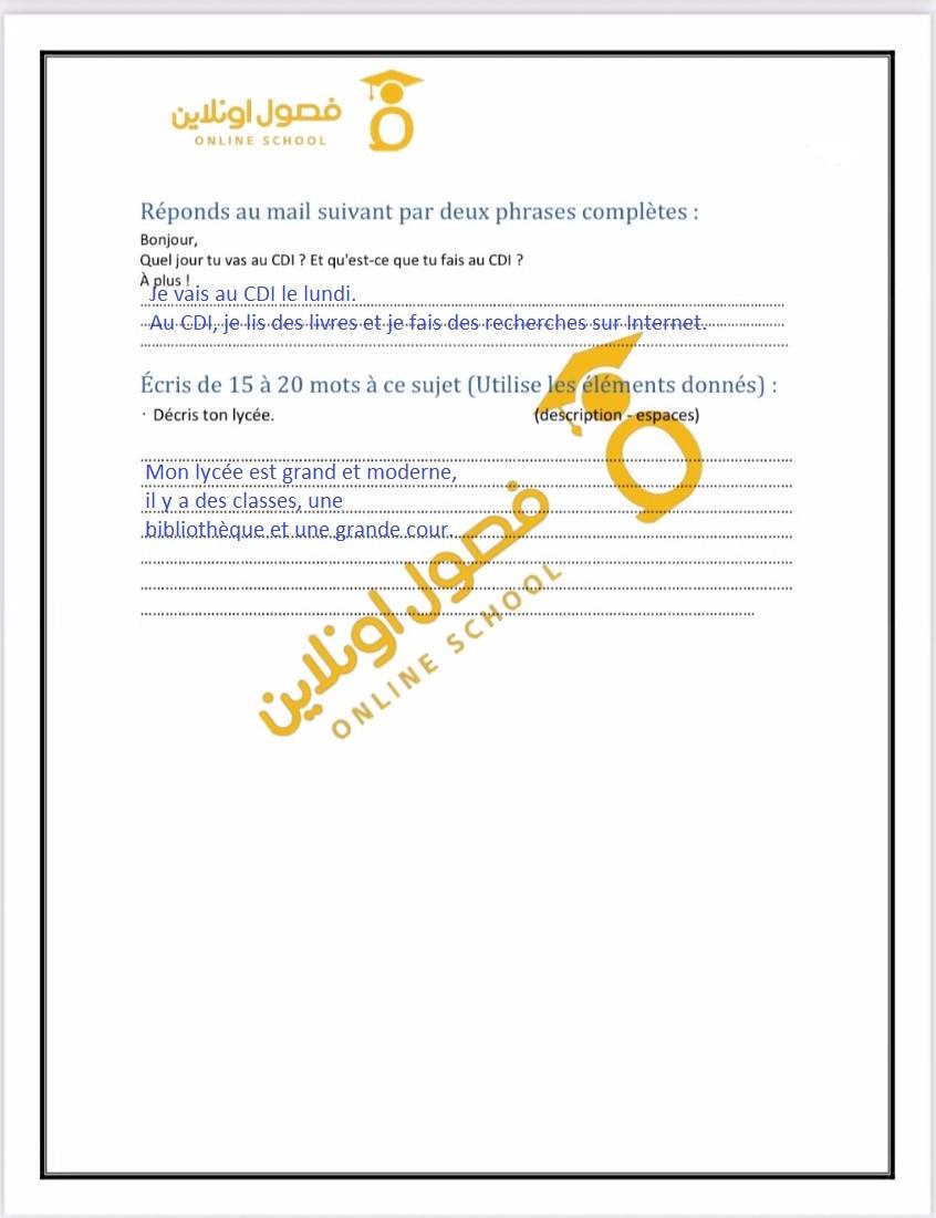 حصه اضافيه Exercices variées sur Leçon 2///*