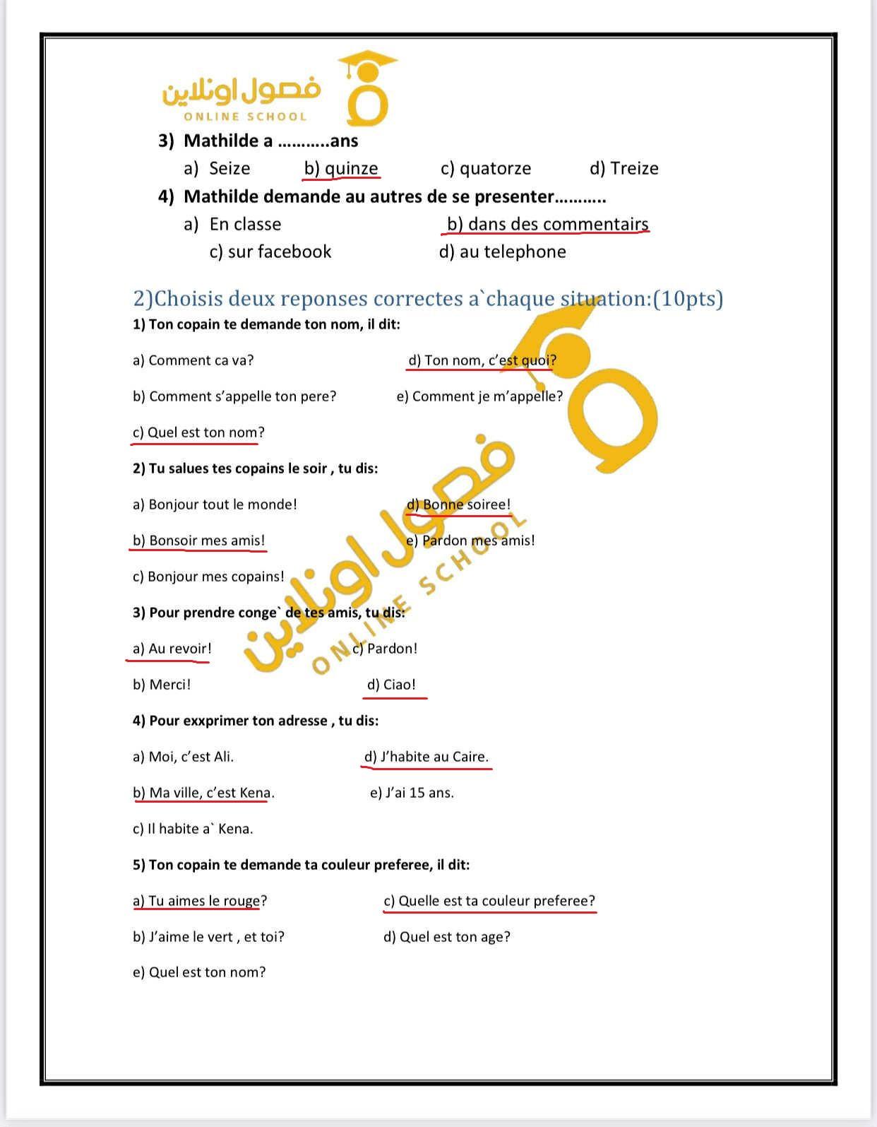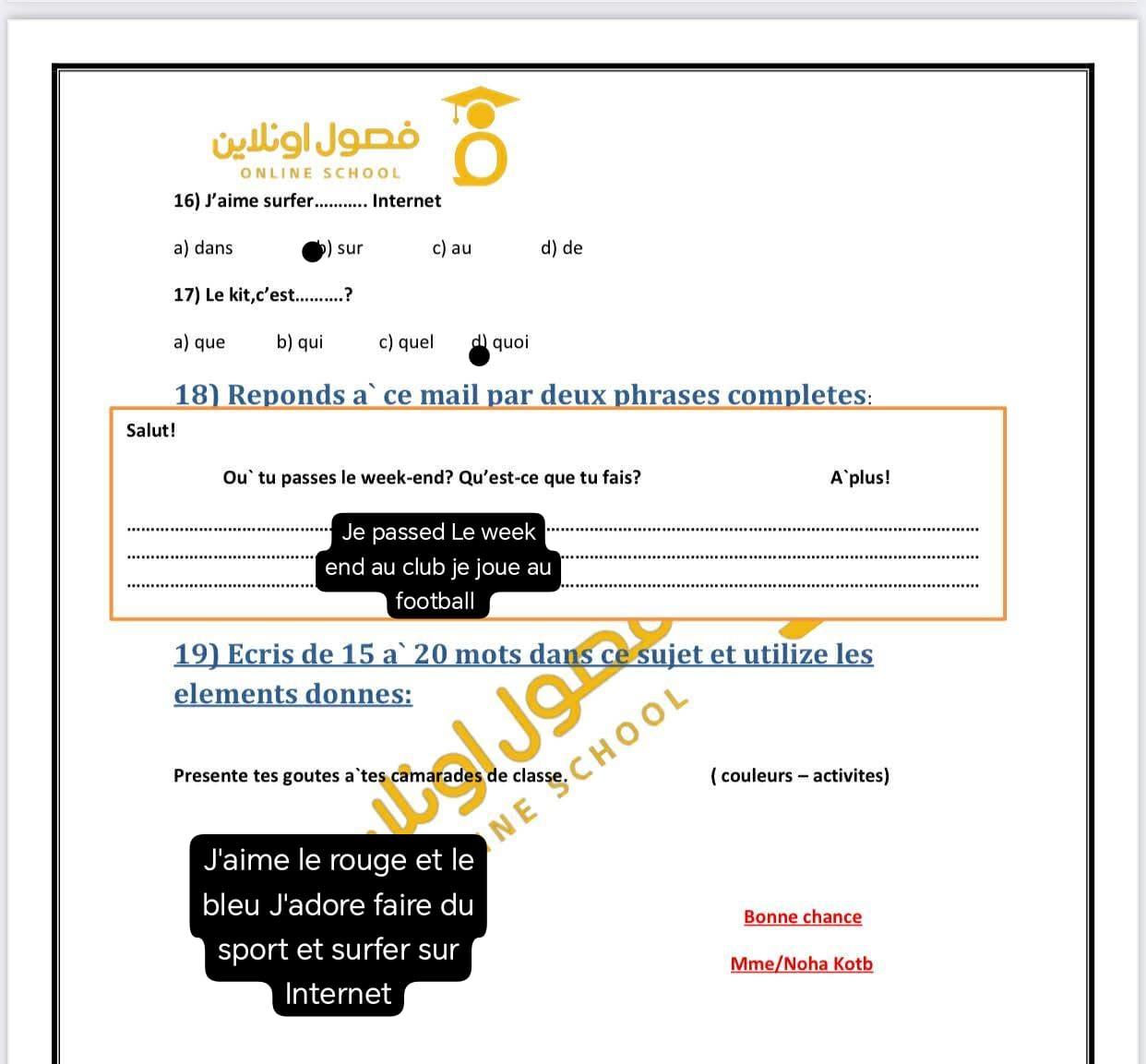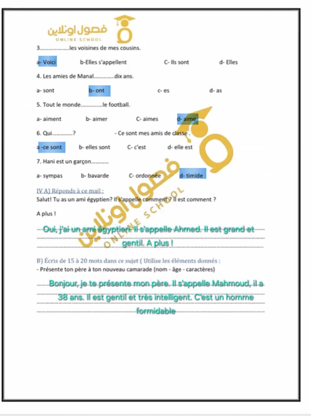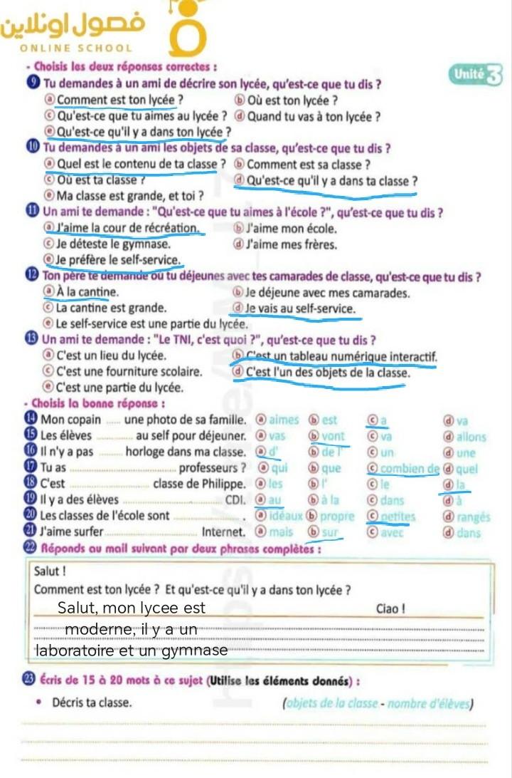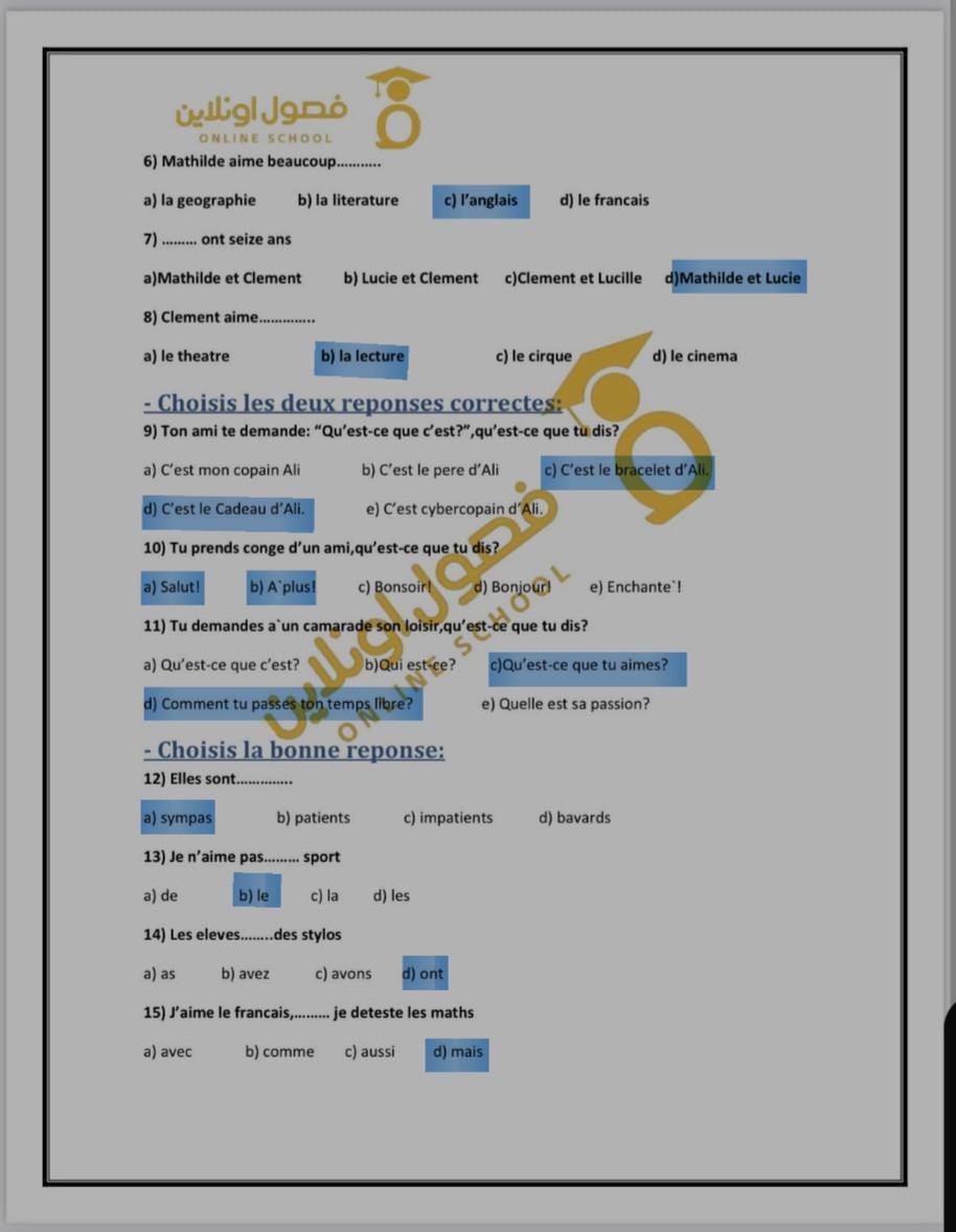حصه اضافيه Exercices variées sur Leçon 2///*