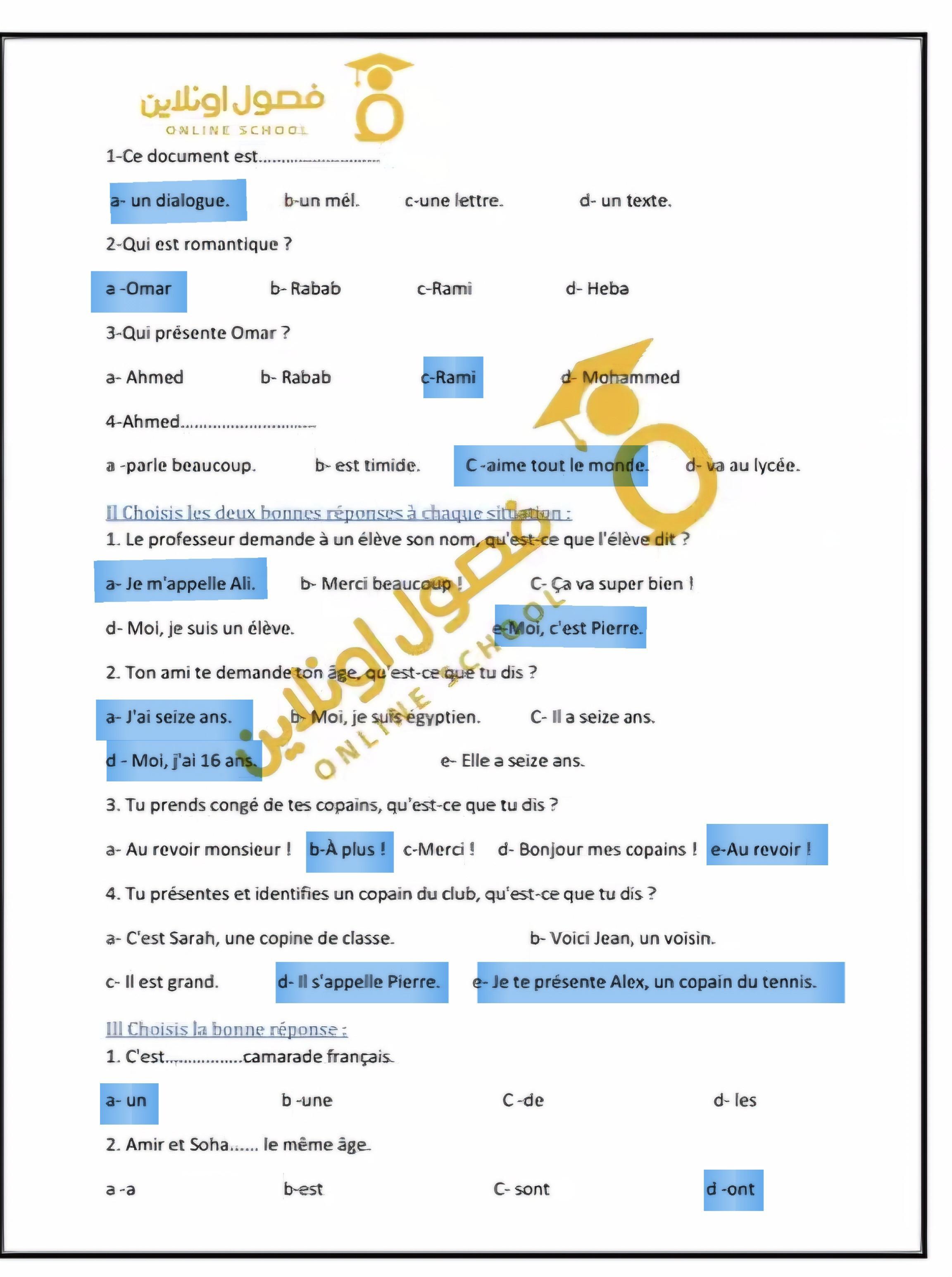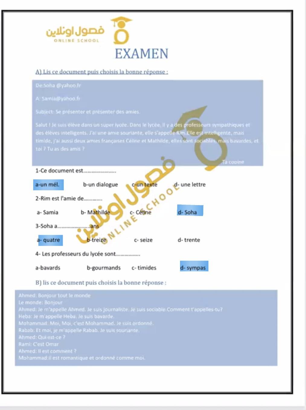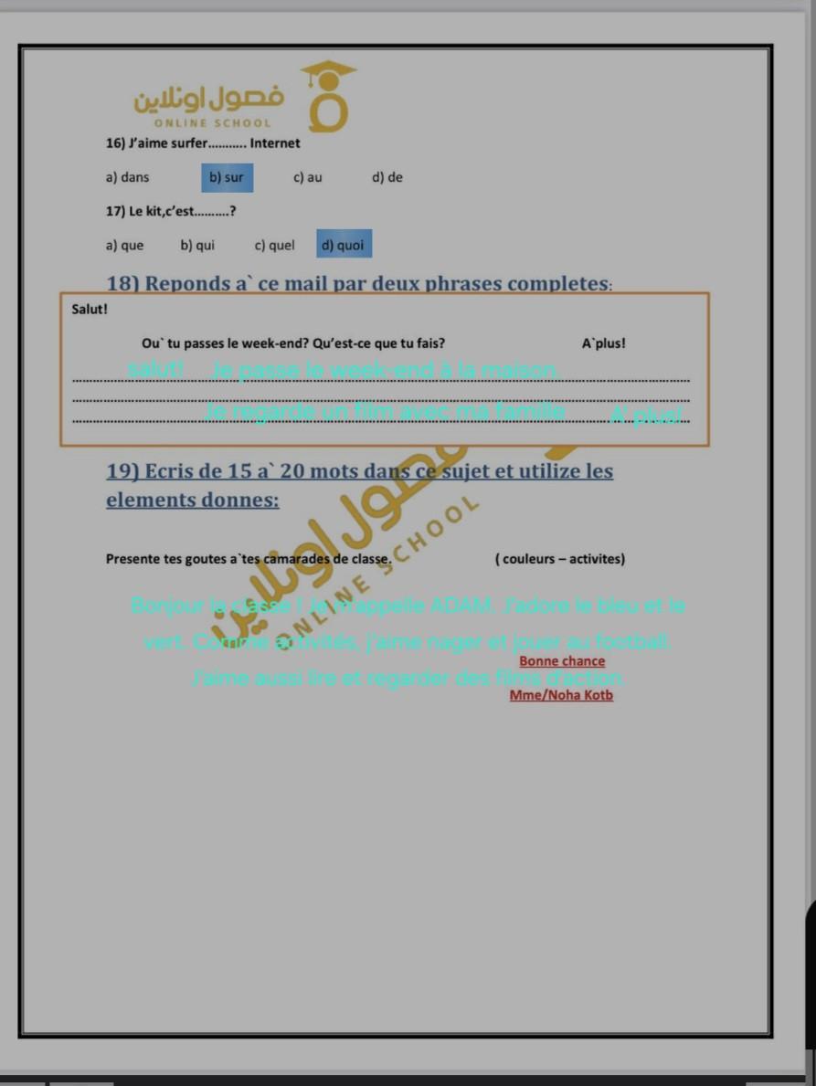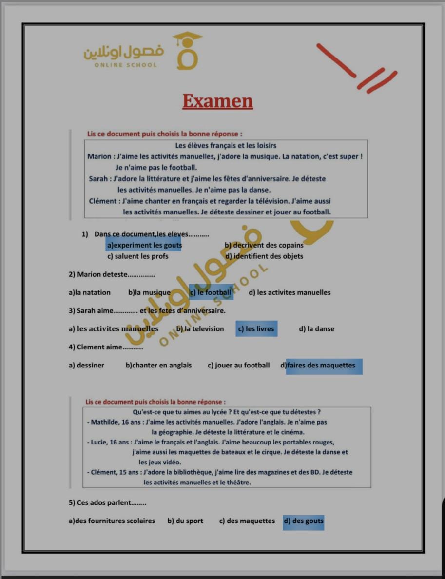 حصه اضافيه Exercices variées sur Leçon 2///*