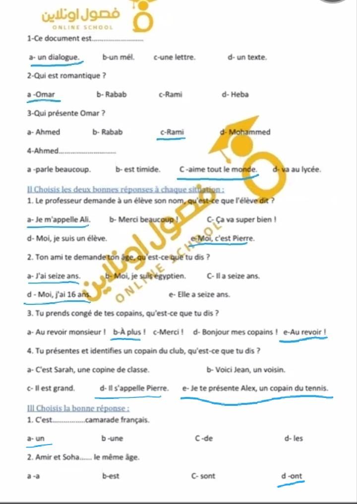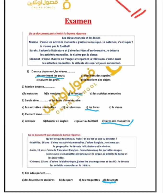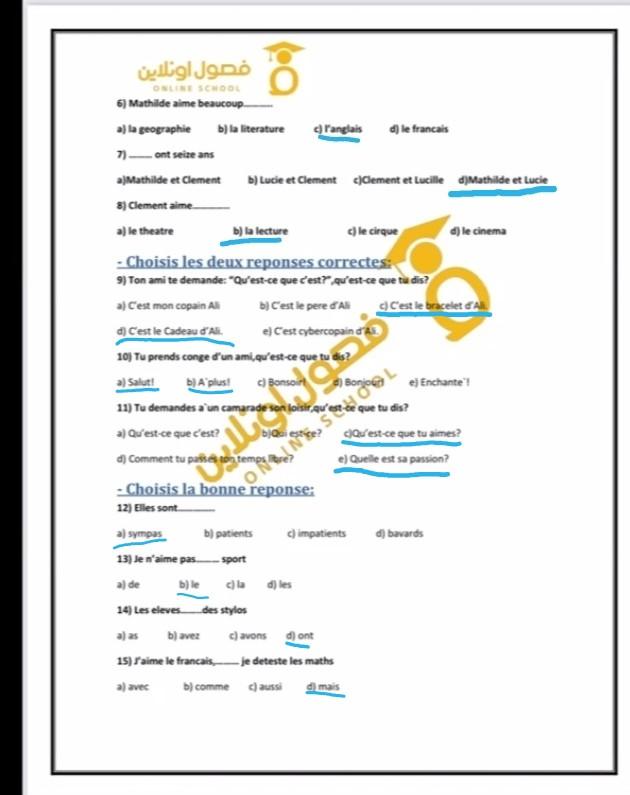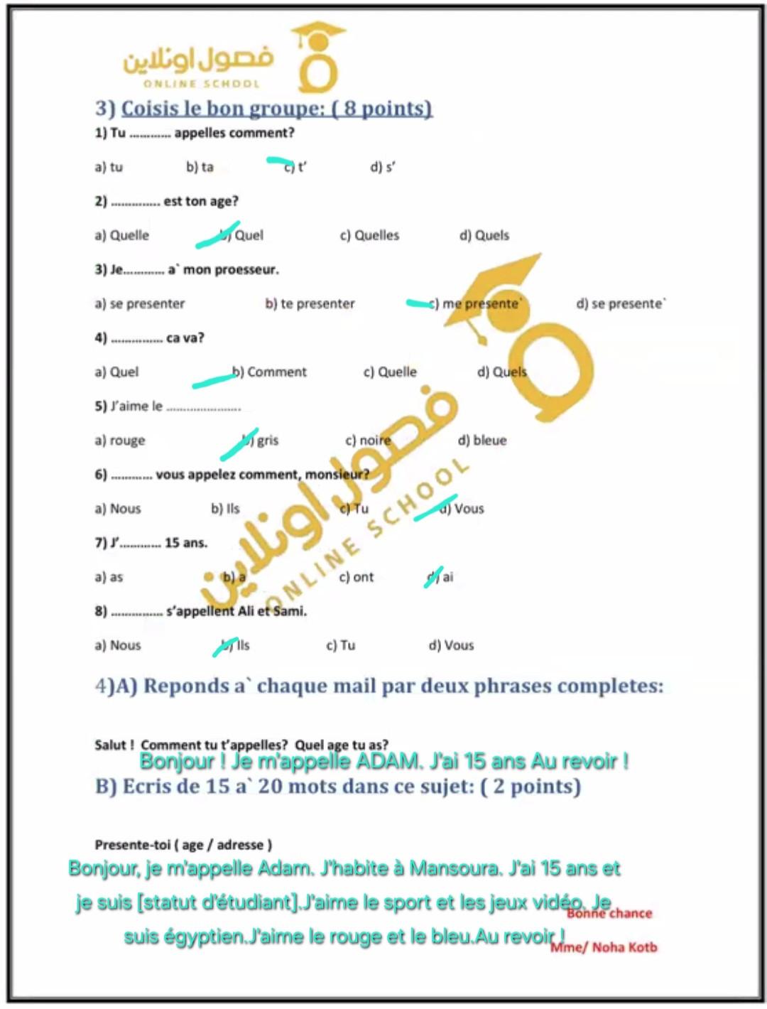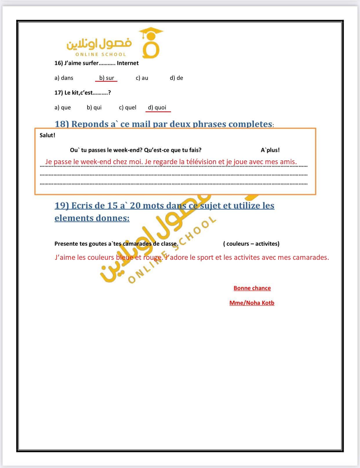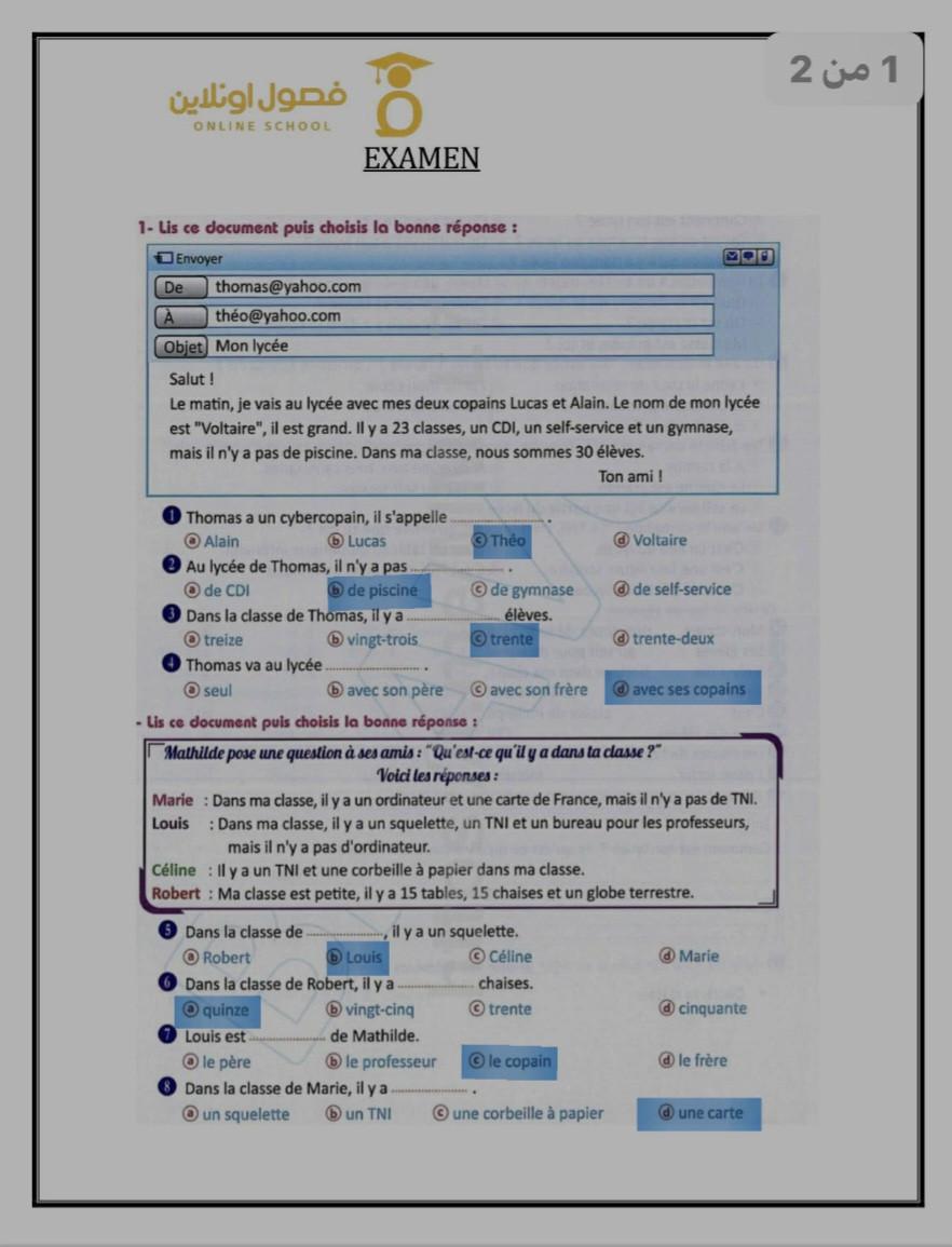 حصه اضافيه Exercices variées sur Leçon 2///*