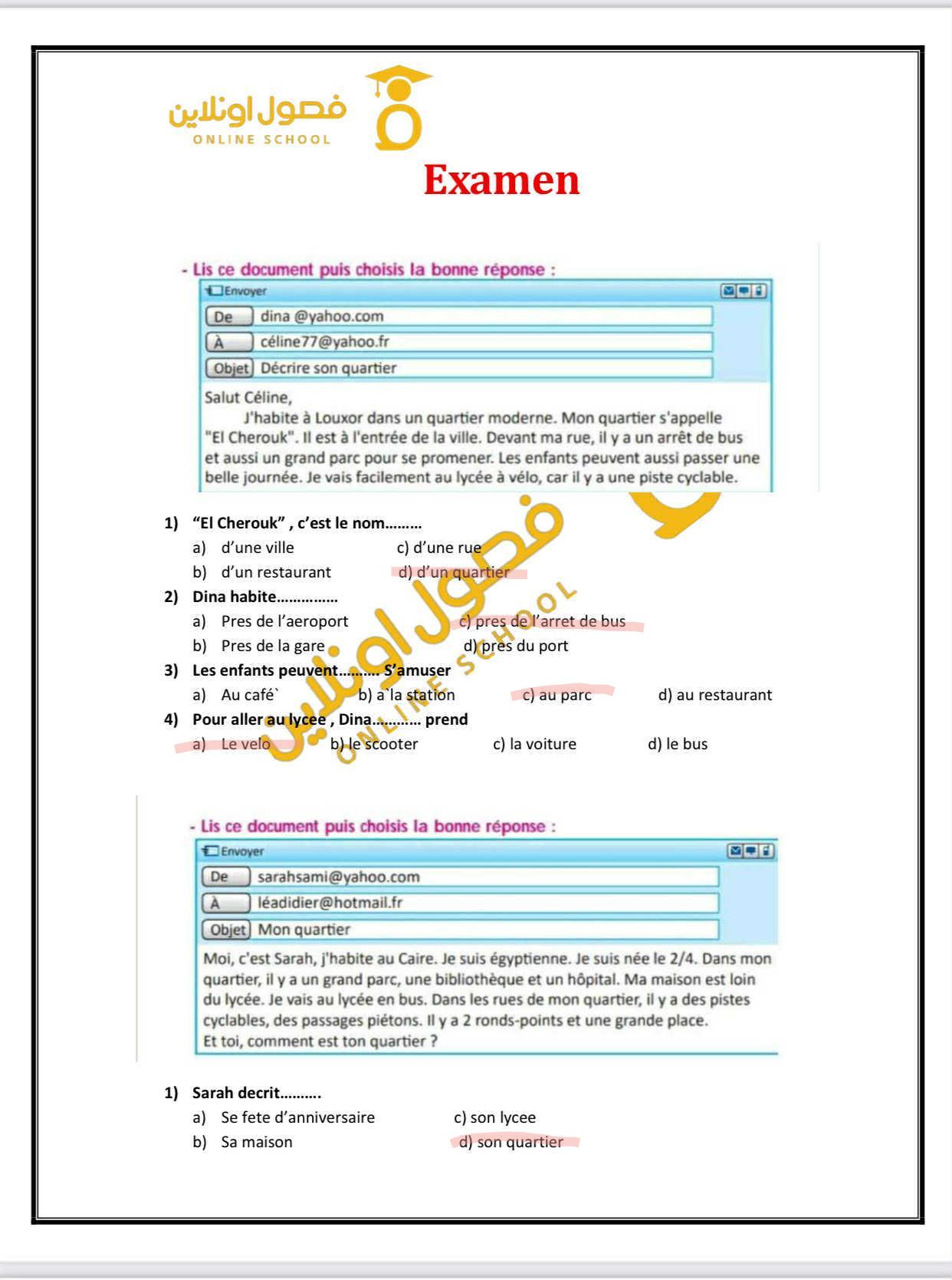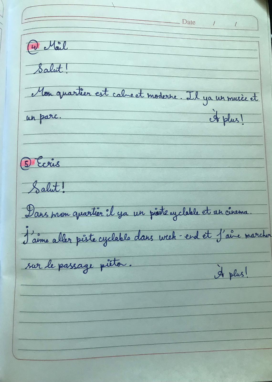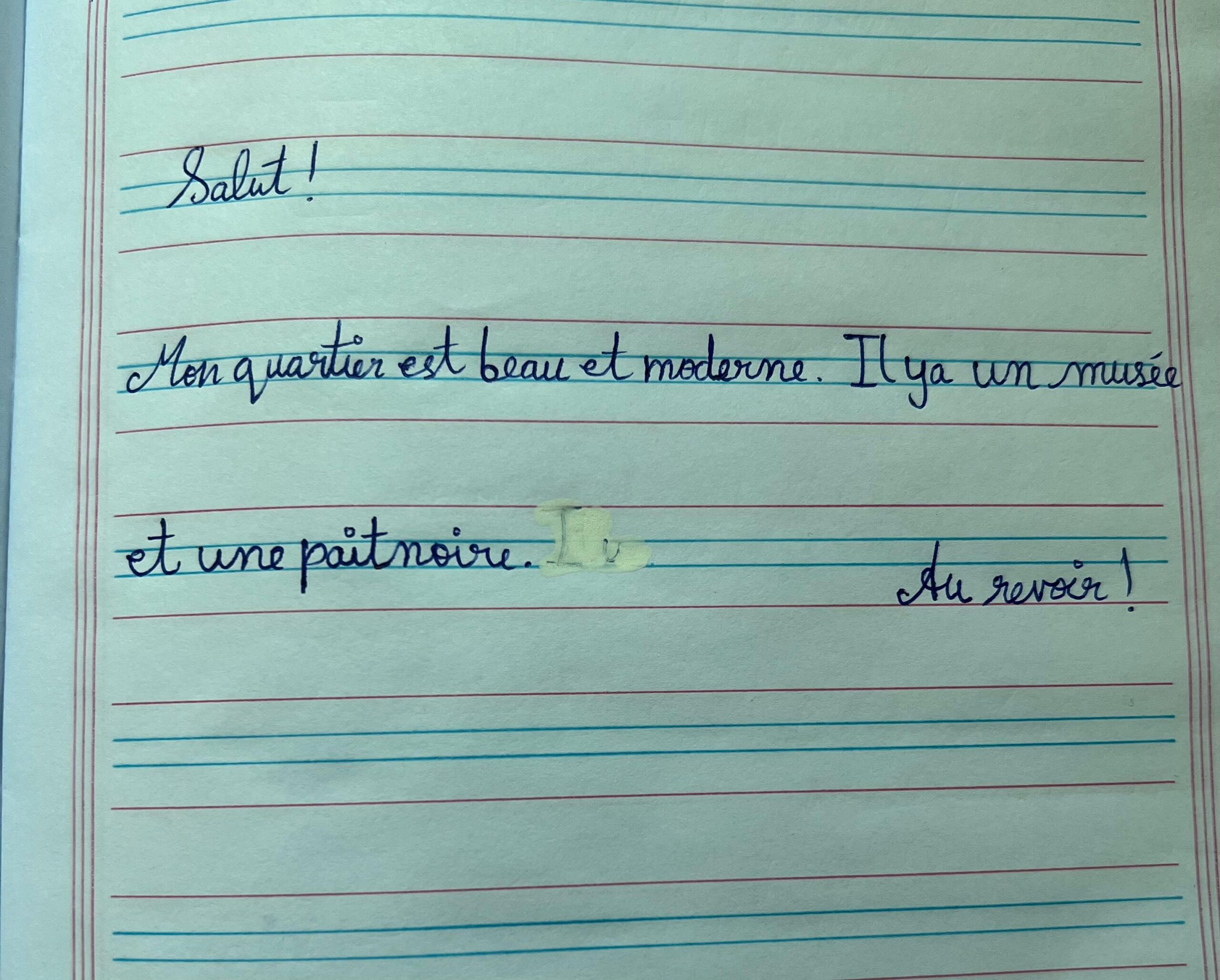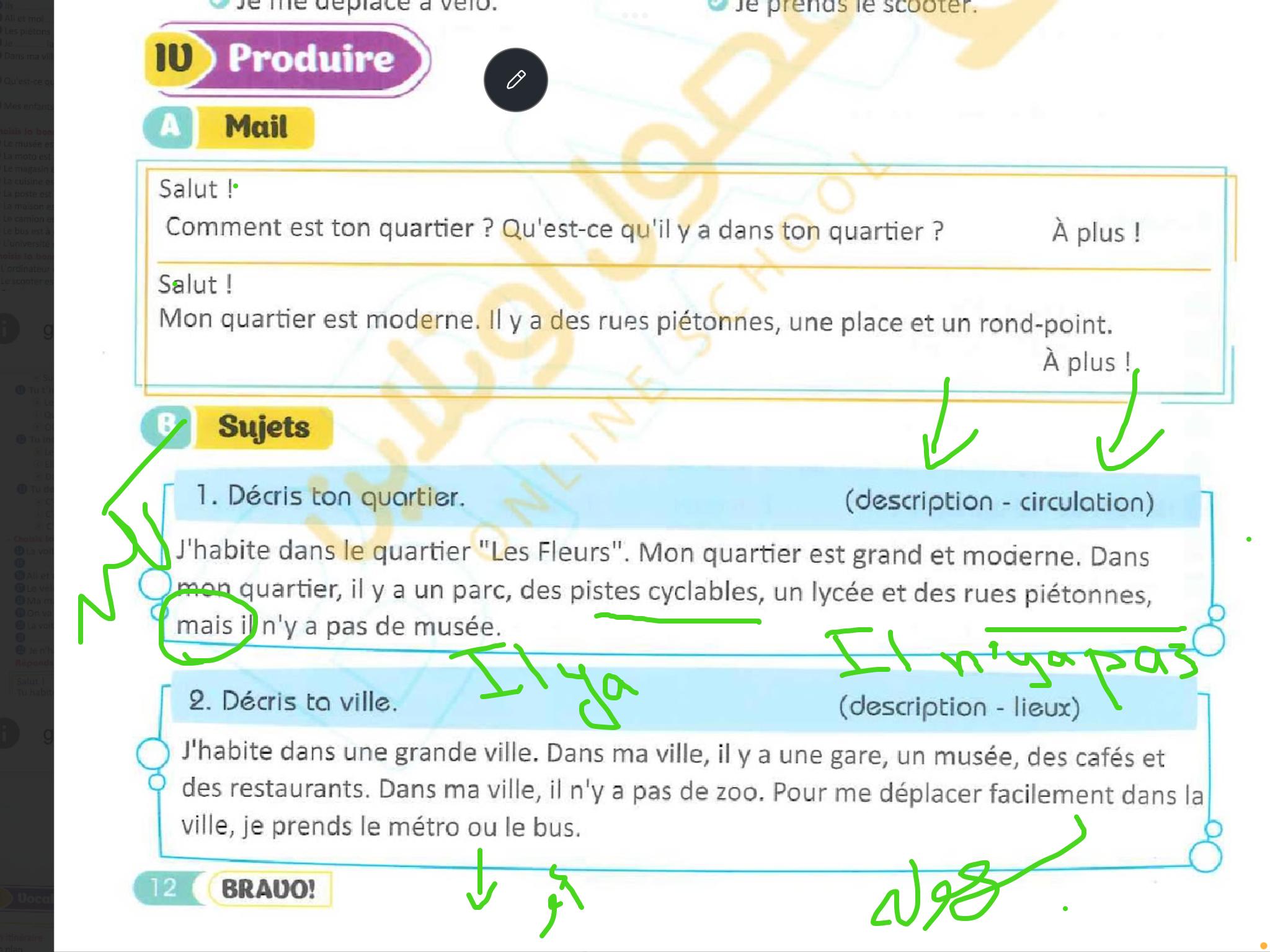 Mon quartier est moderne et grand. Il y a de parc et un musée.