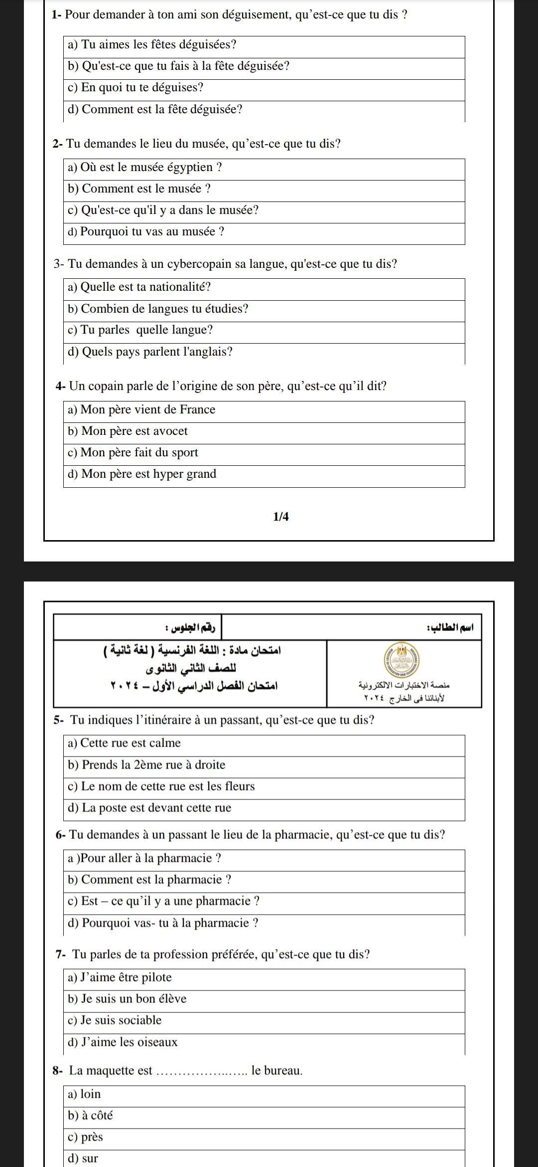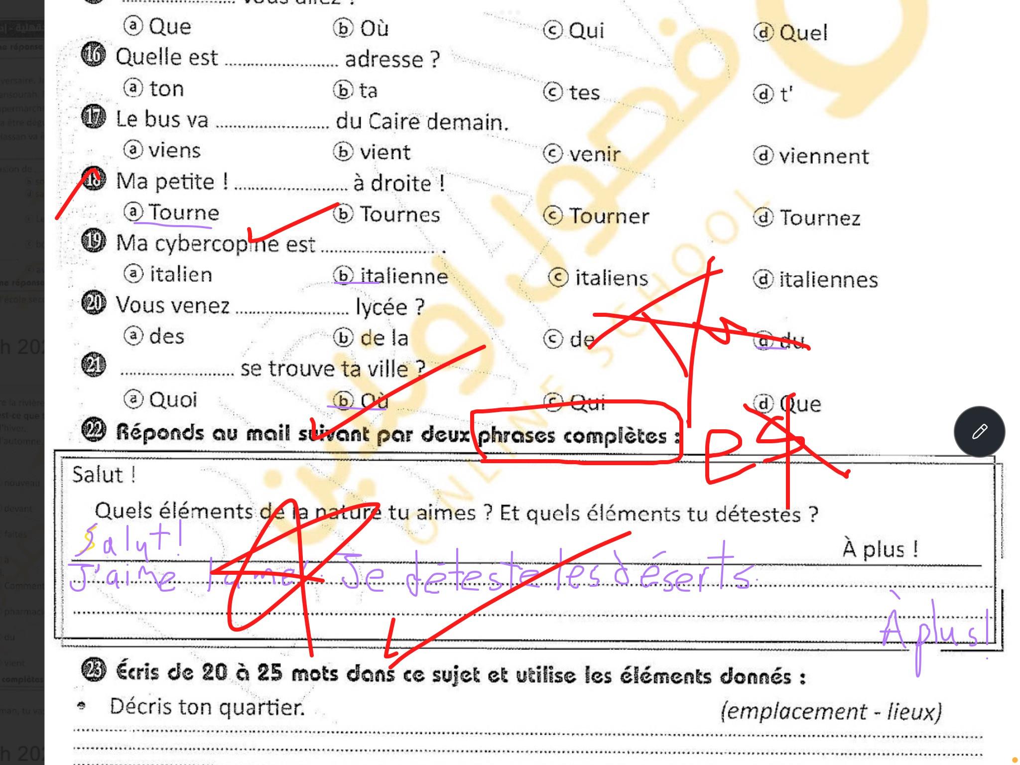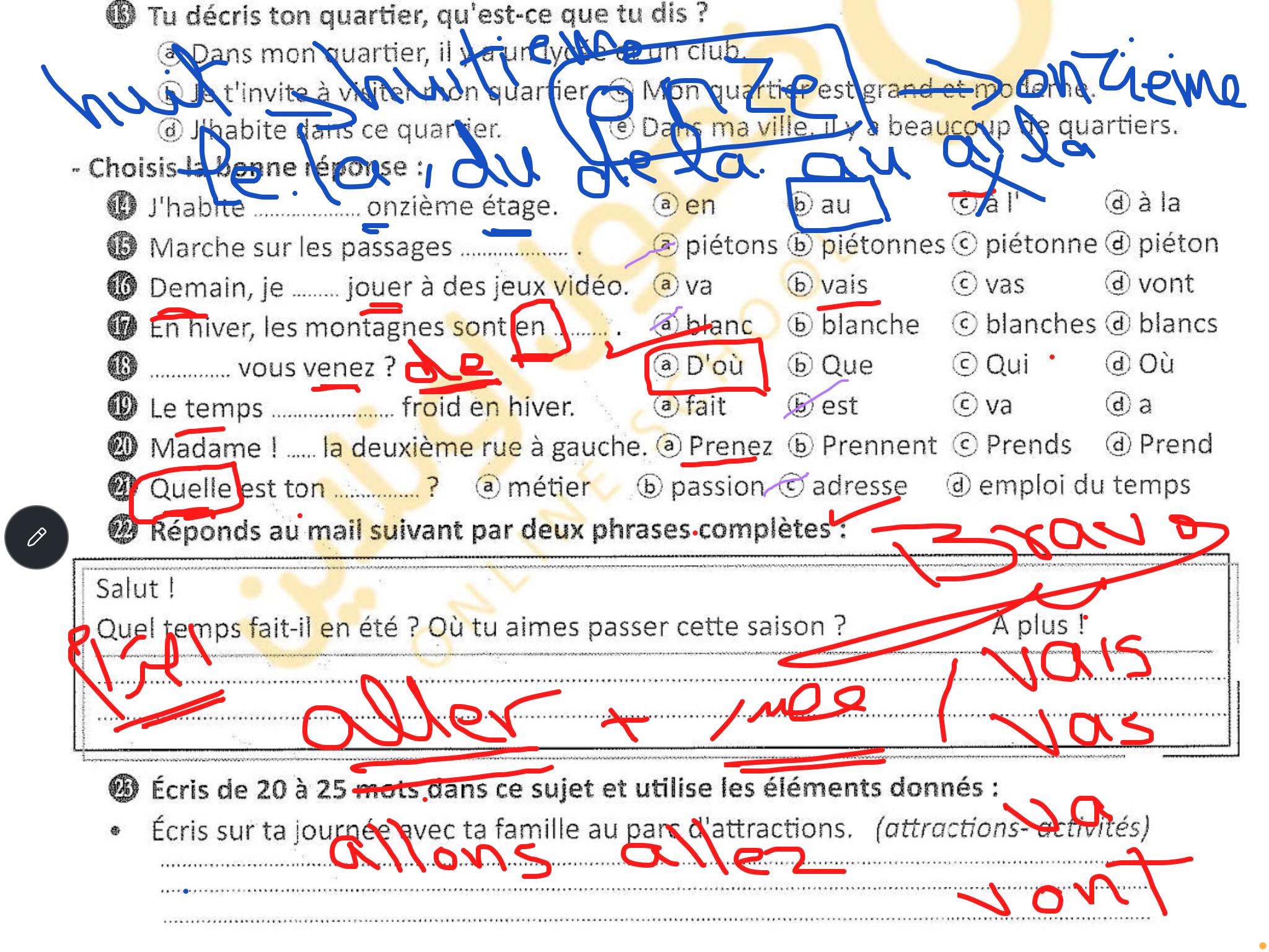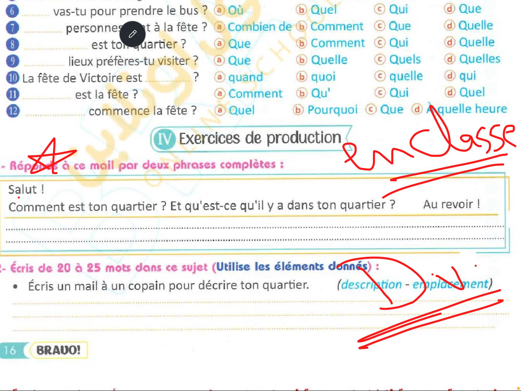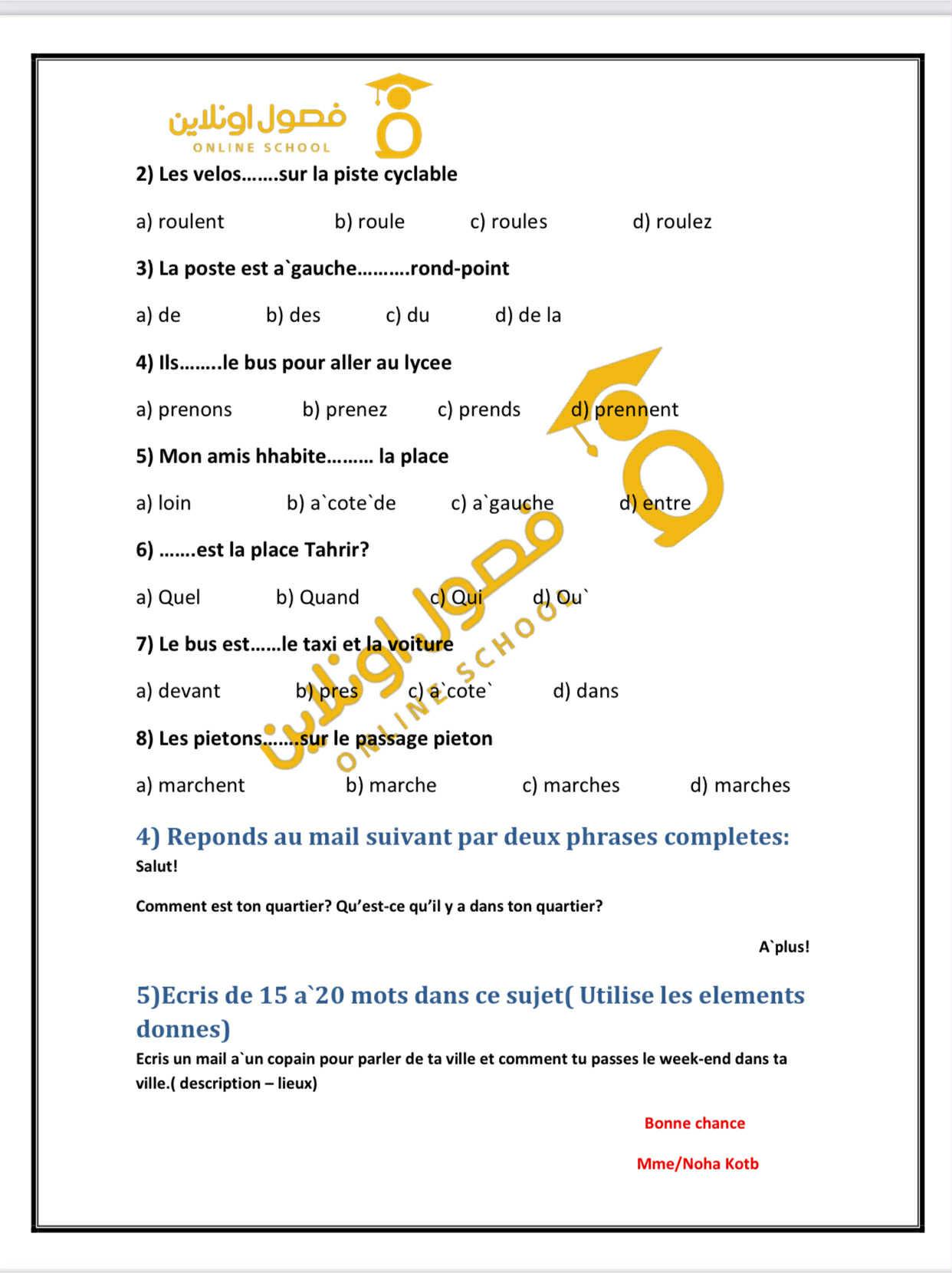 Mon quartier est moderne et grand. Il y a de parc et un musée.