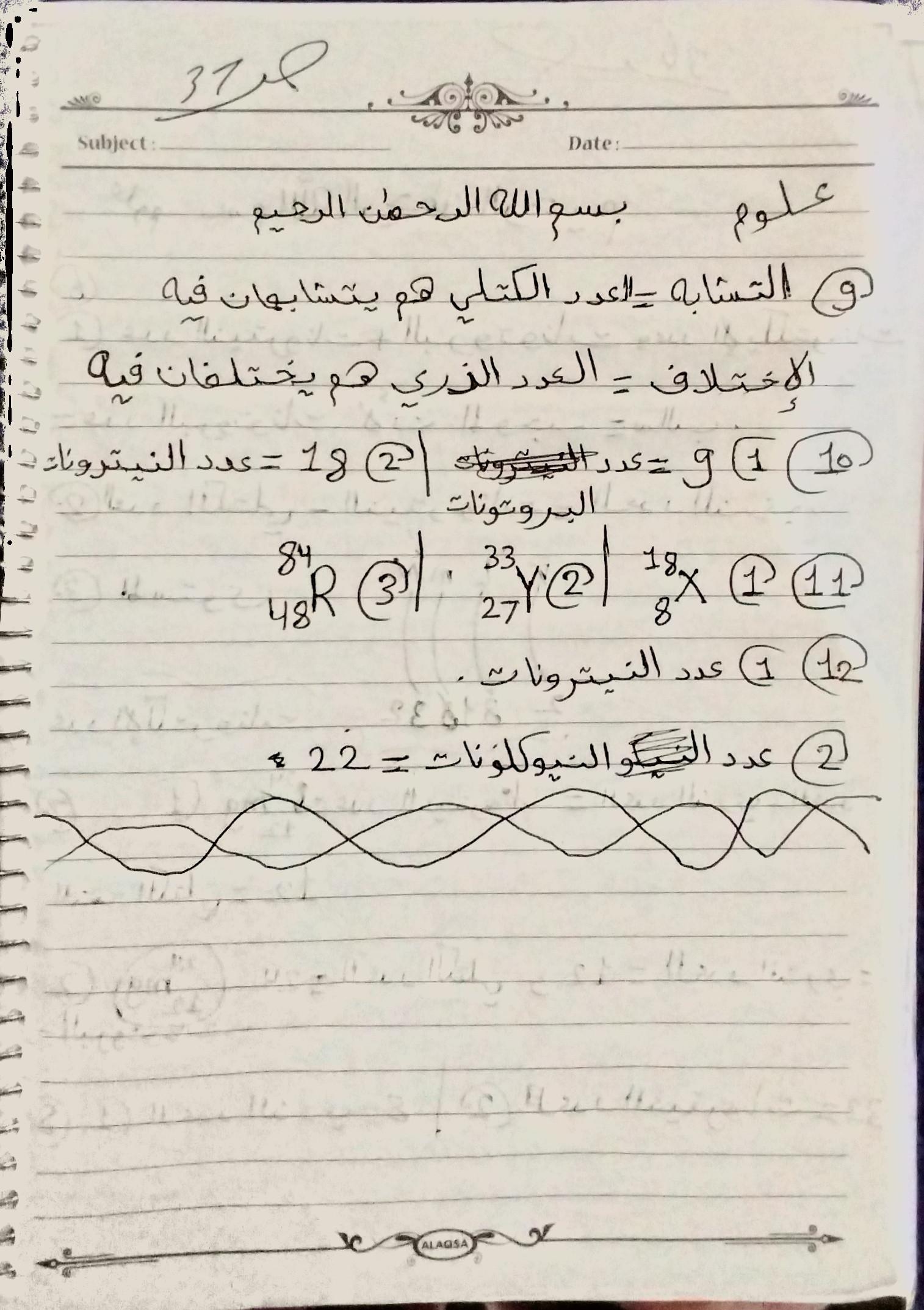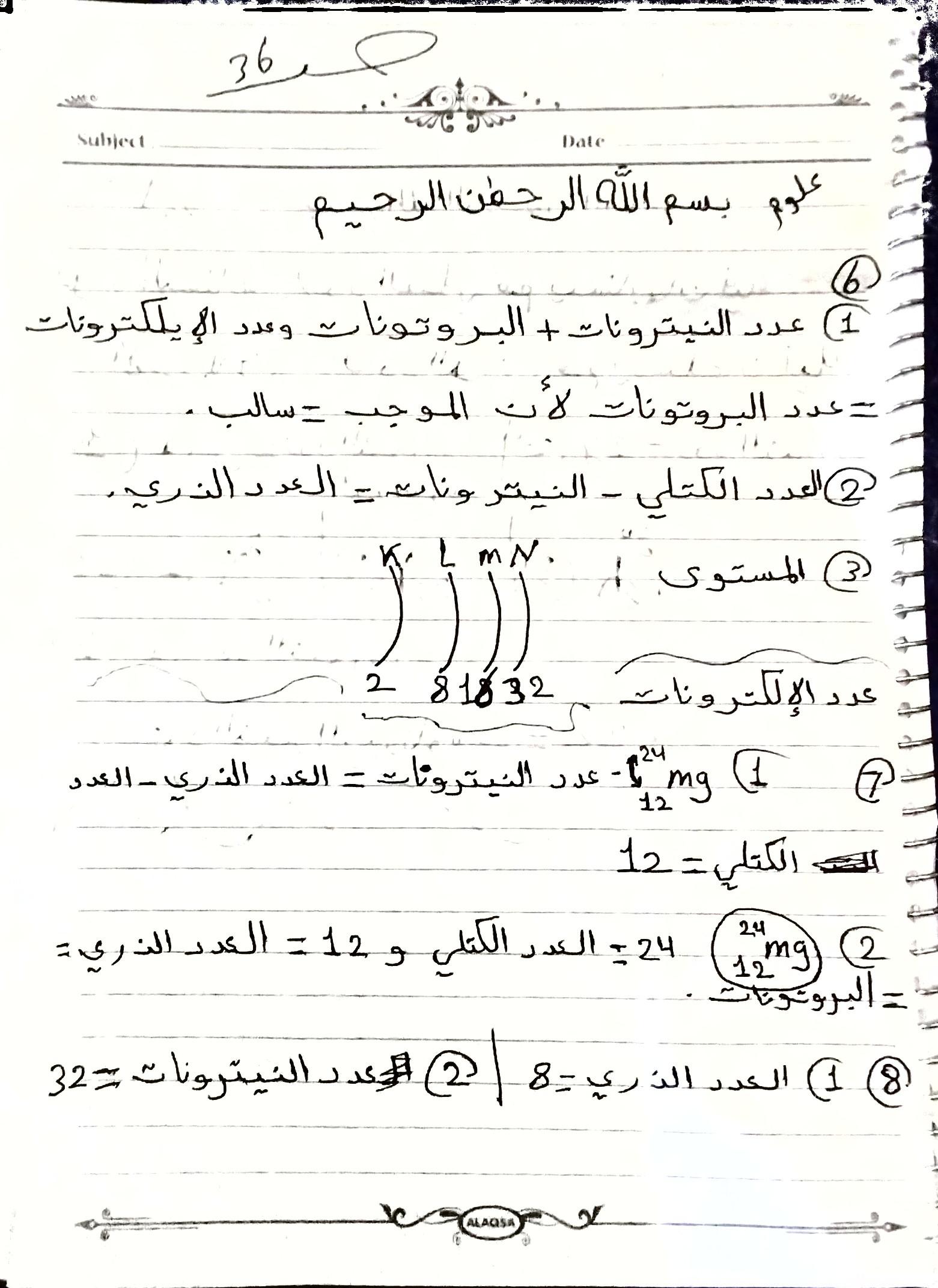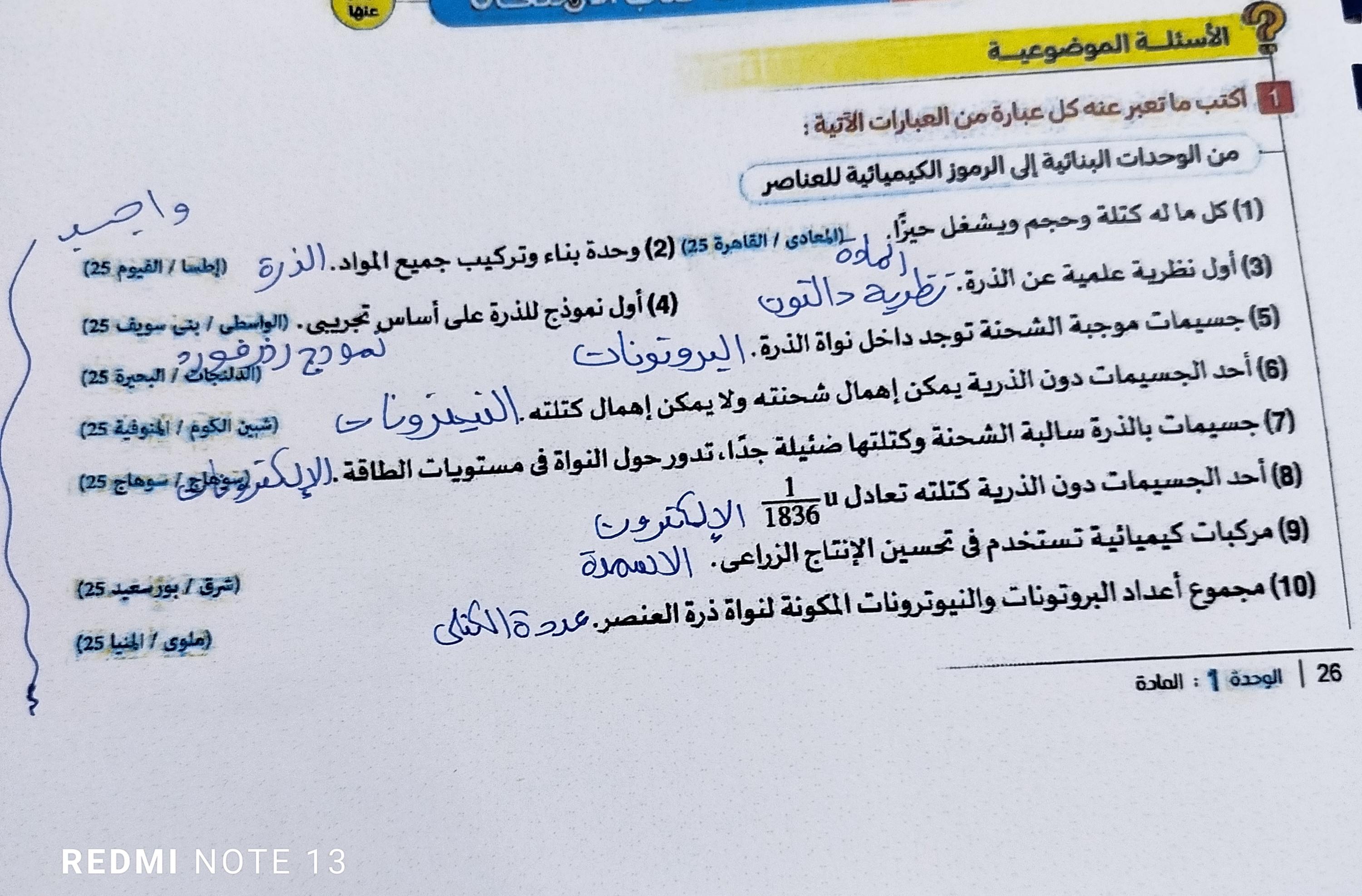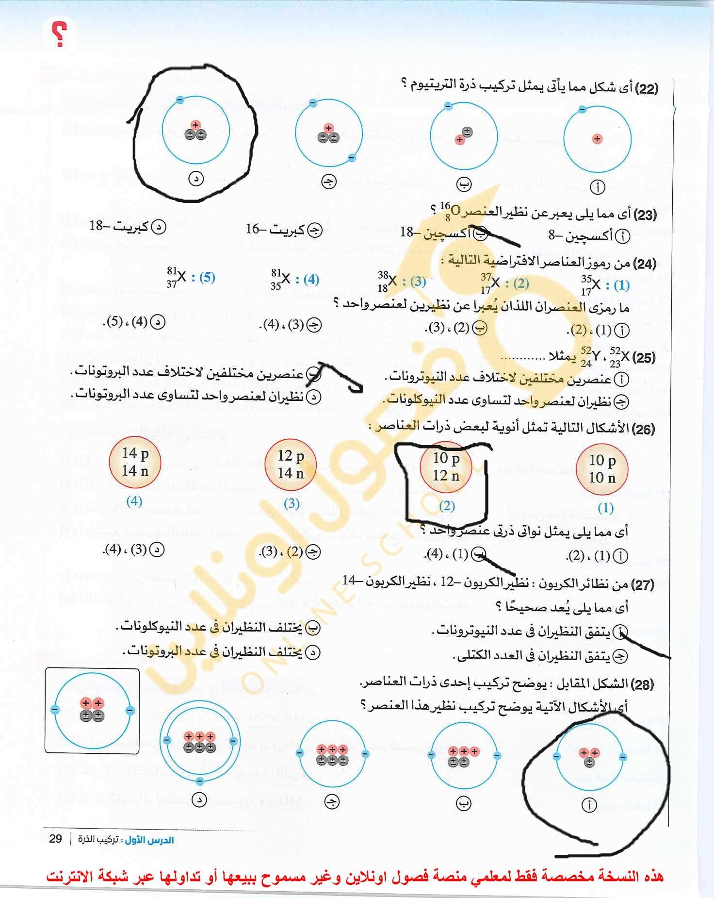الواجب حل صفحه من صفحه 26 الى34 الاسئله على بنيه الذره فقط