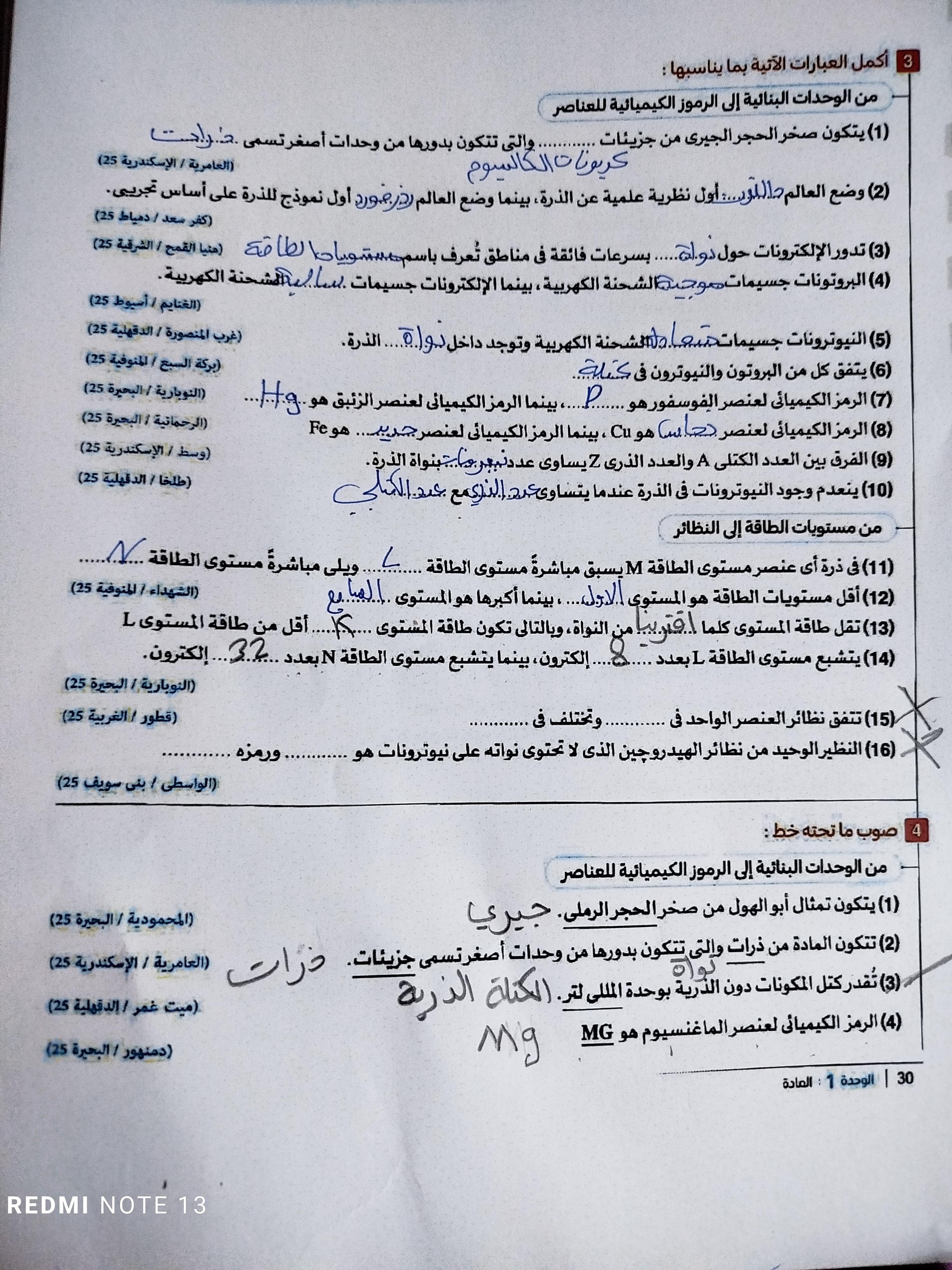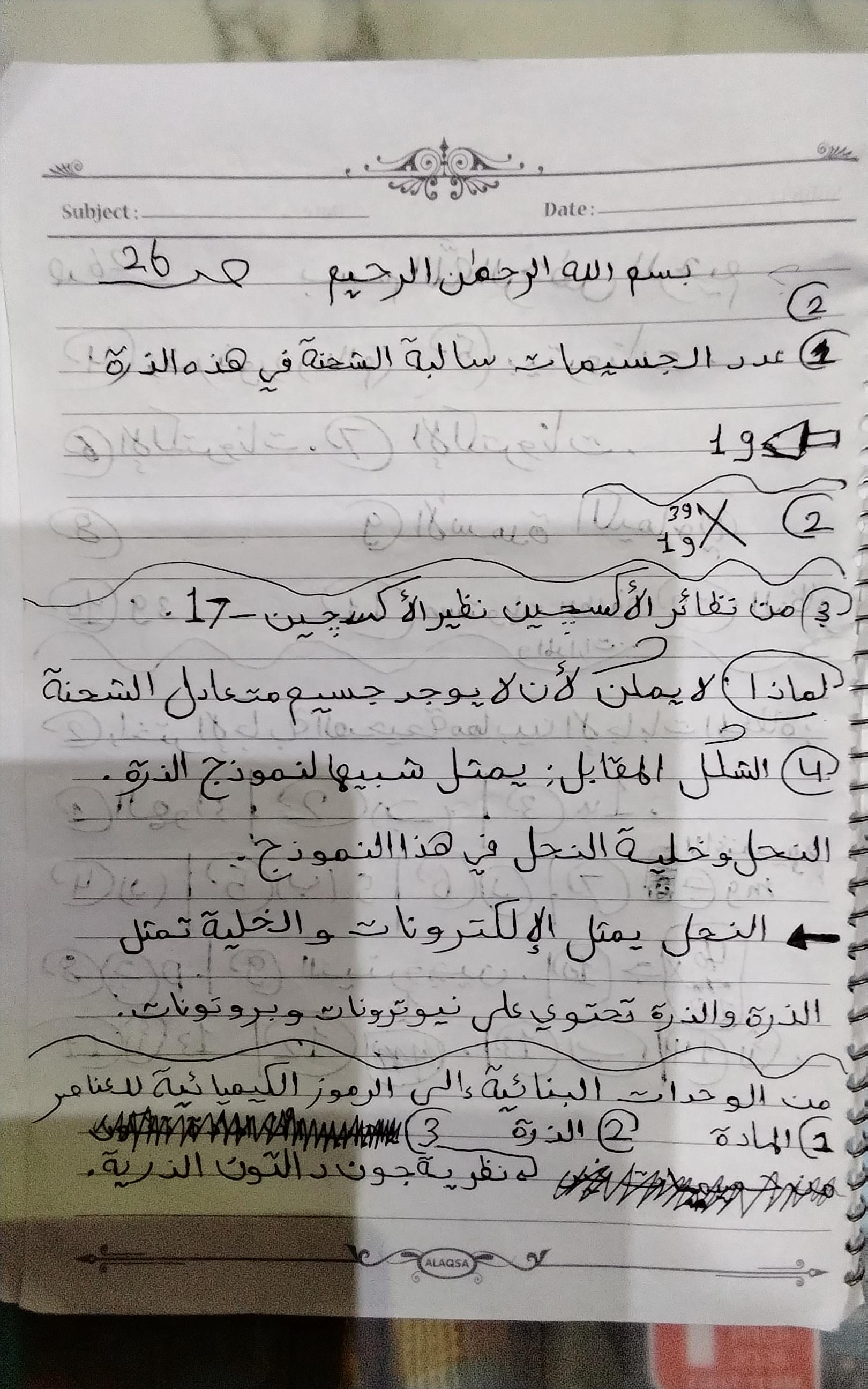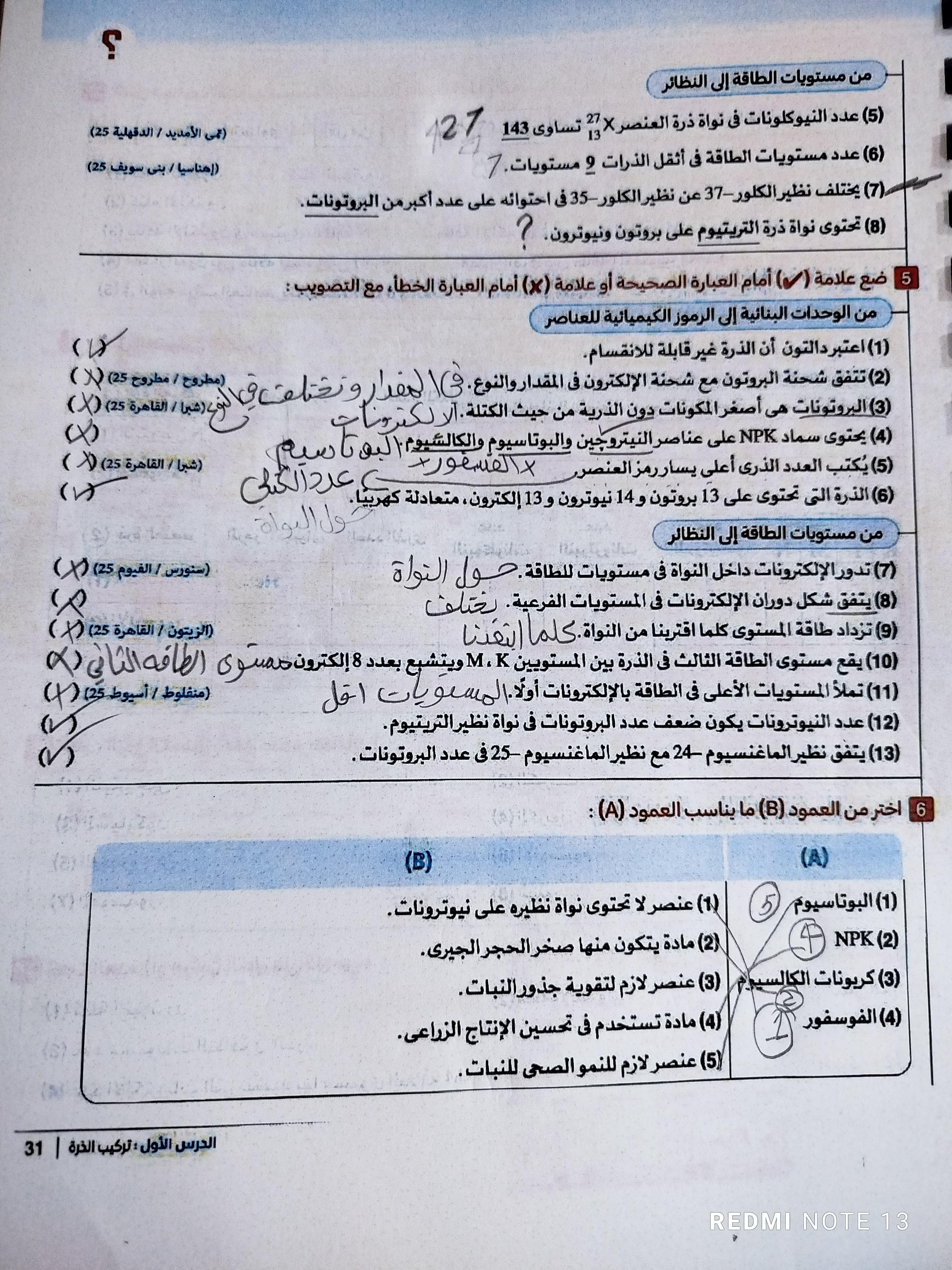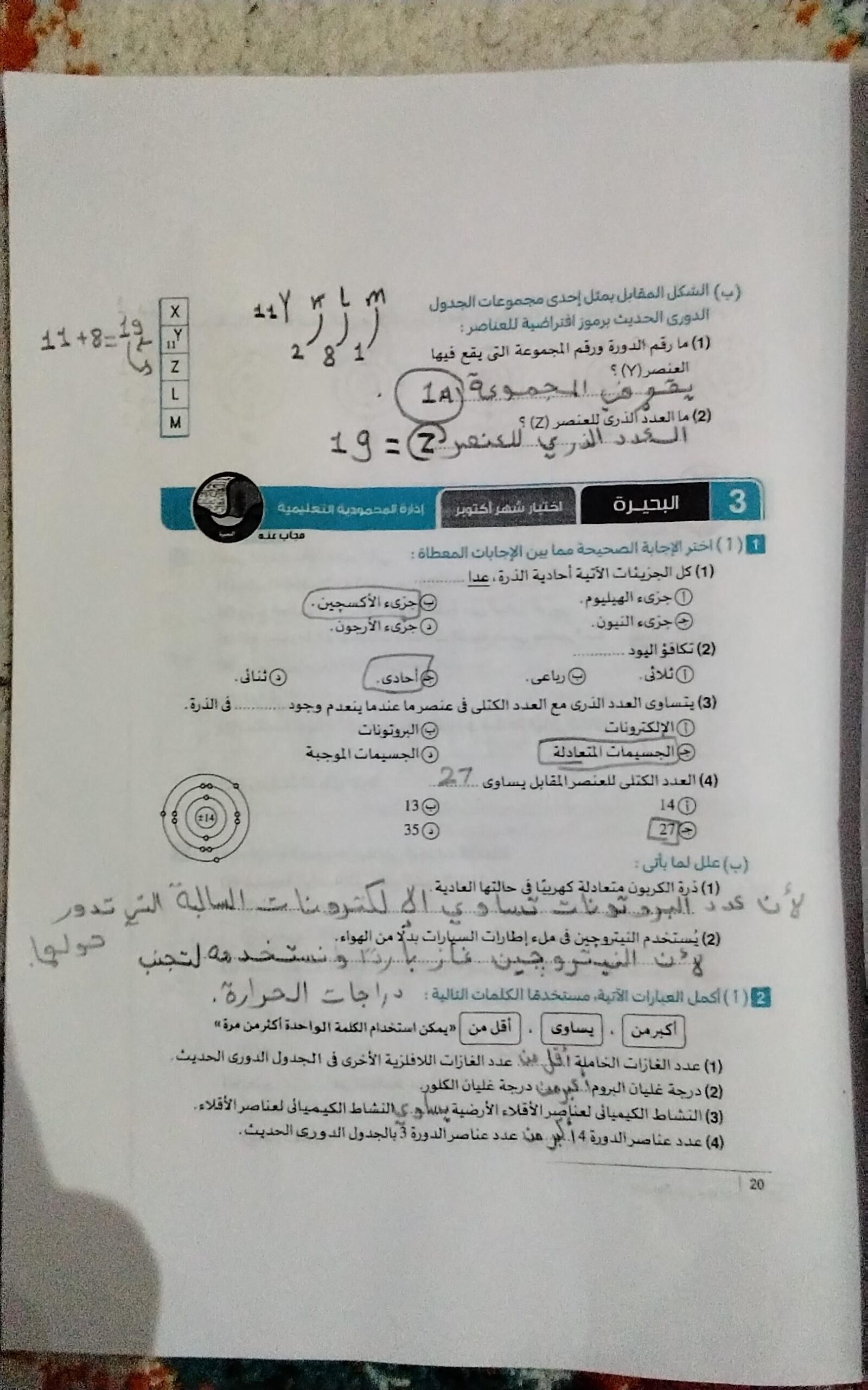 الواجب حل صفحه من صفحه 26 الى34 الاسئله على بنيه الذره فقط