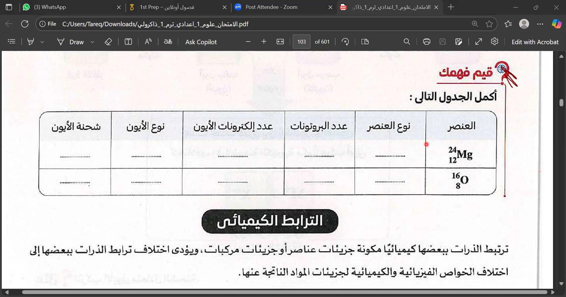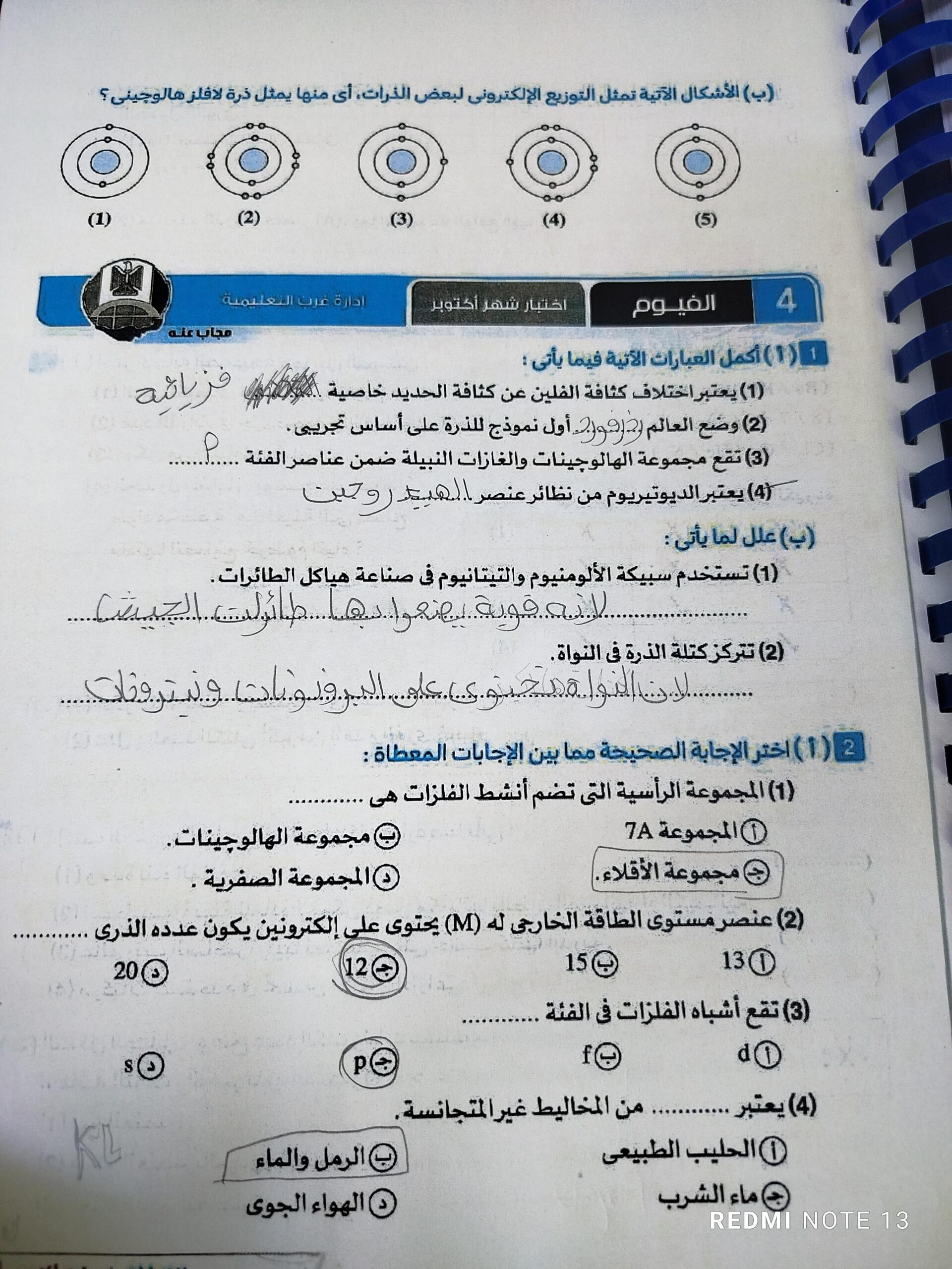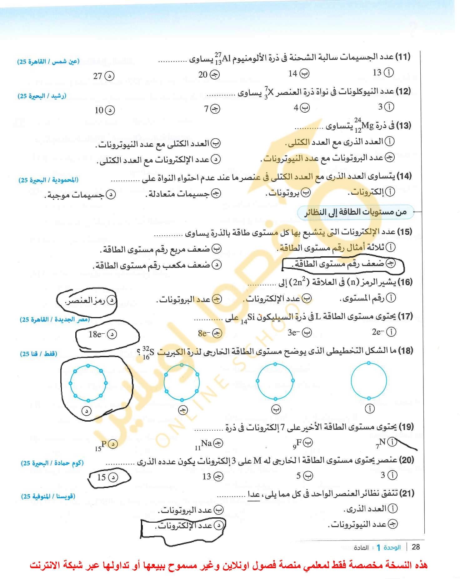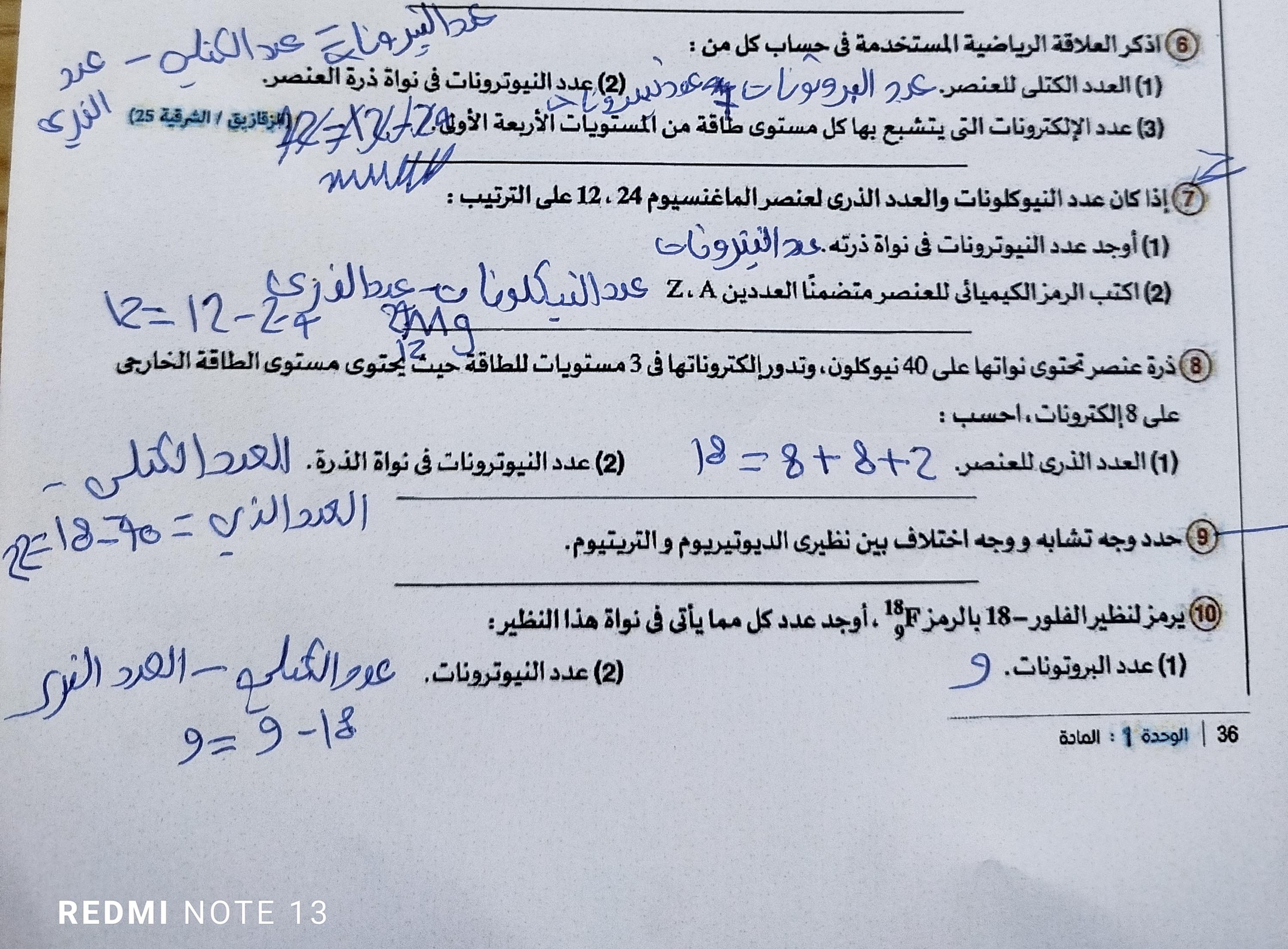 الواجب حل صفحه من صفحه 26 الى34 الاسئله على بنيه الذره فقط