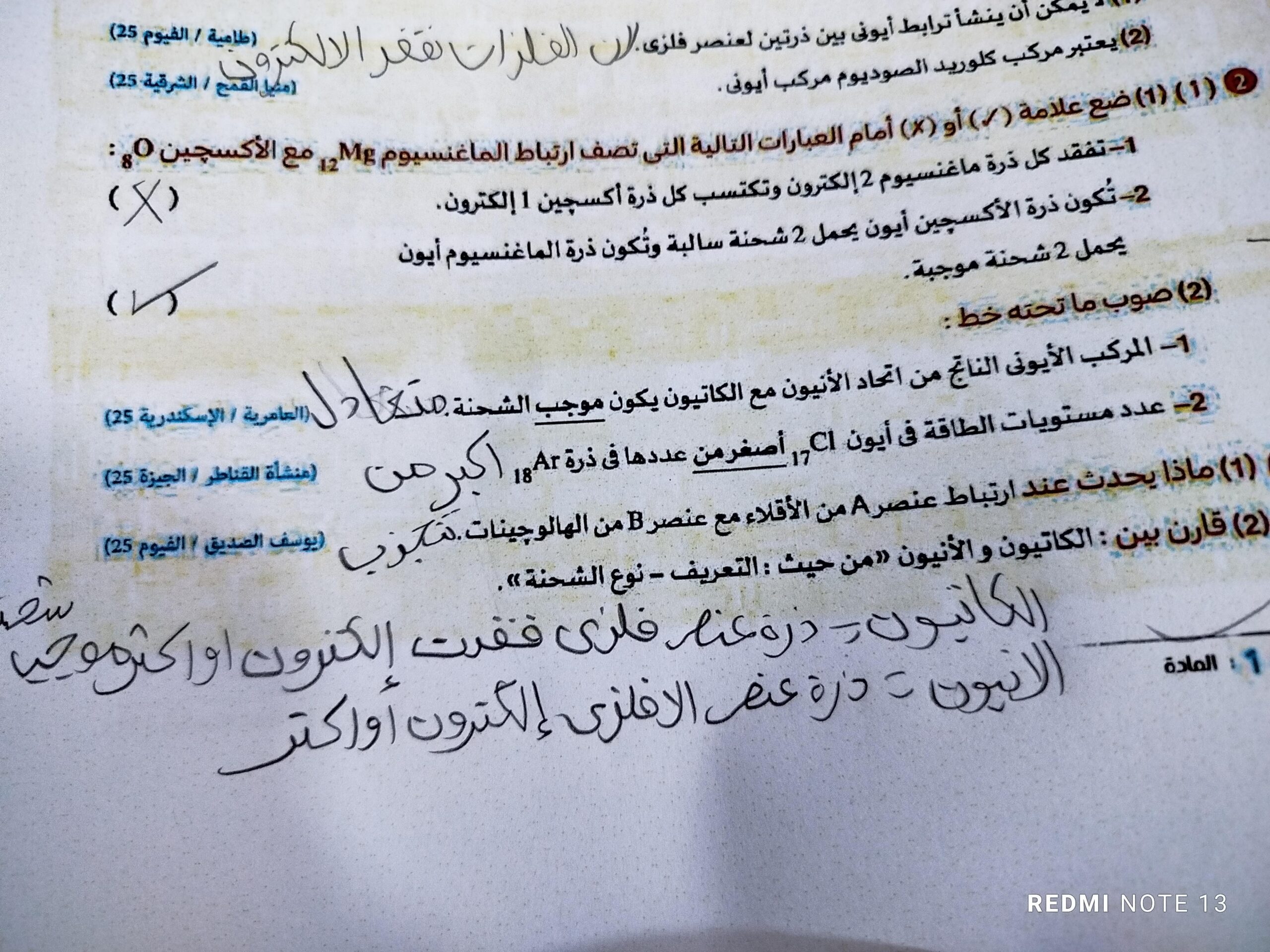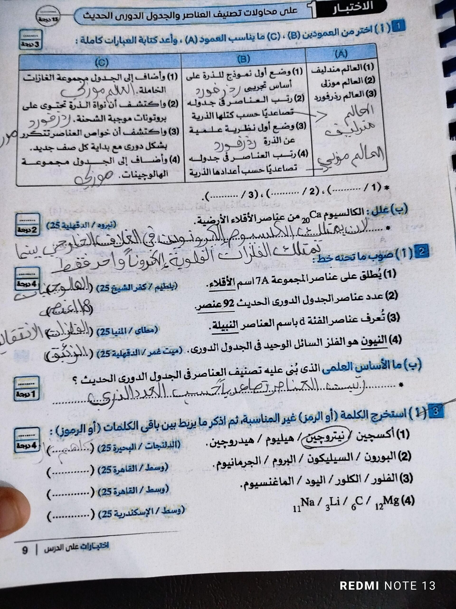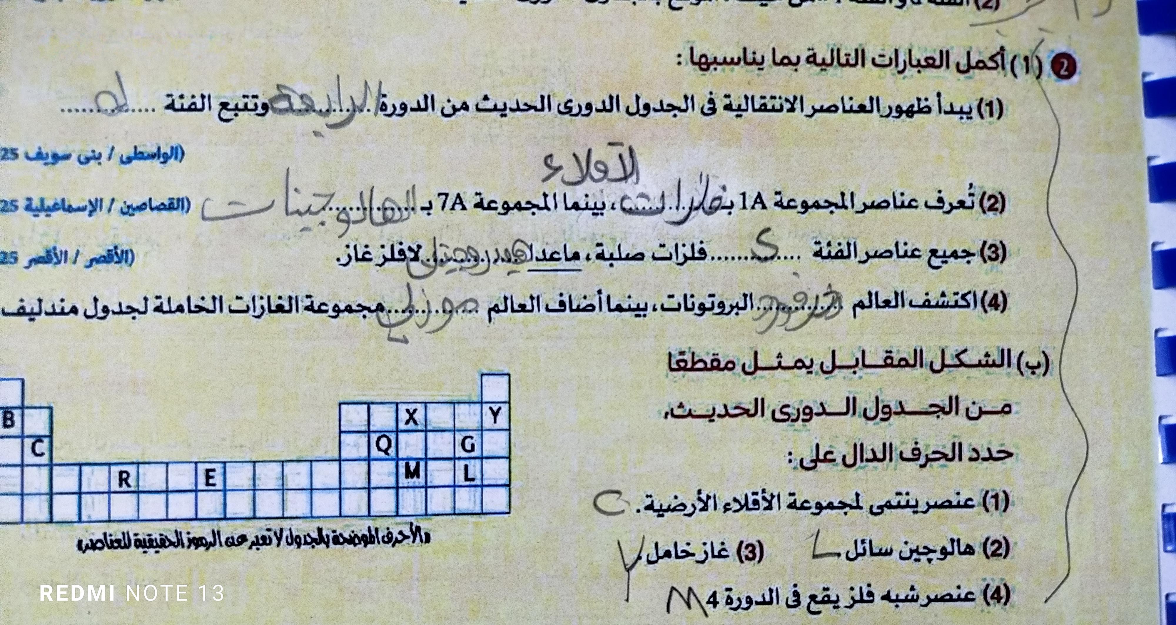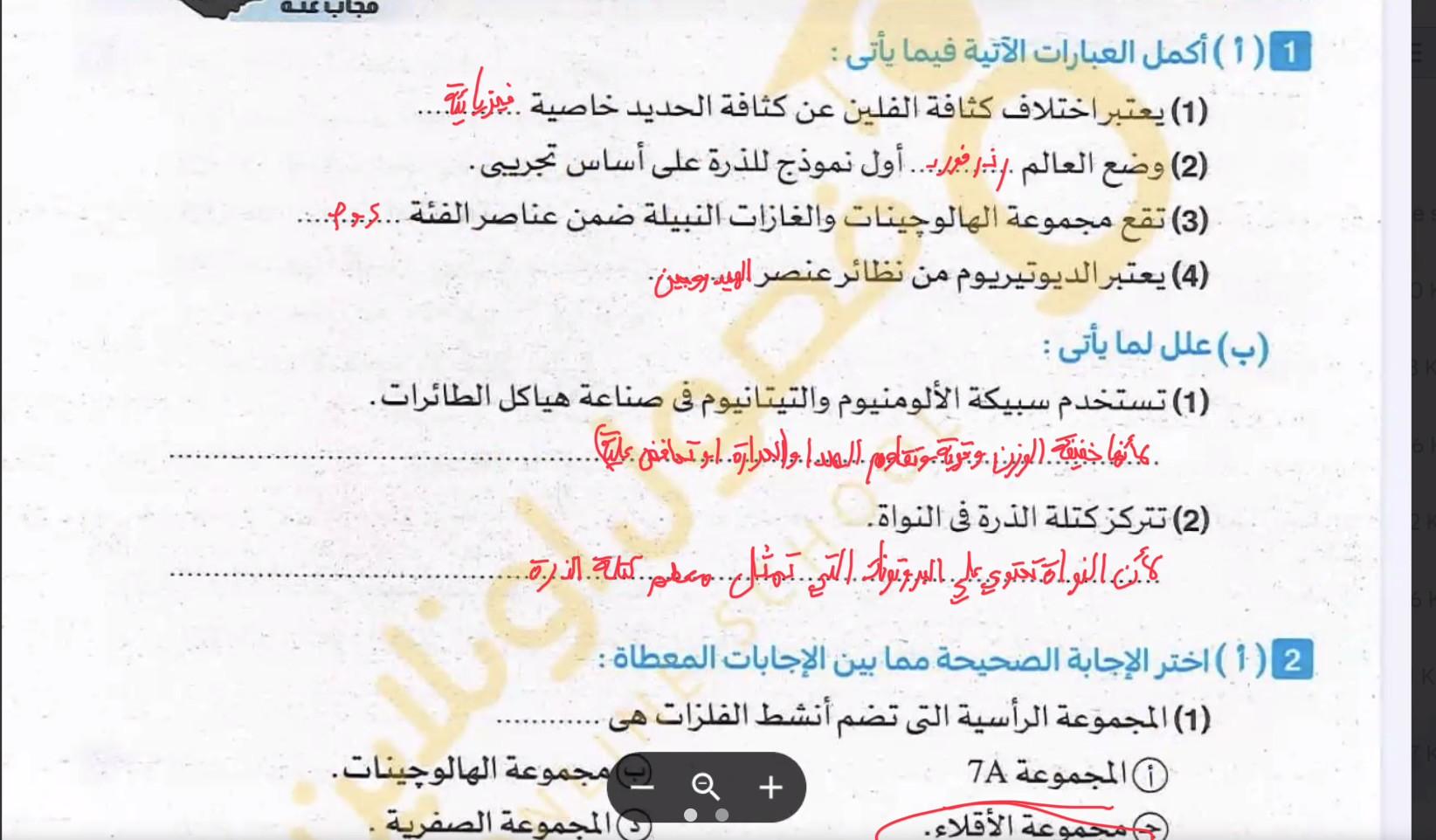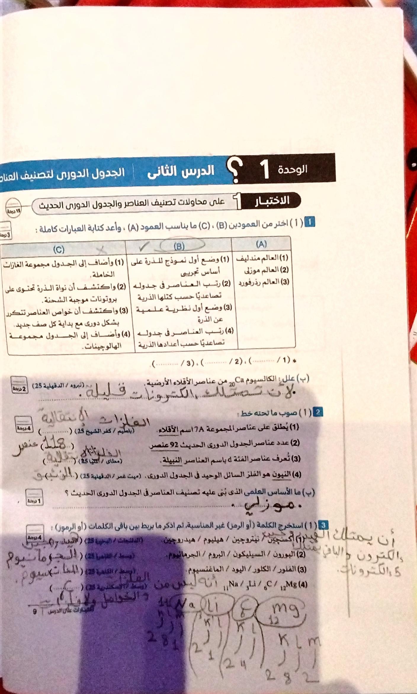 تم مراجعه الدرس الاول و تصنيف العناصر
