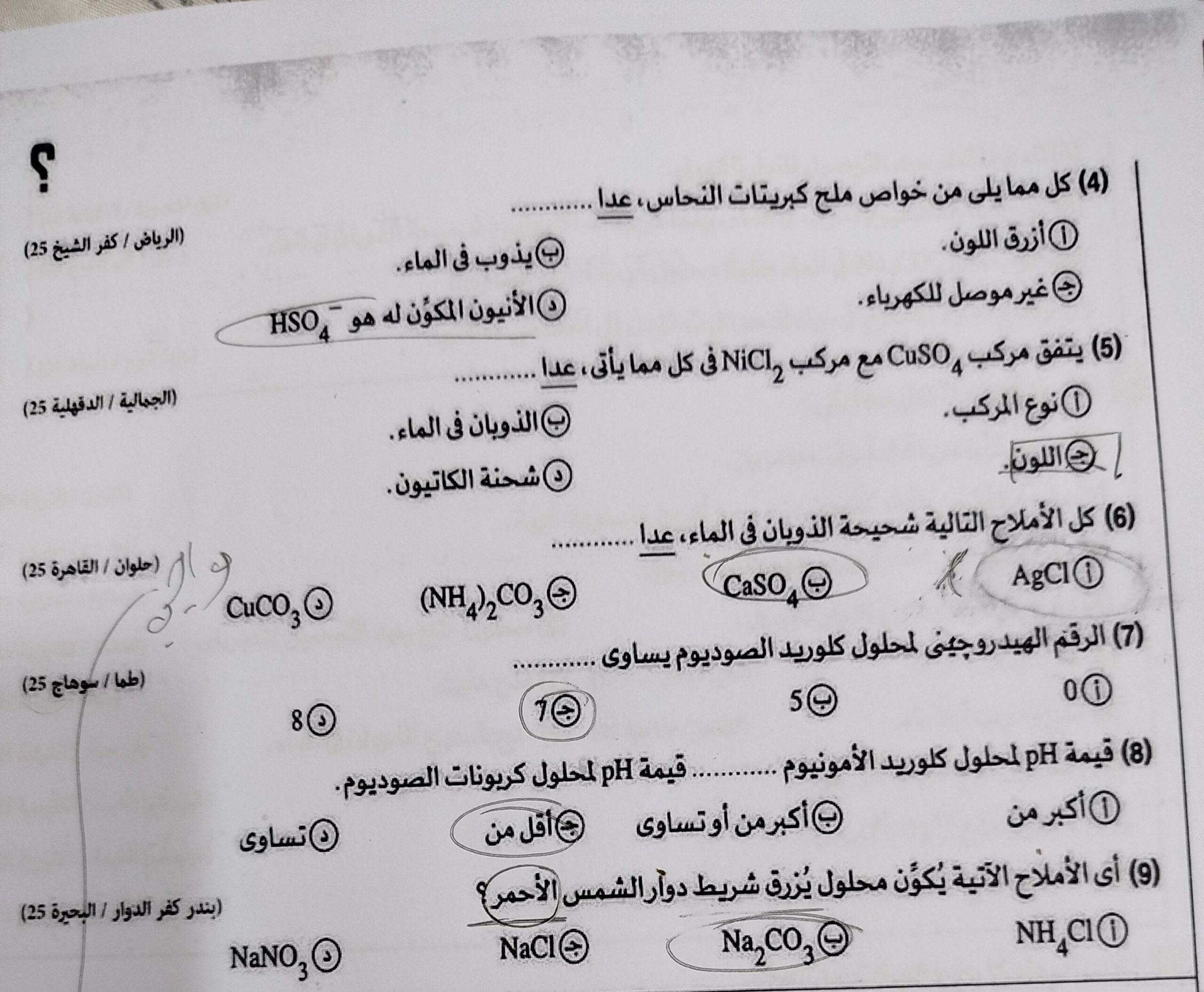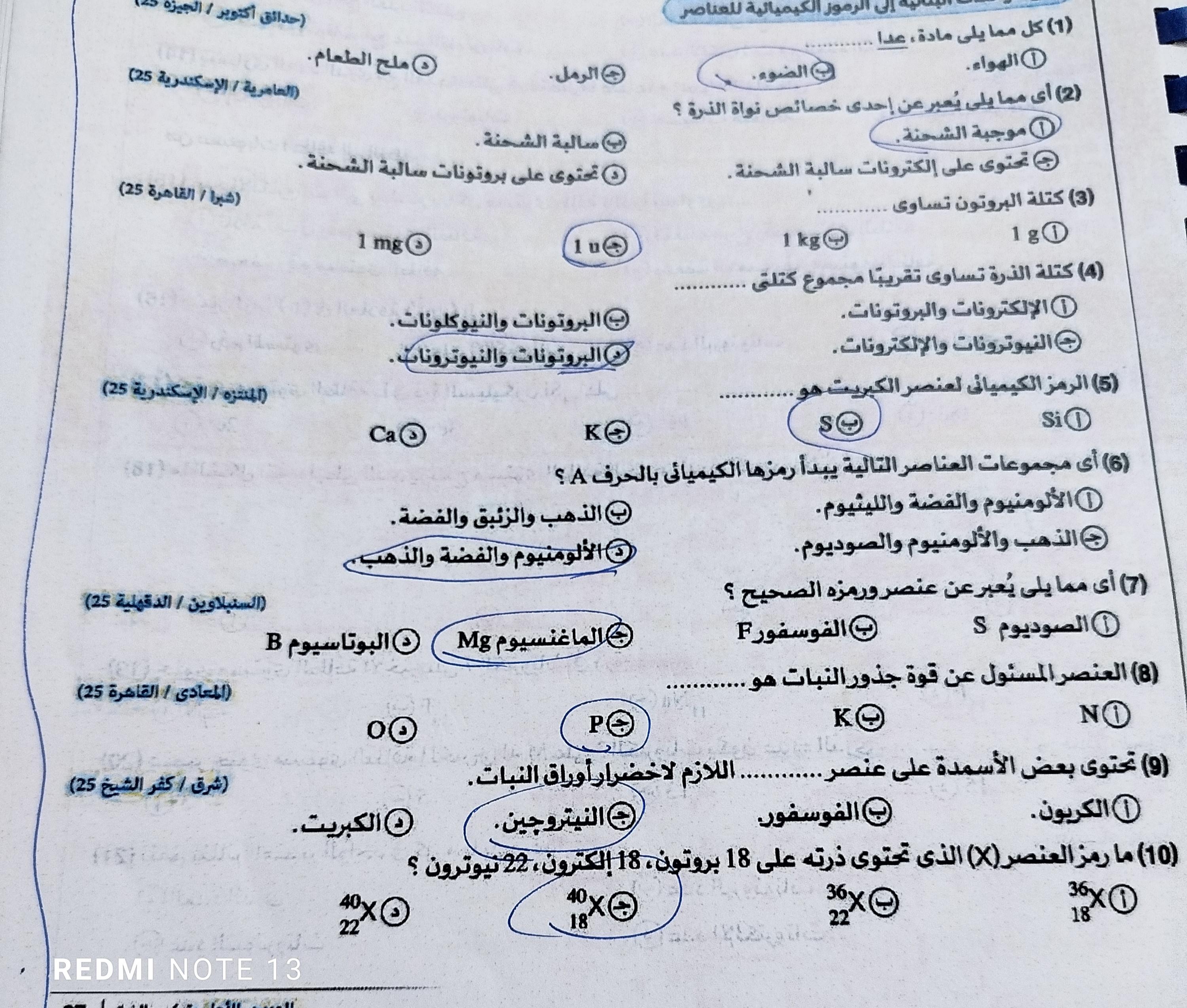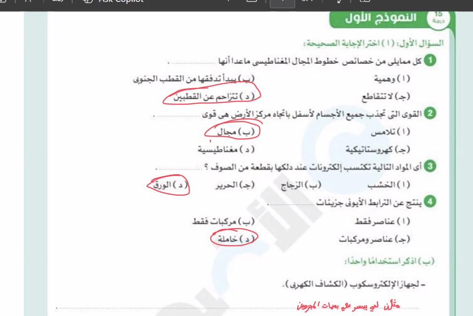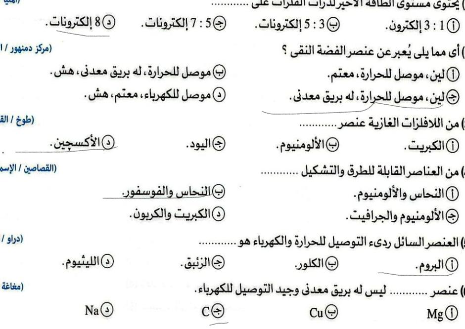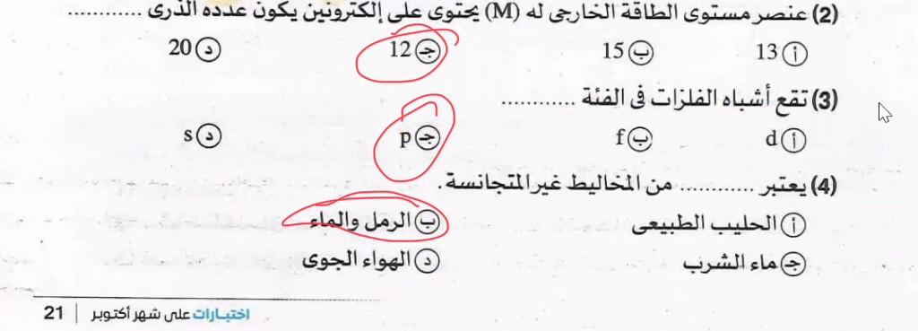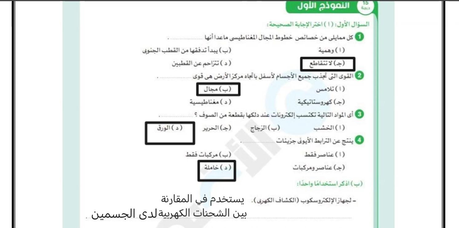 إختبار مادة العلوم عبدالله أحمد 🥇