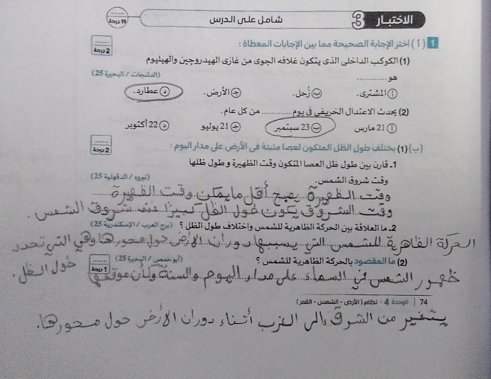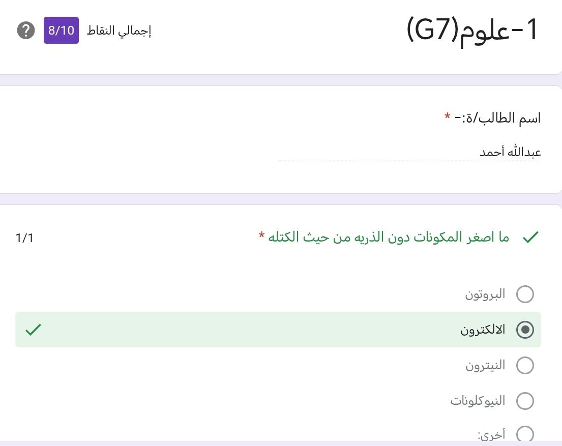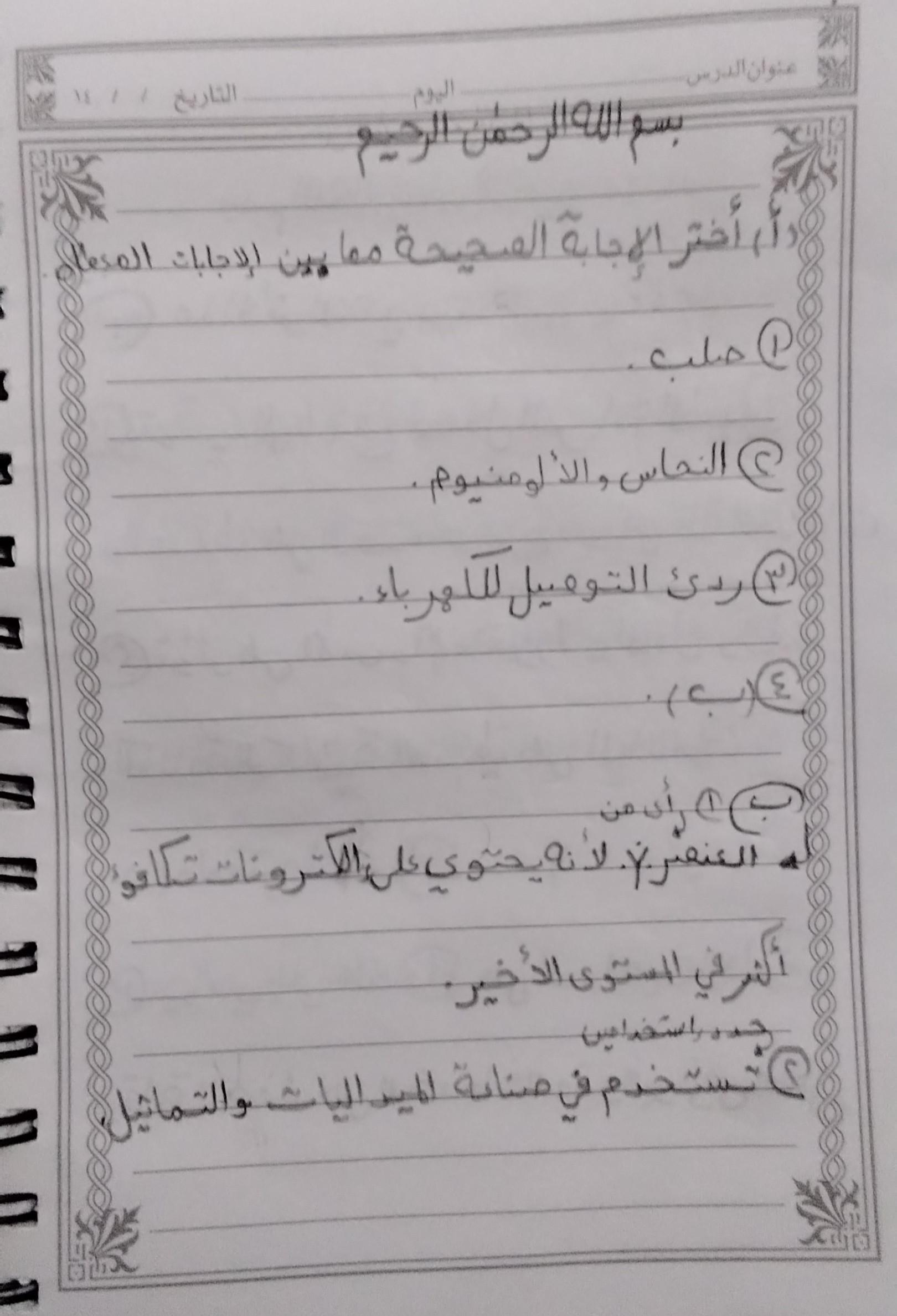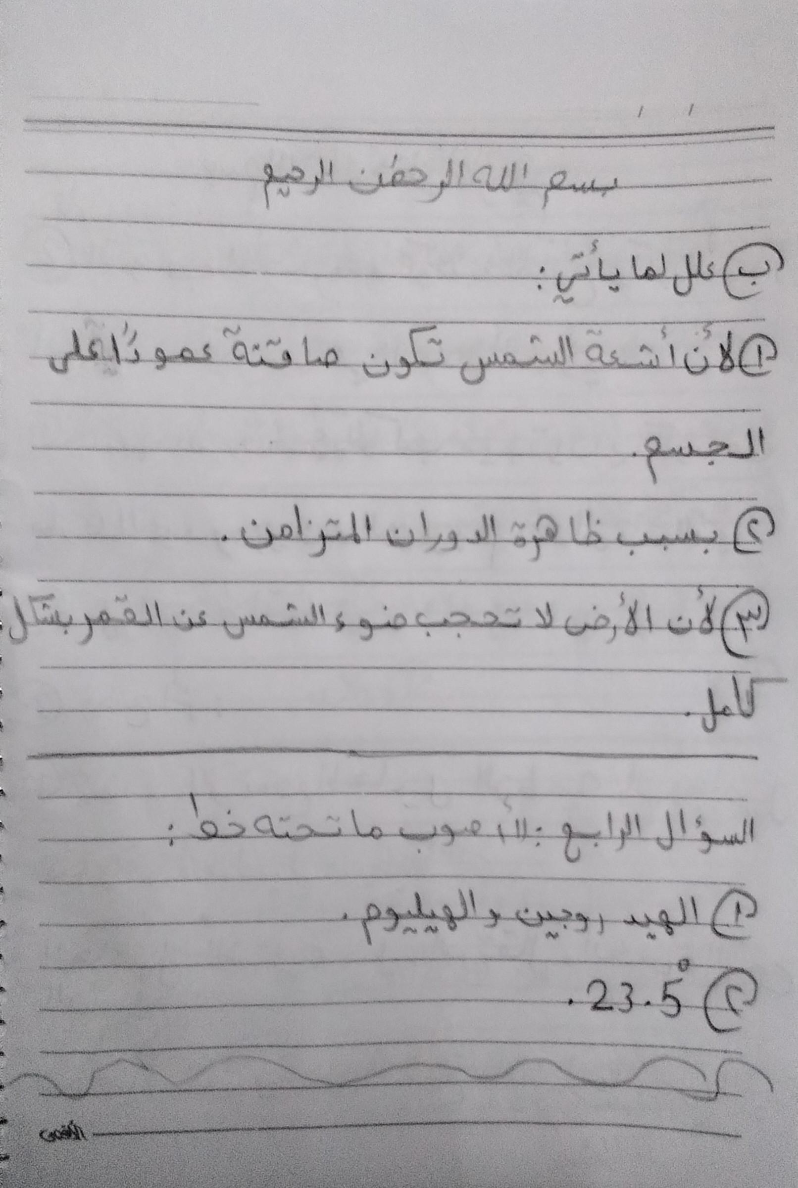 إختبار العلوم عبدالله أحمد أنا أسف على التأخير ياميس