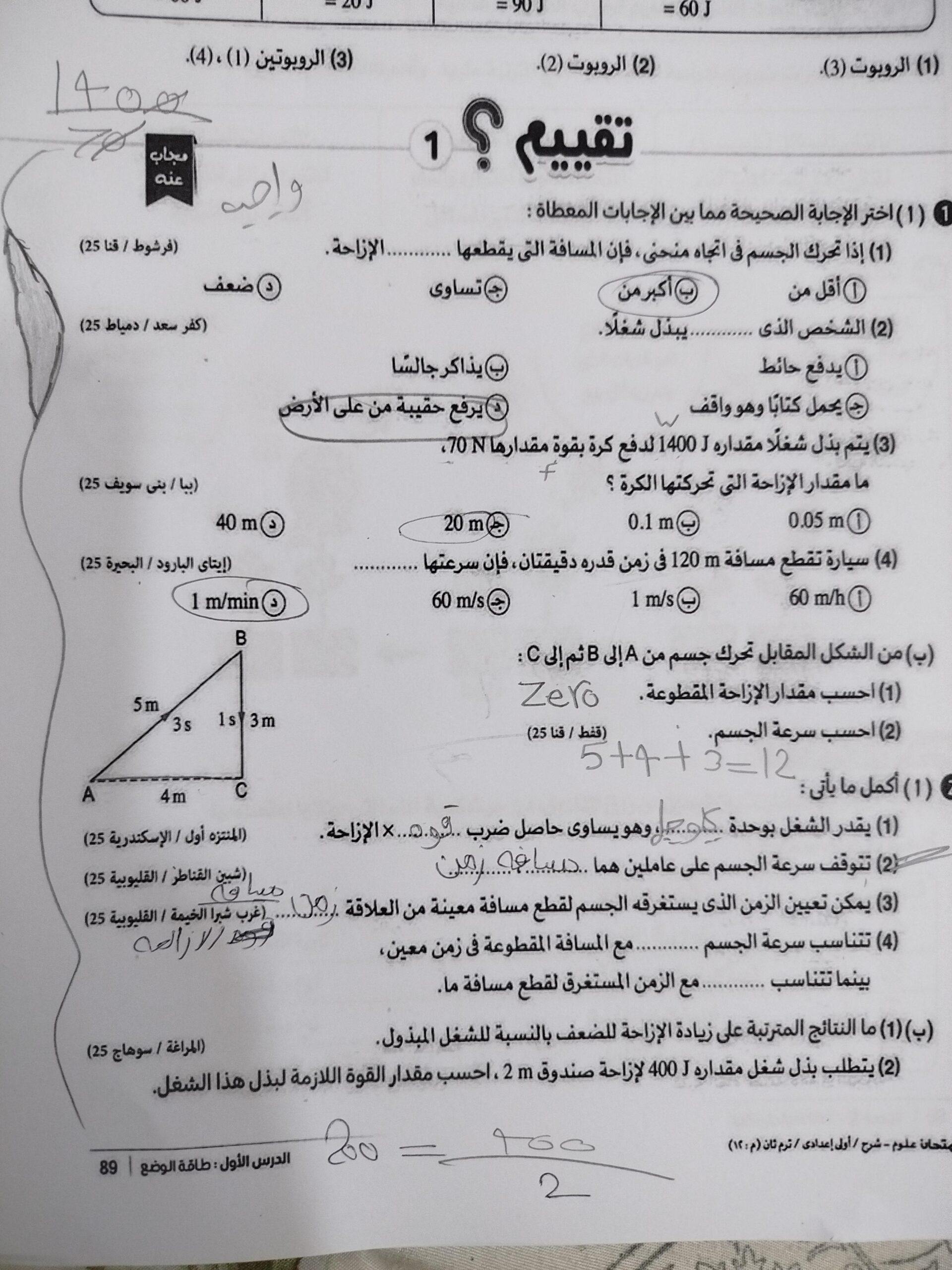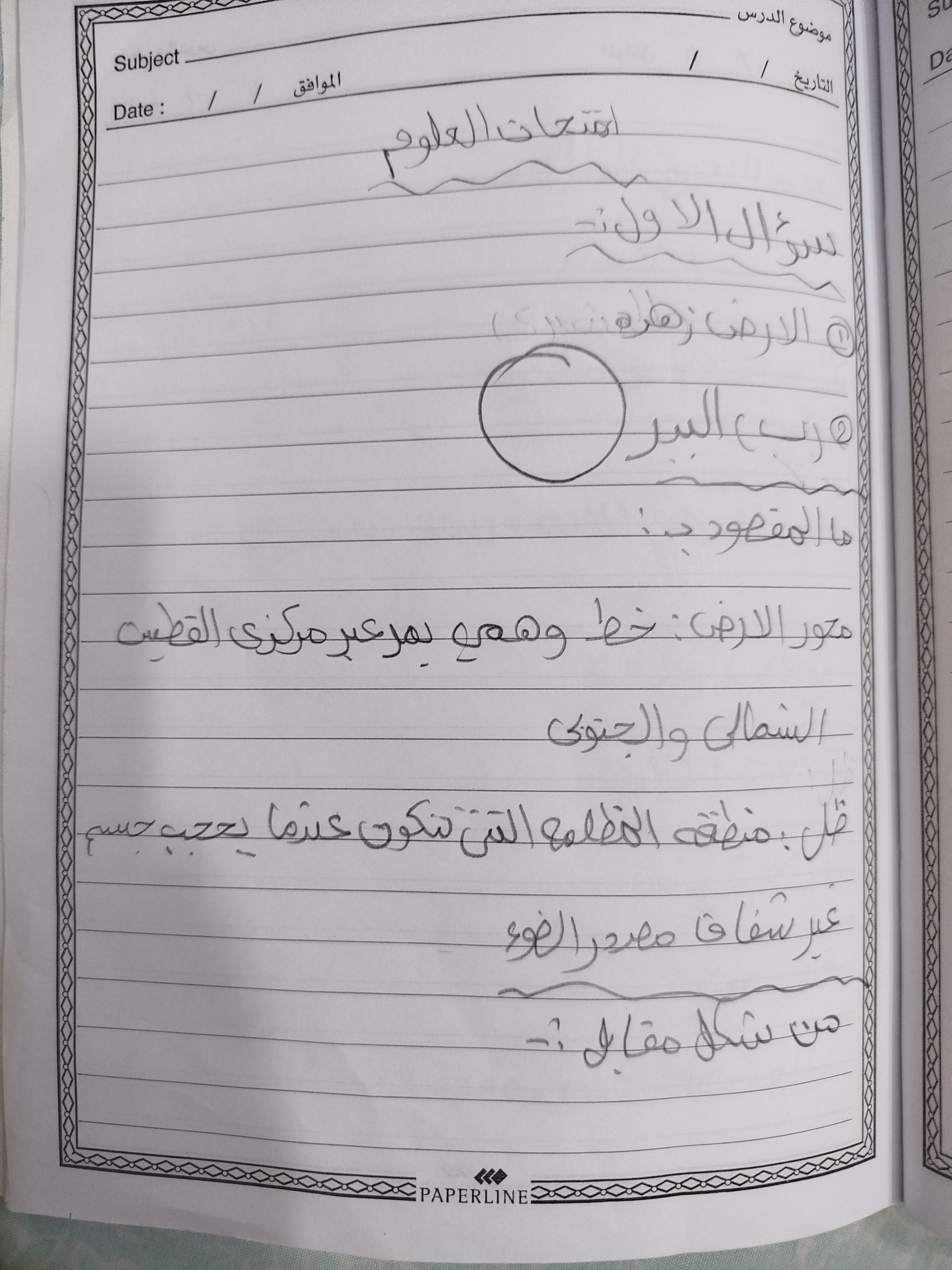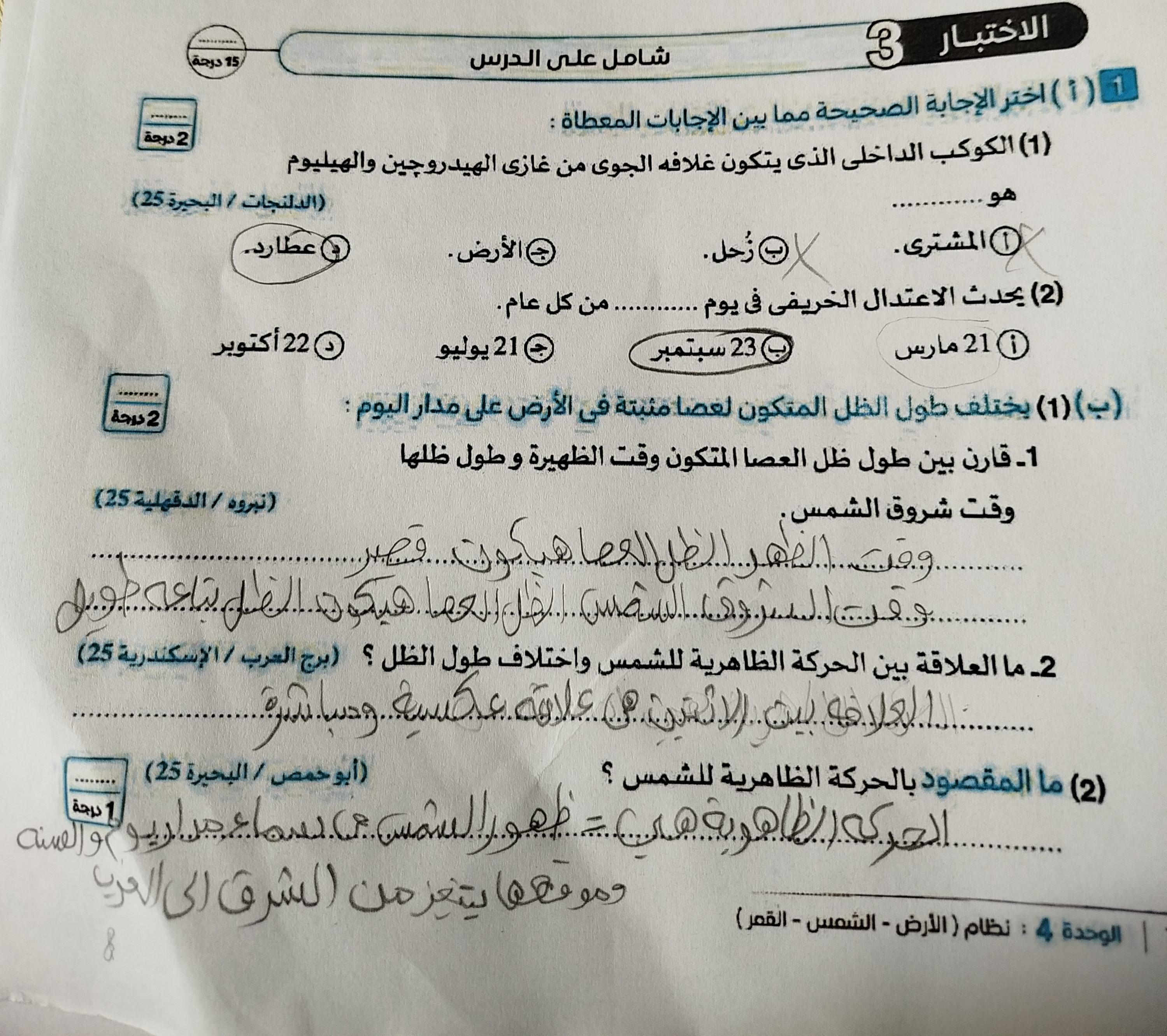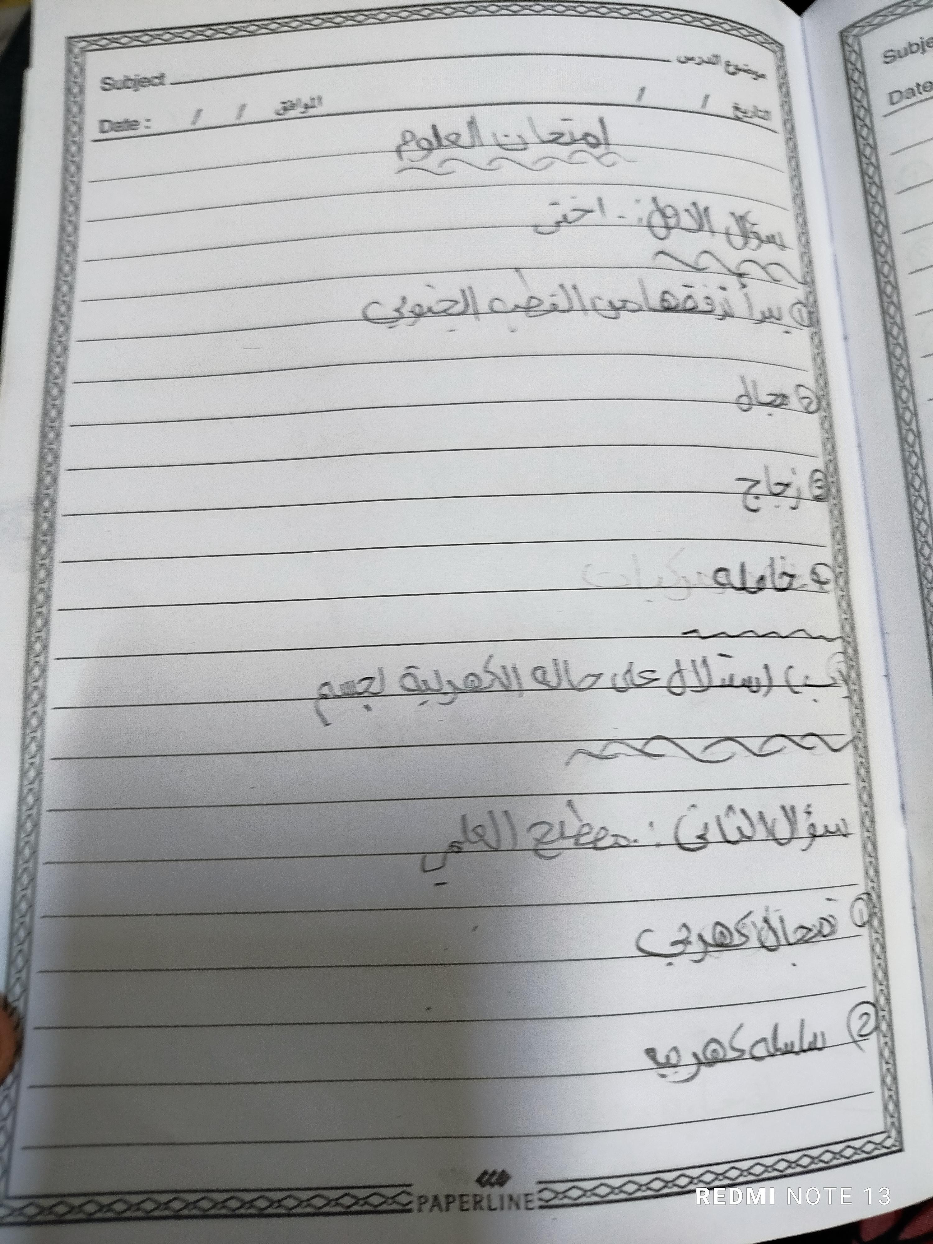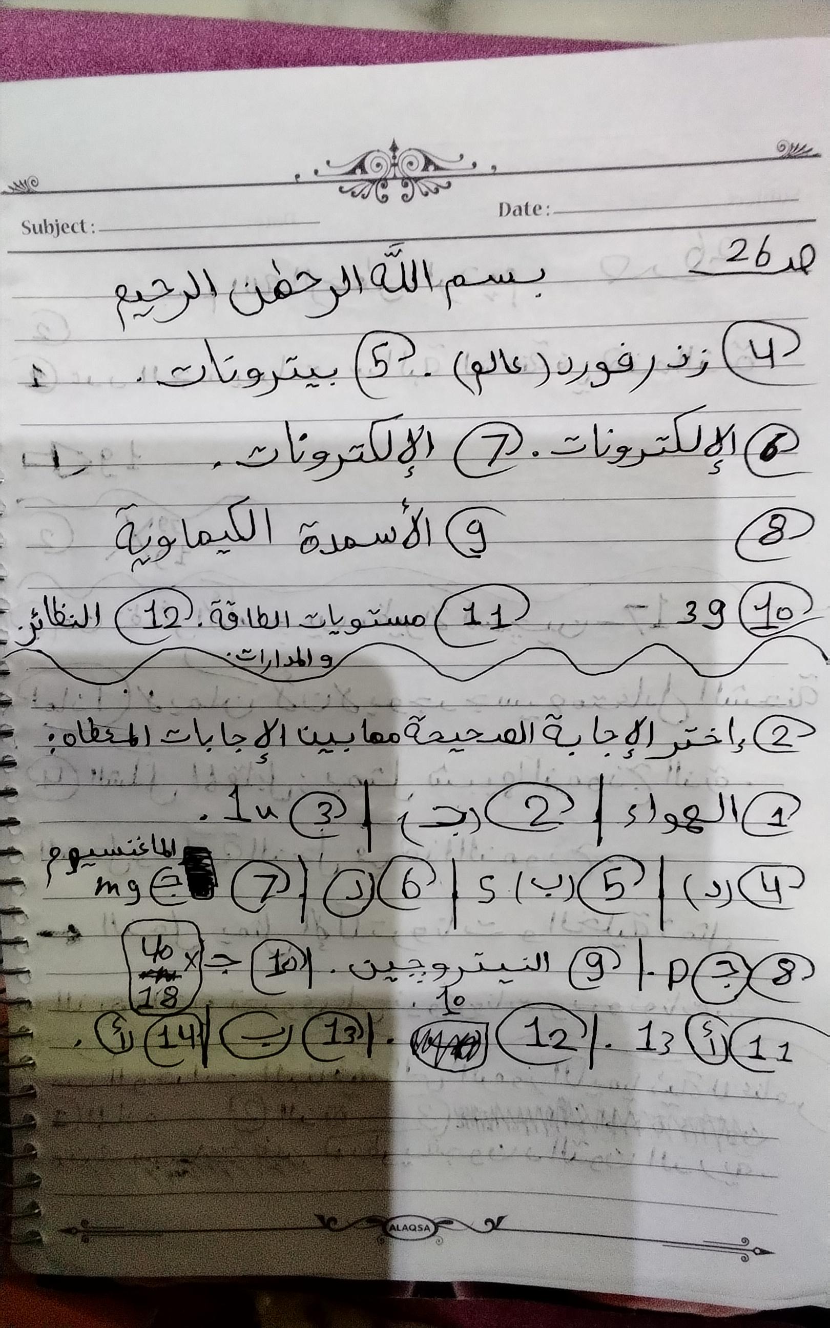 إختبار العلوم عبدالله أحمد أنا أسف على التأخير ياميس