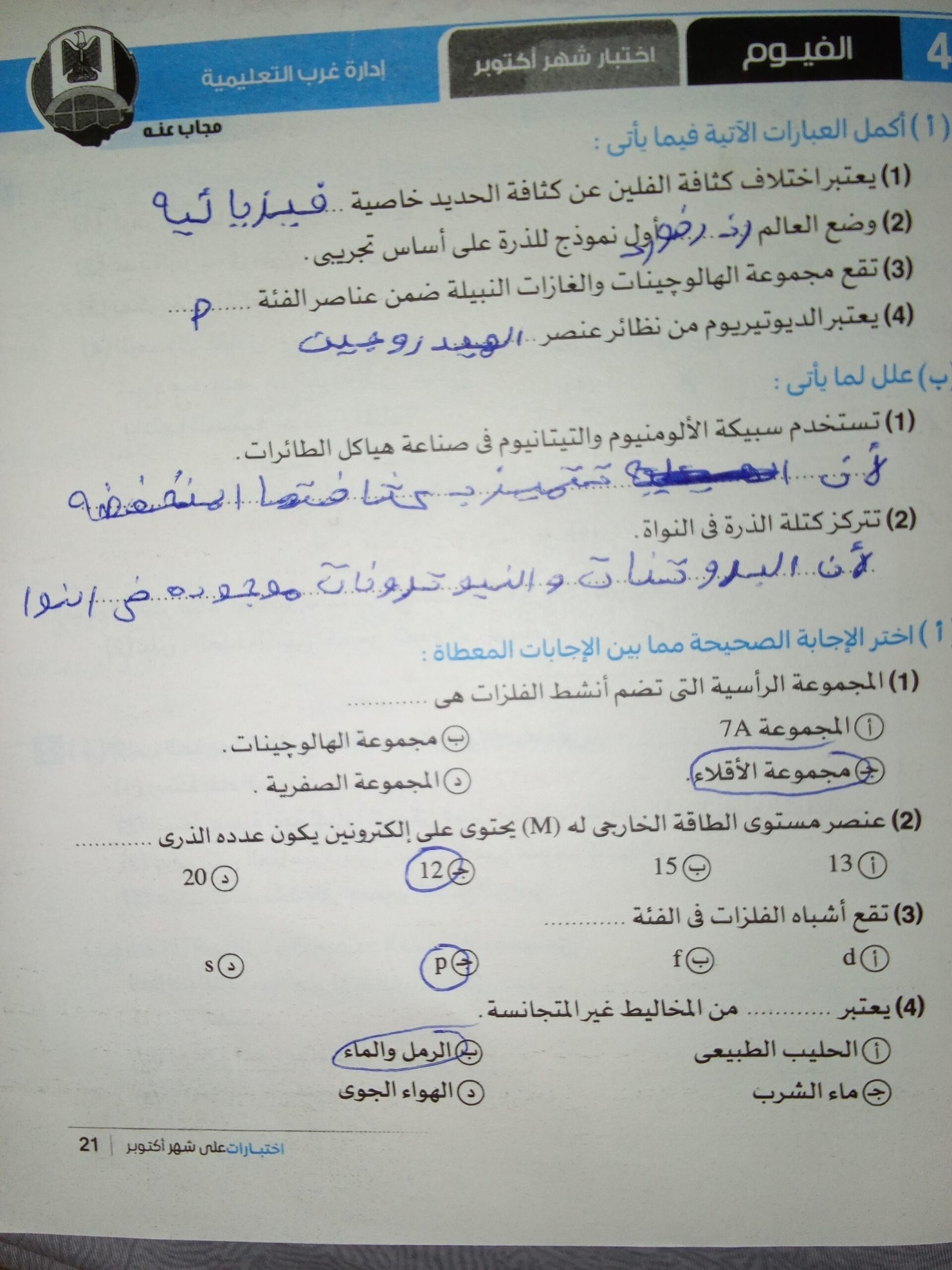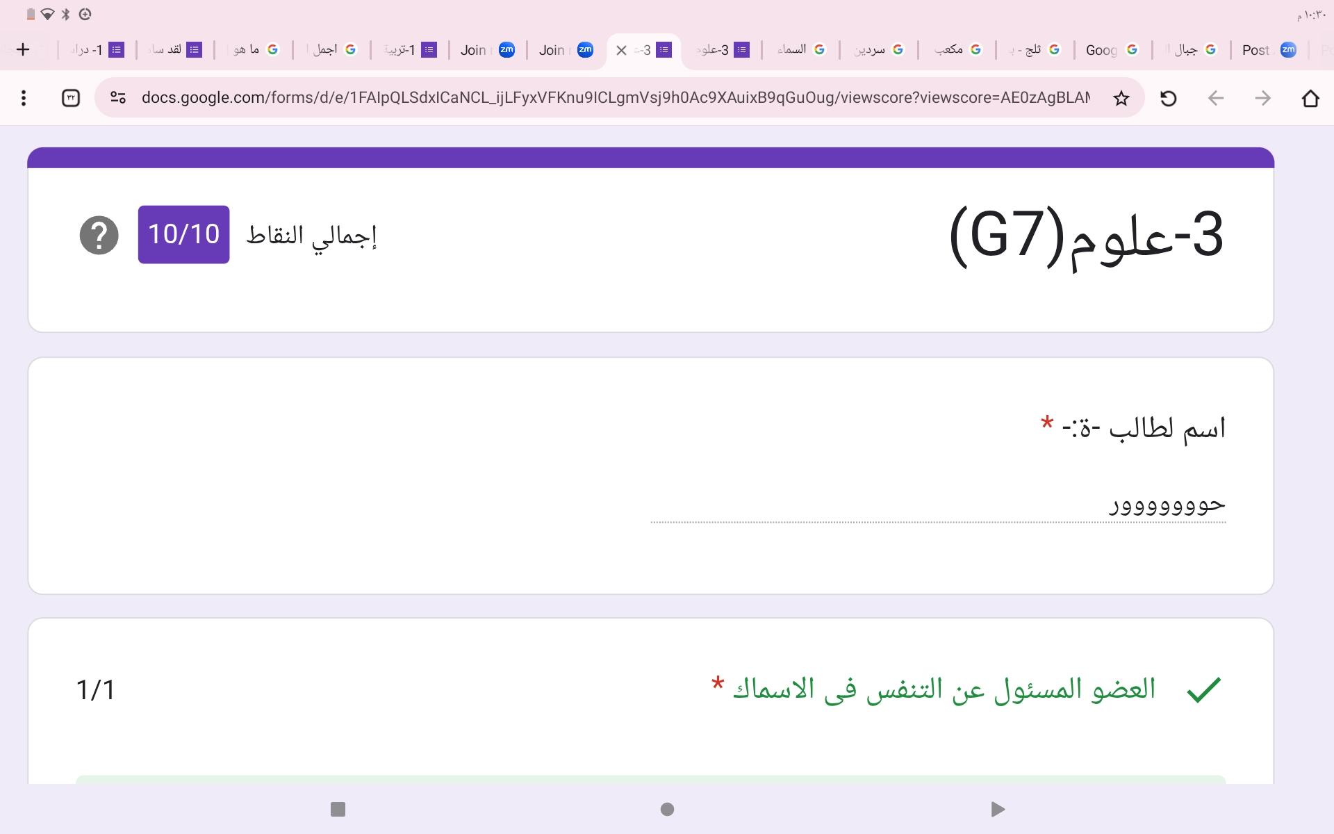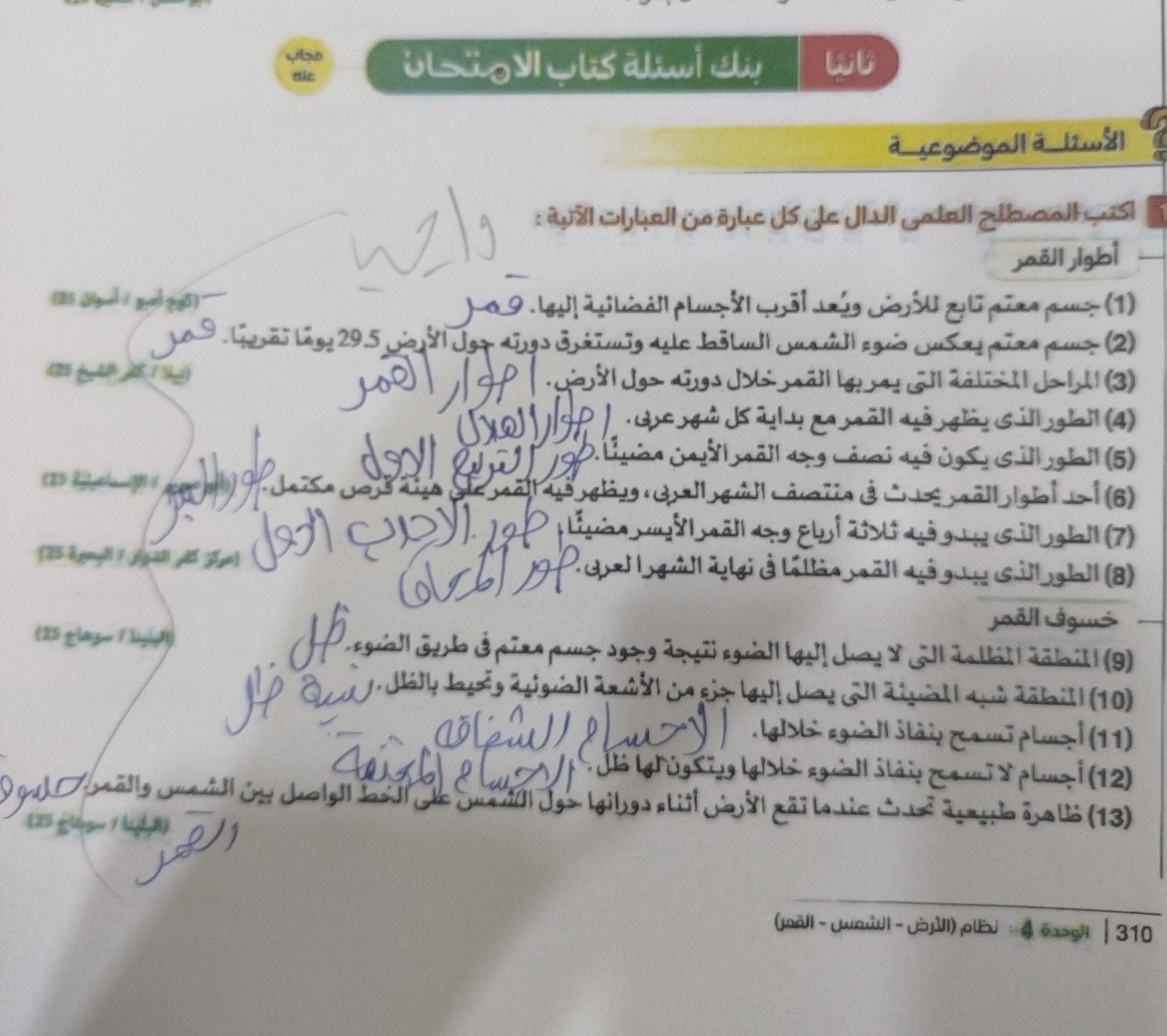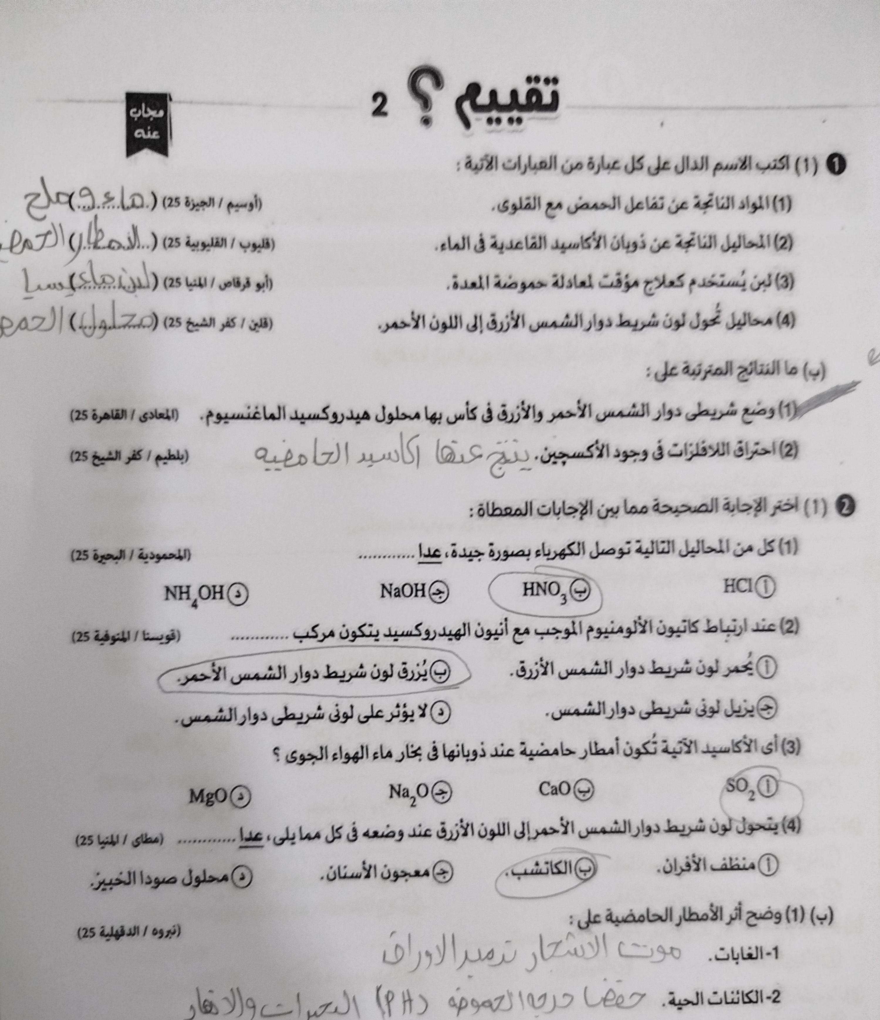 إختبار العلوم عبدالله أحمد أنا أسف على التأخير ياميس