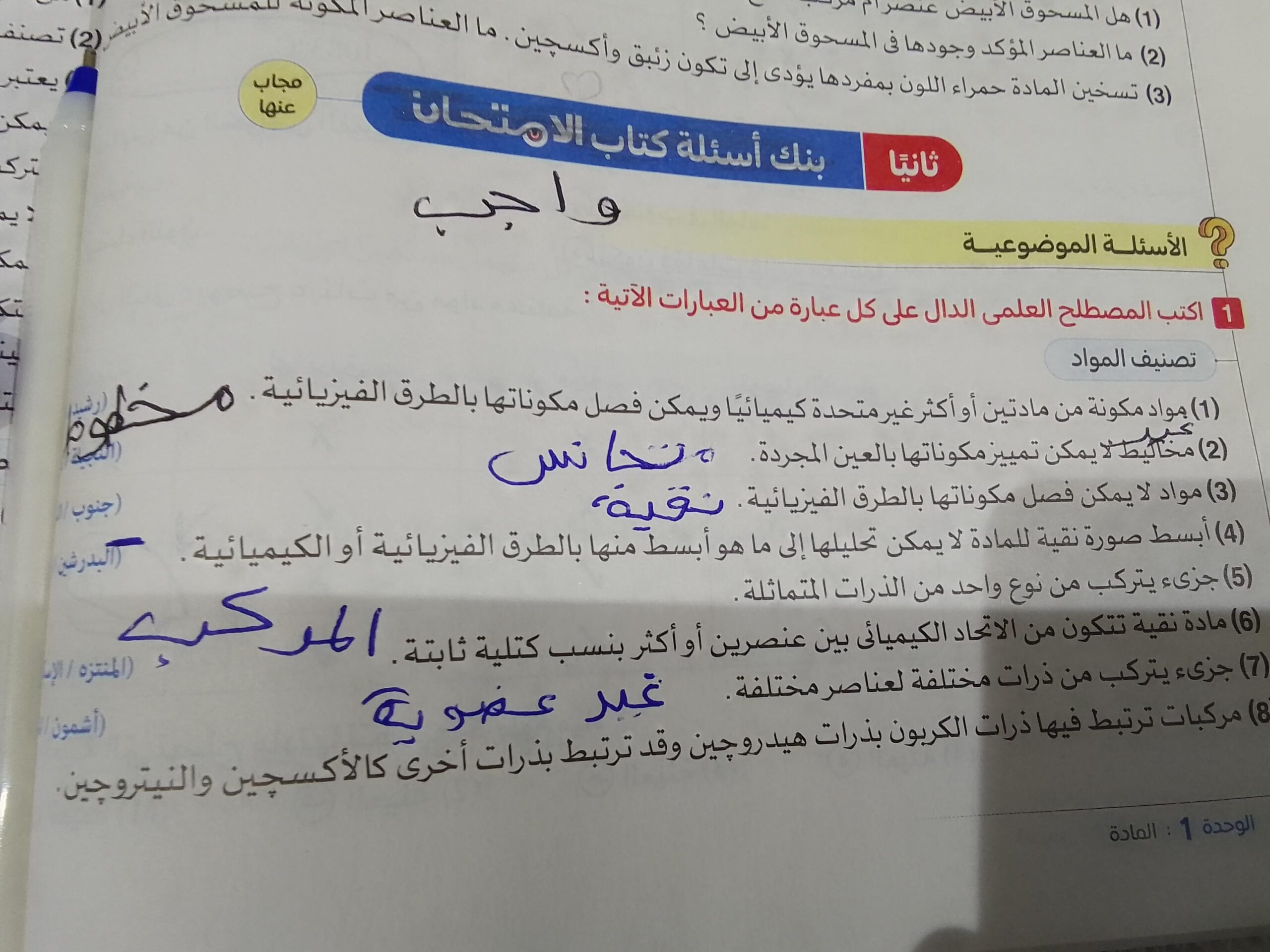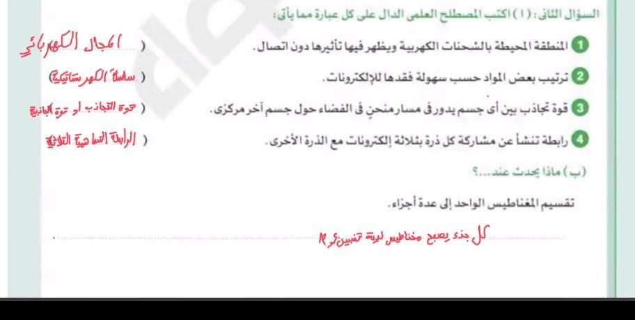 الواجب حل اسئله اكتب المصطلح العلمى و اكمل من الكتاب
