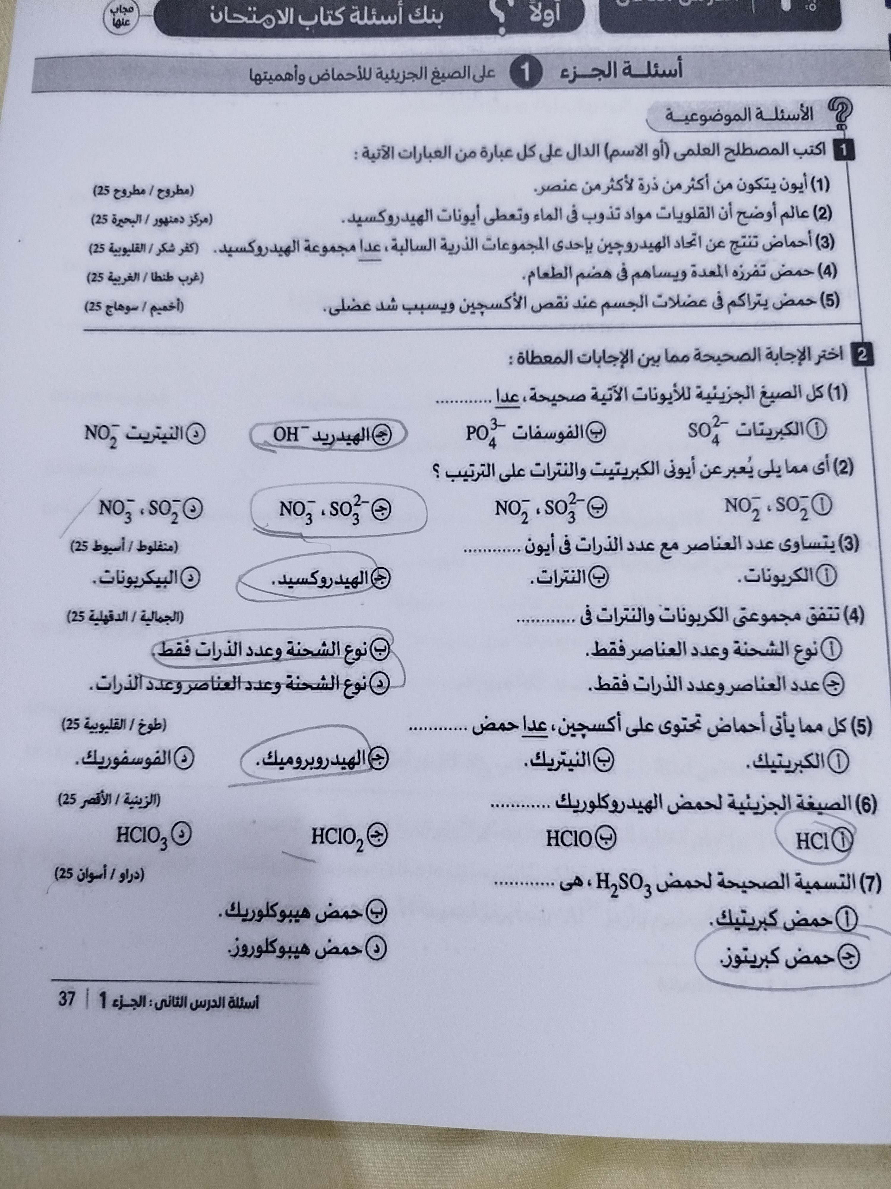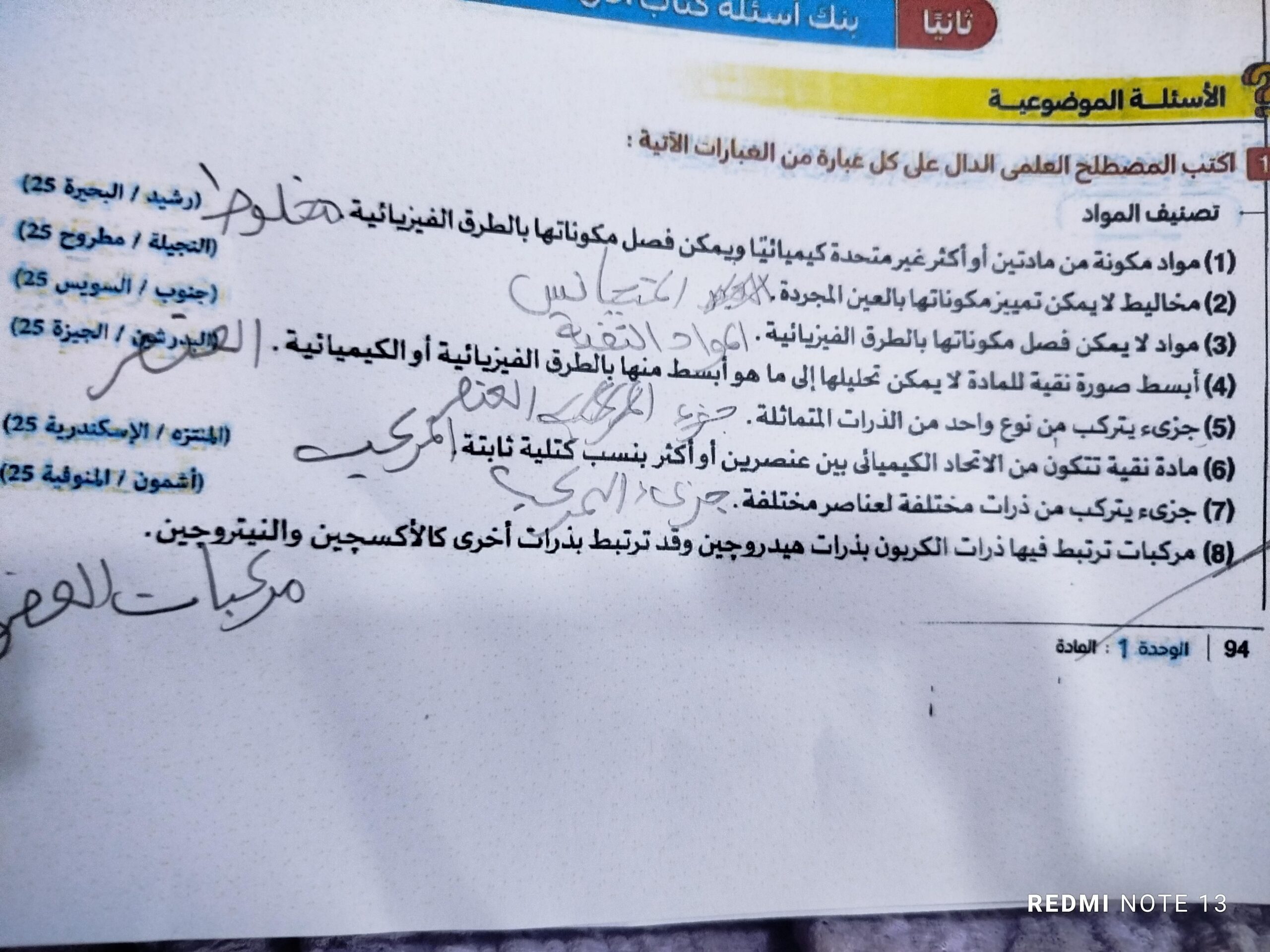 الواجب حل اسئله اختر و اكتب المصطلح العلمى