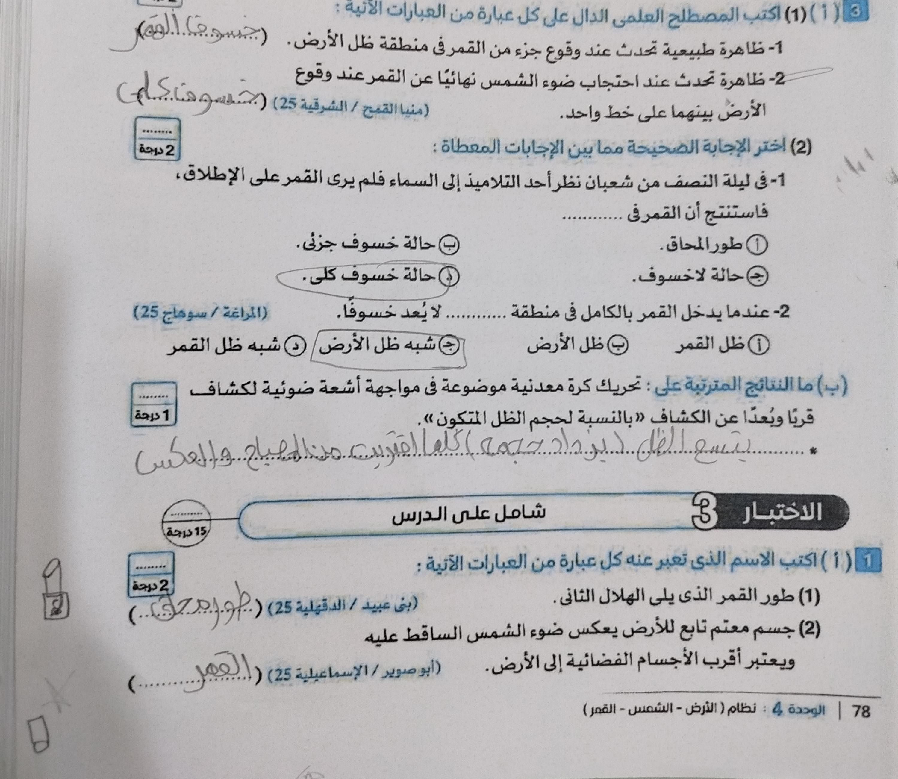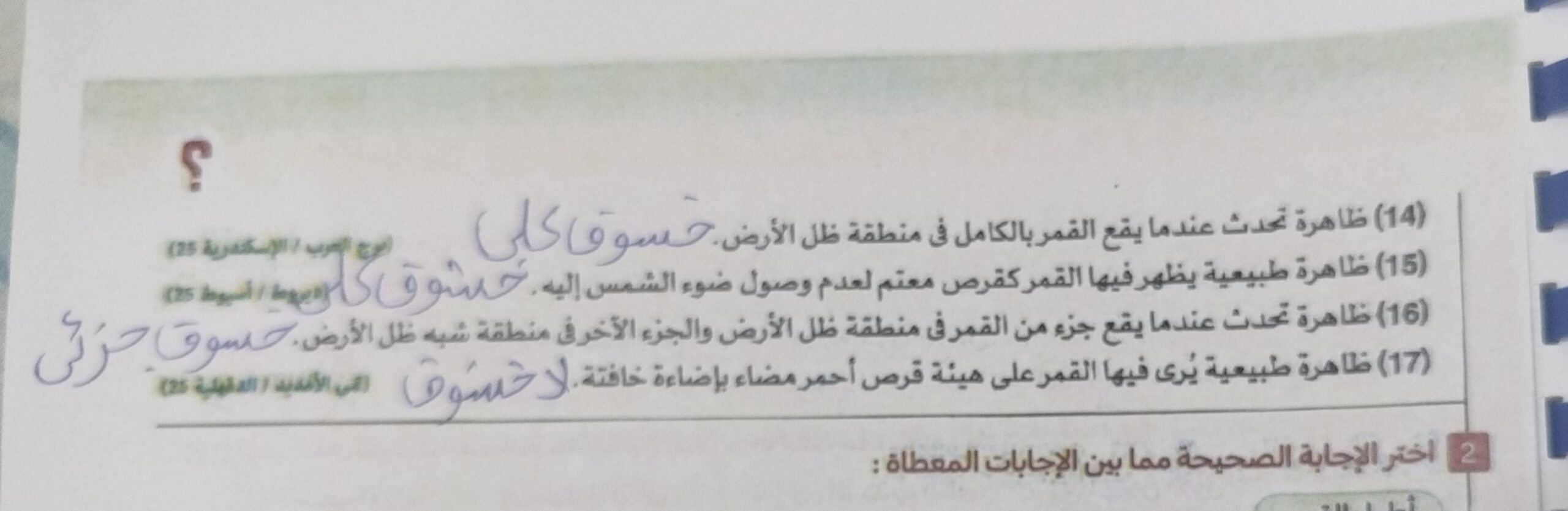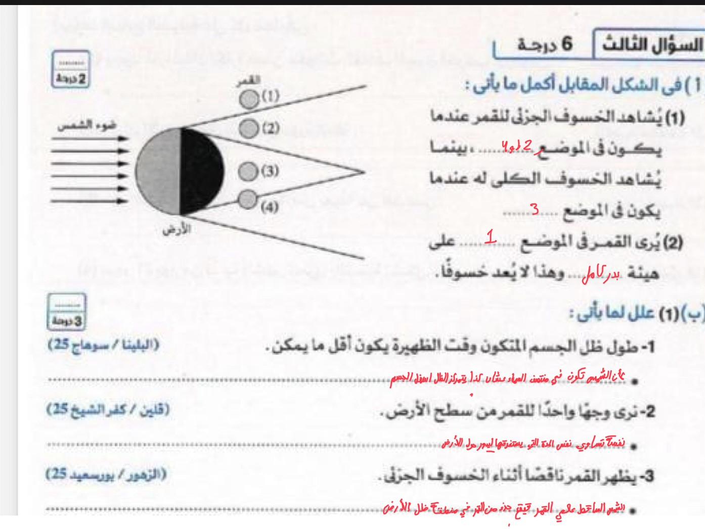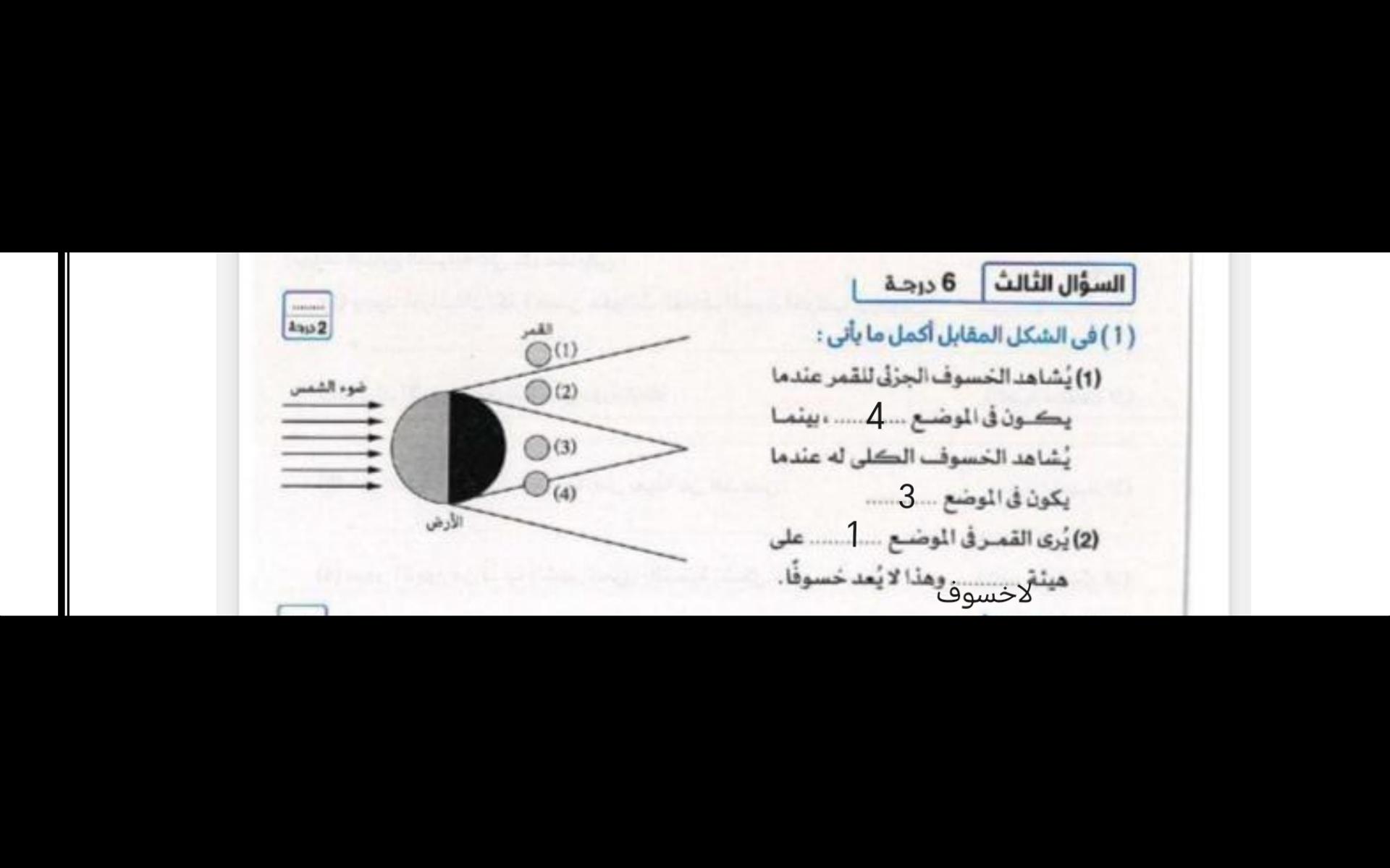 الواجب حل التقيم 2 مع عمل نشاط التجربه خسوف القمر أو تكون ظل