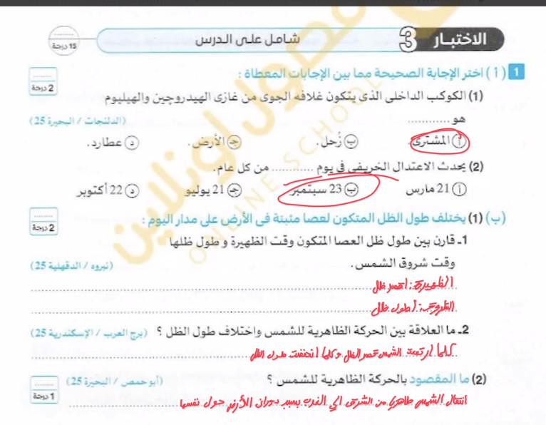 تم حل اسئله كتاب المدرسه و اسئله اختر