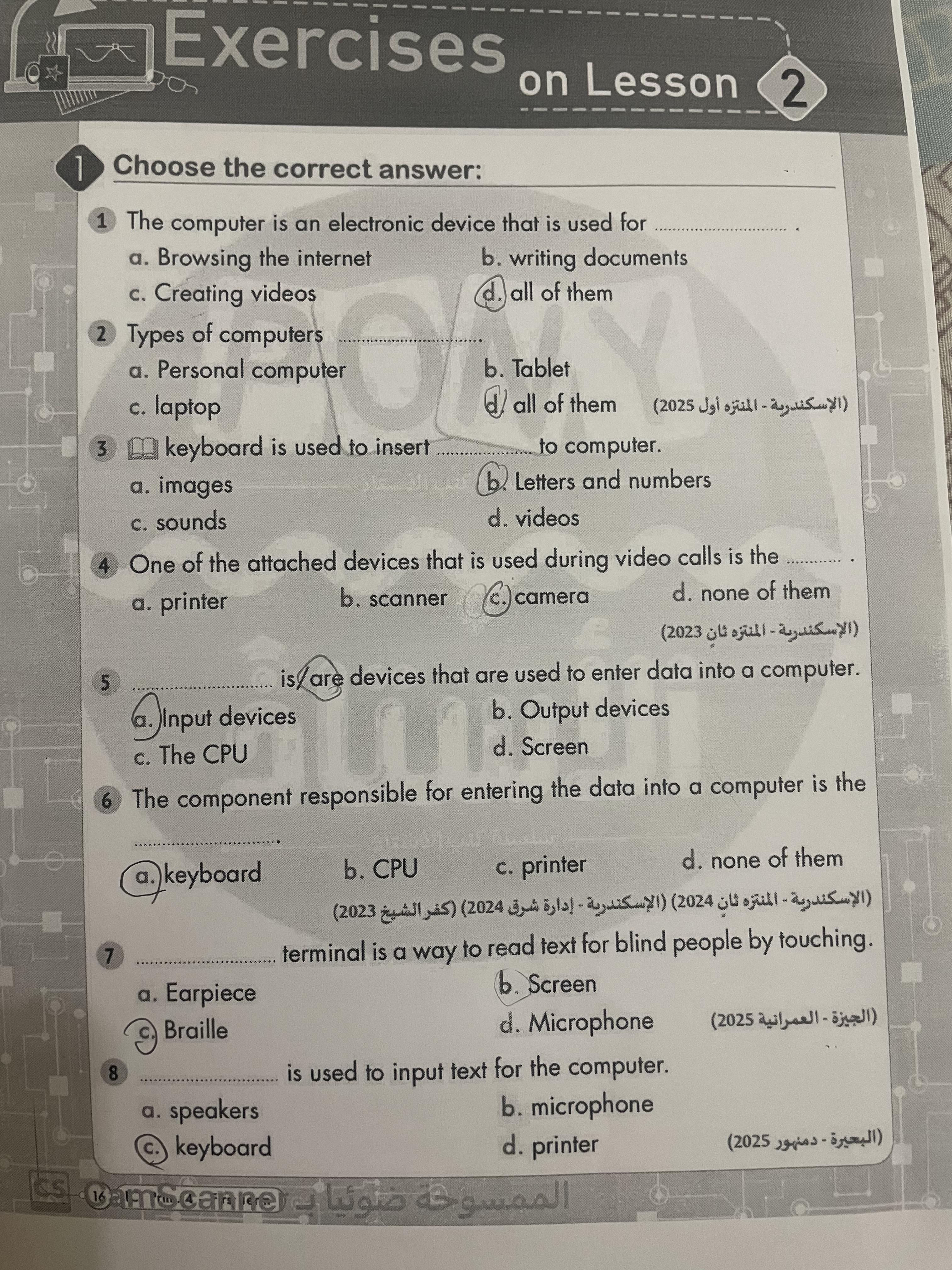 dear students , study lesson 1 on unit 2 and solve this exercises