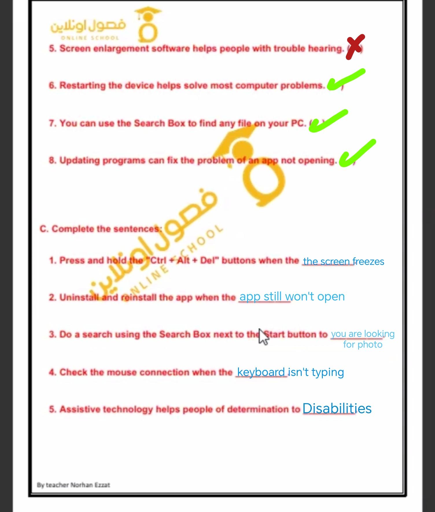 اهلا يا بنات حبيت اقولكم أن احنا هنبقي نحل التدريبات في الحصه لغايه ما الكتب تترفع علي المنصه يعني مفيش واجب