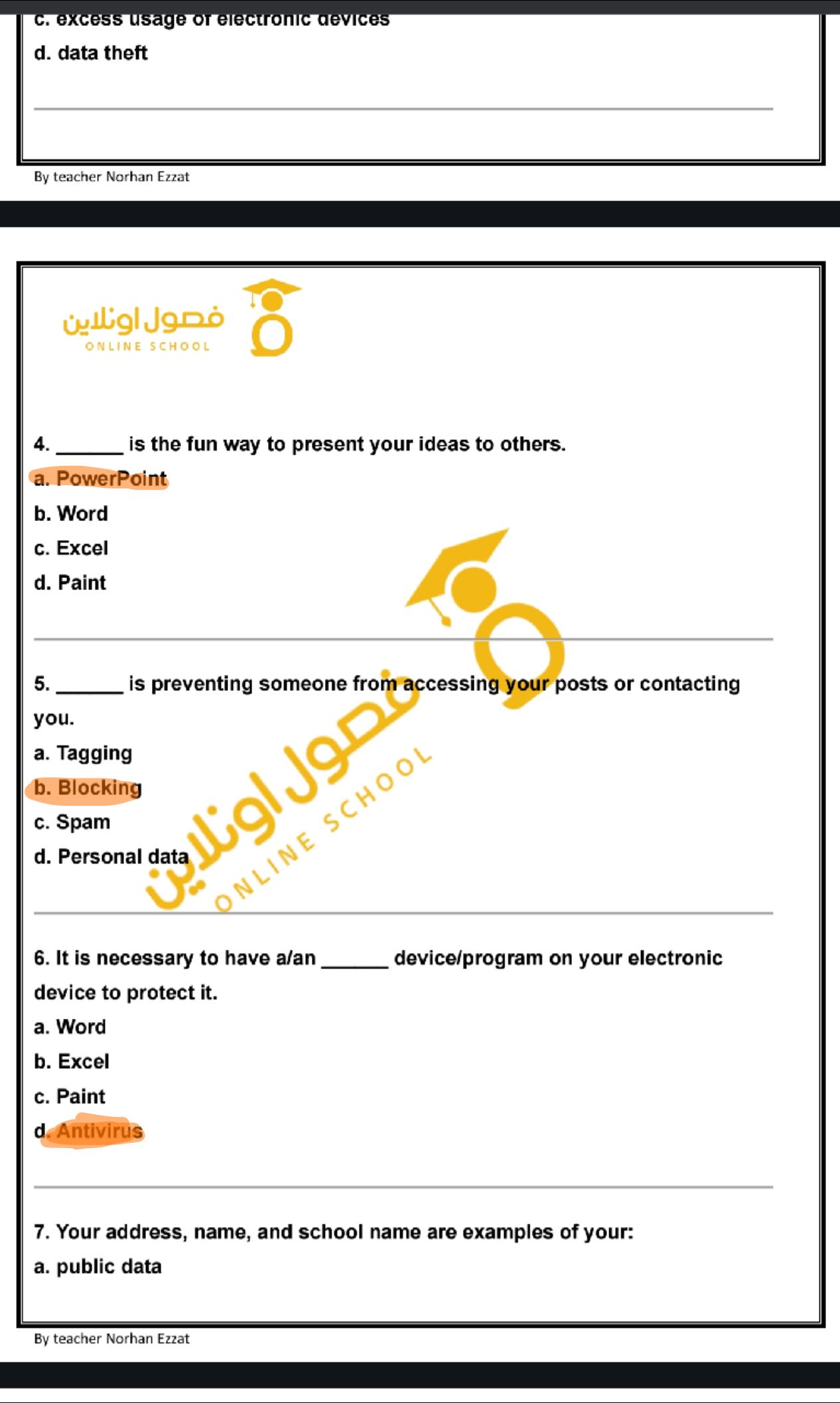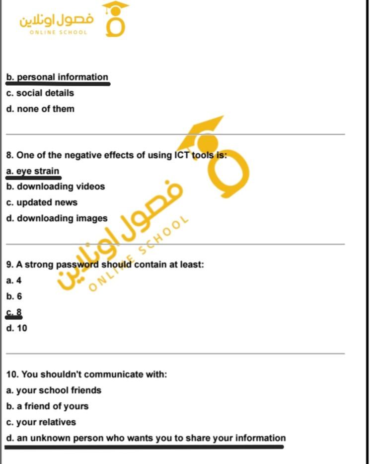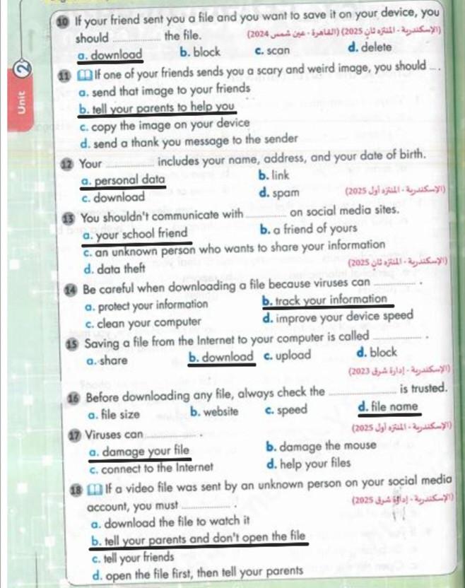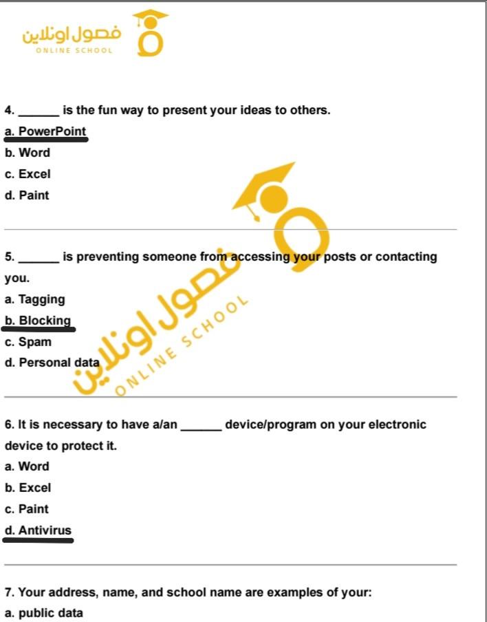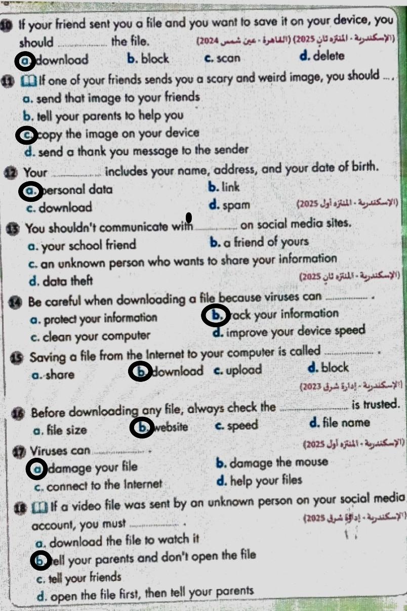 hello my students today we took lesson 5 digital security . study and solve these questions