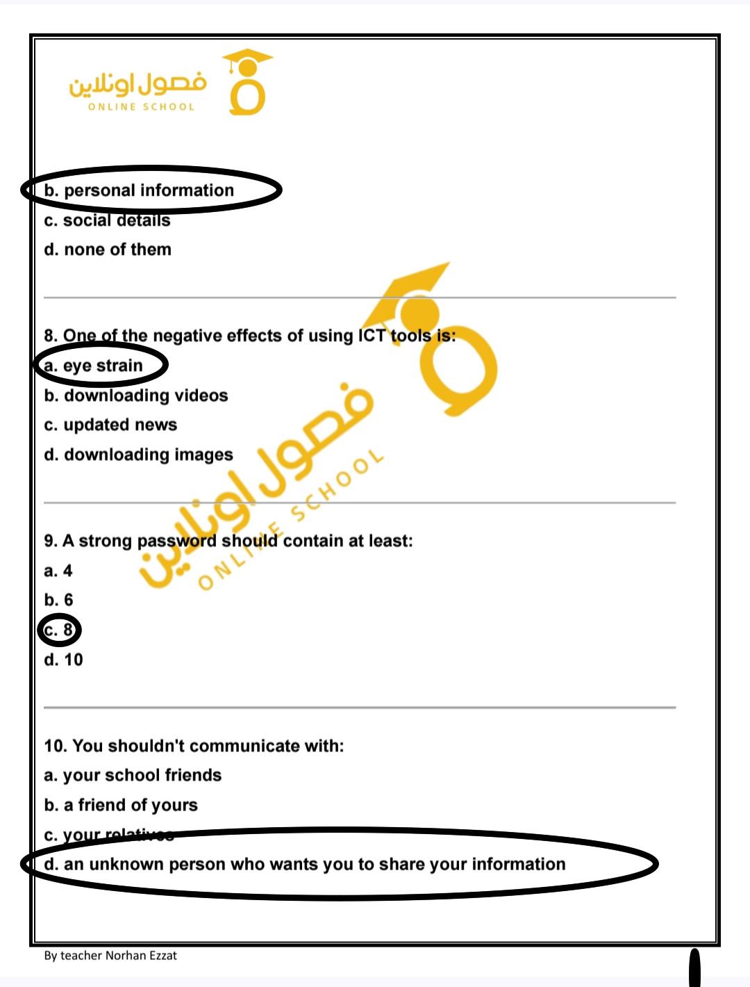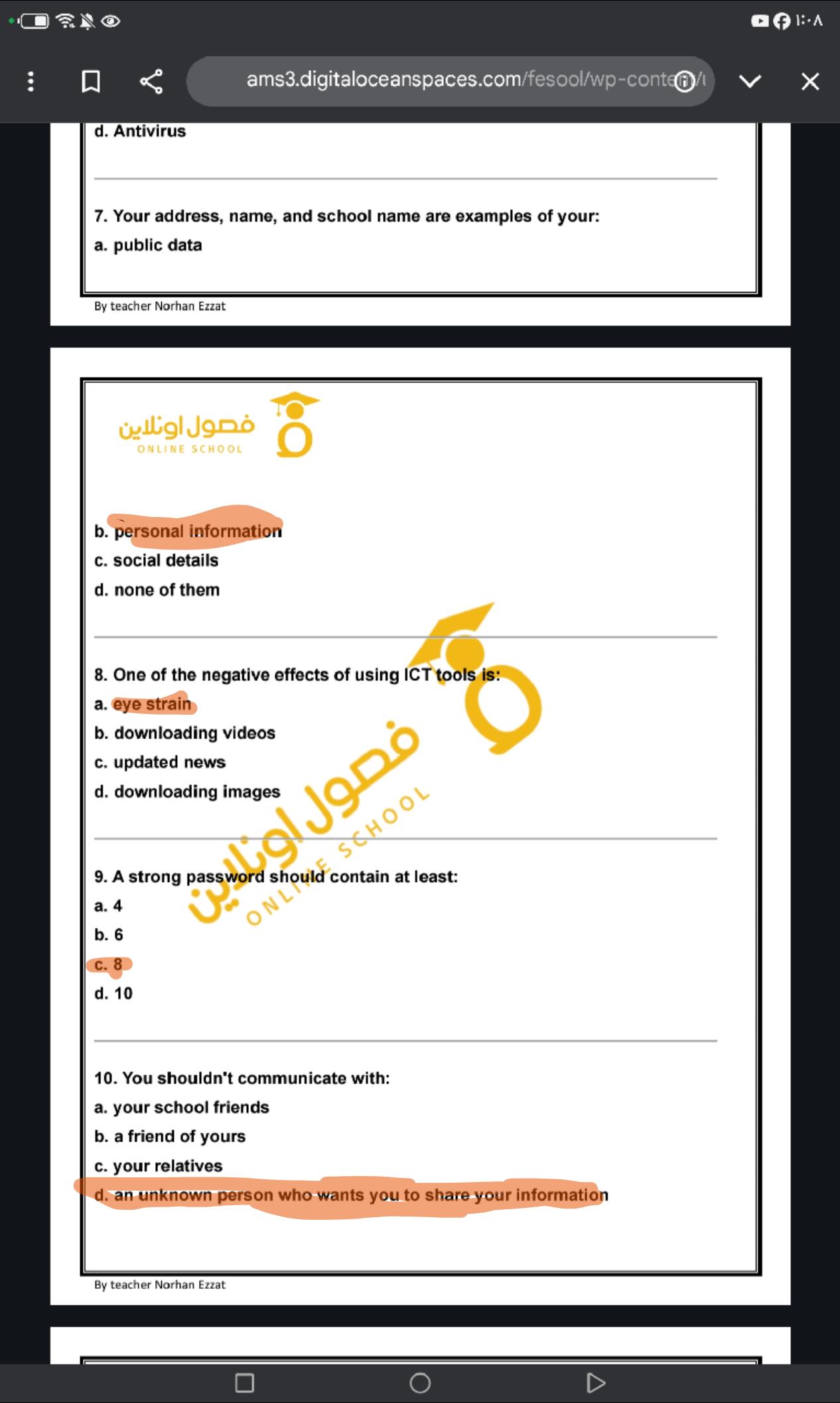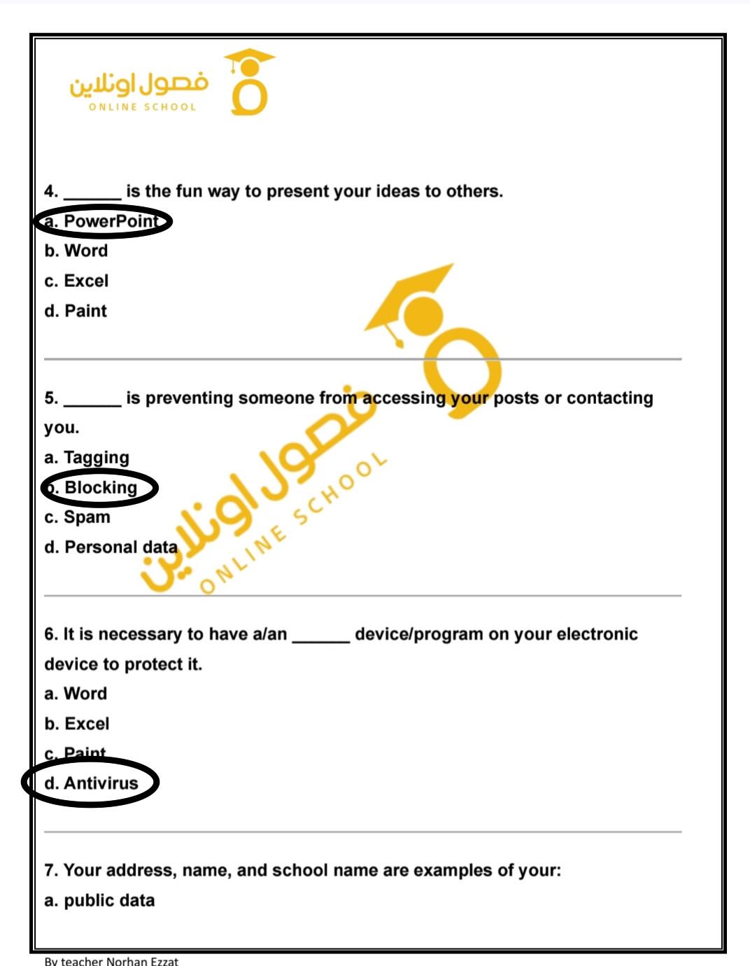 hello my students today we took lesson 5 digital security . study and solve these questions