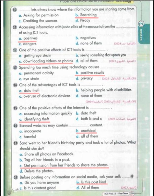 my students we took lesson 2 proper and ethical use of information technology study the lesson and solve this questions