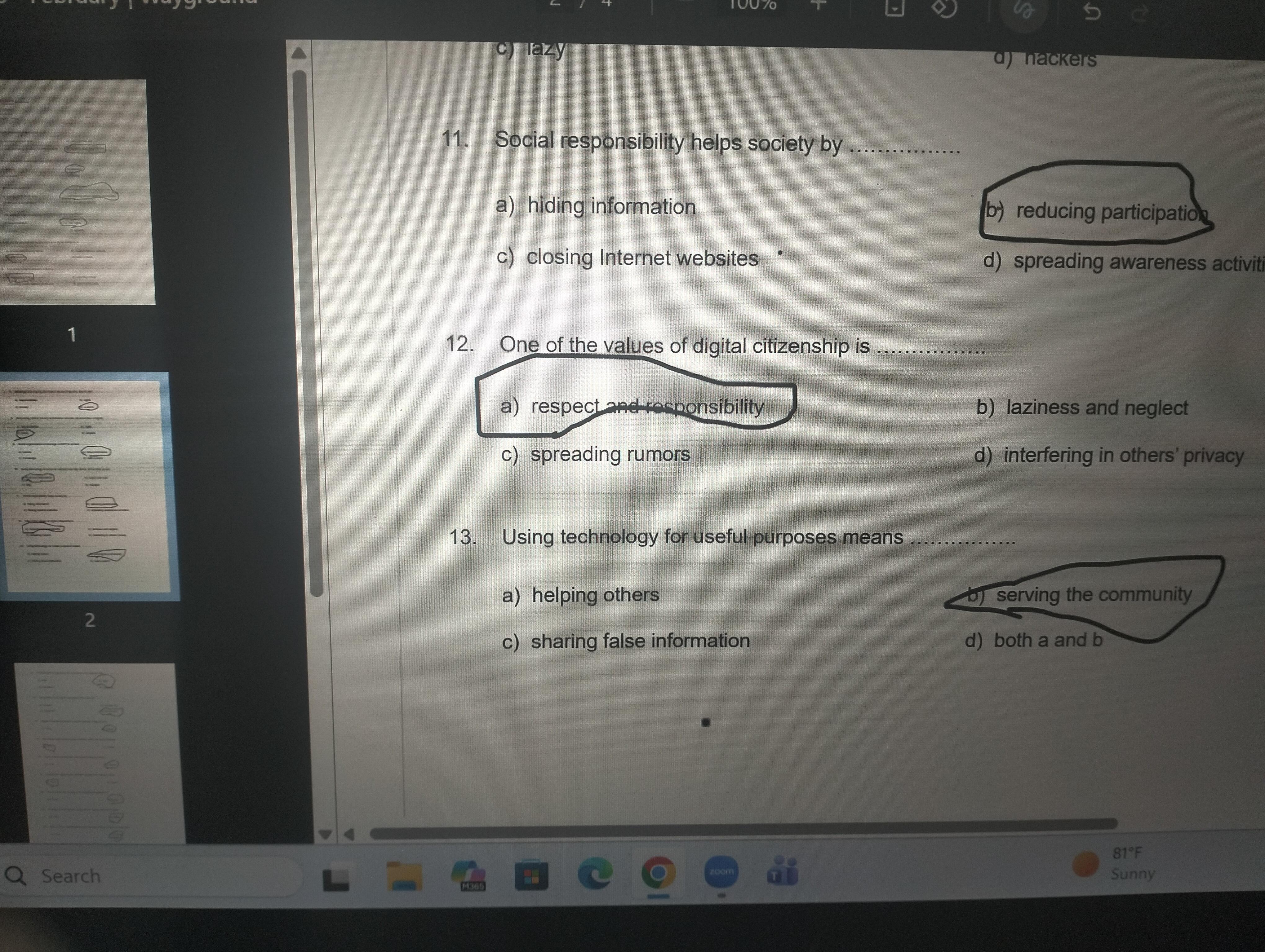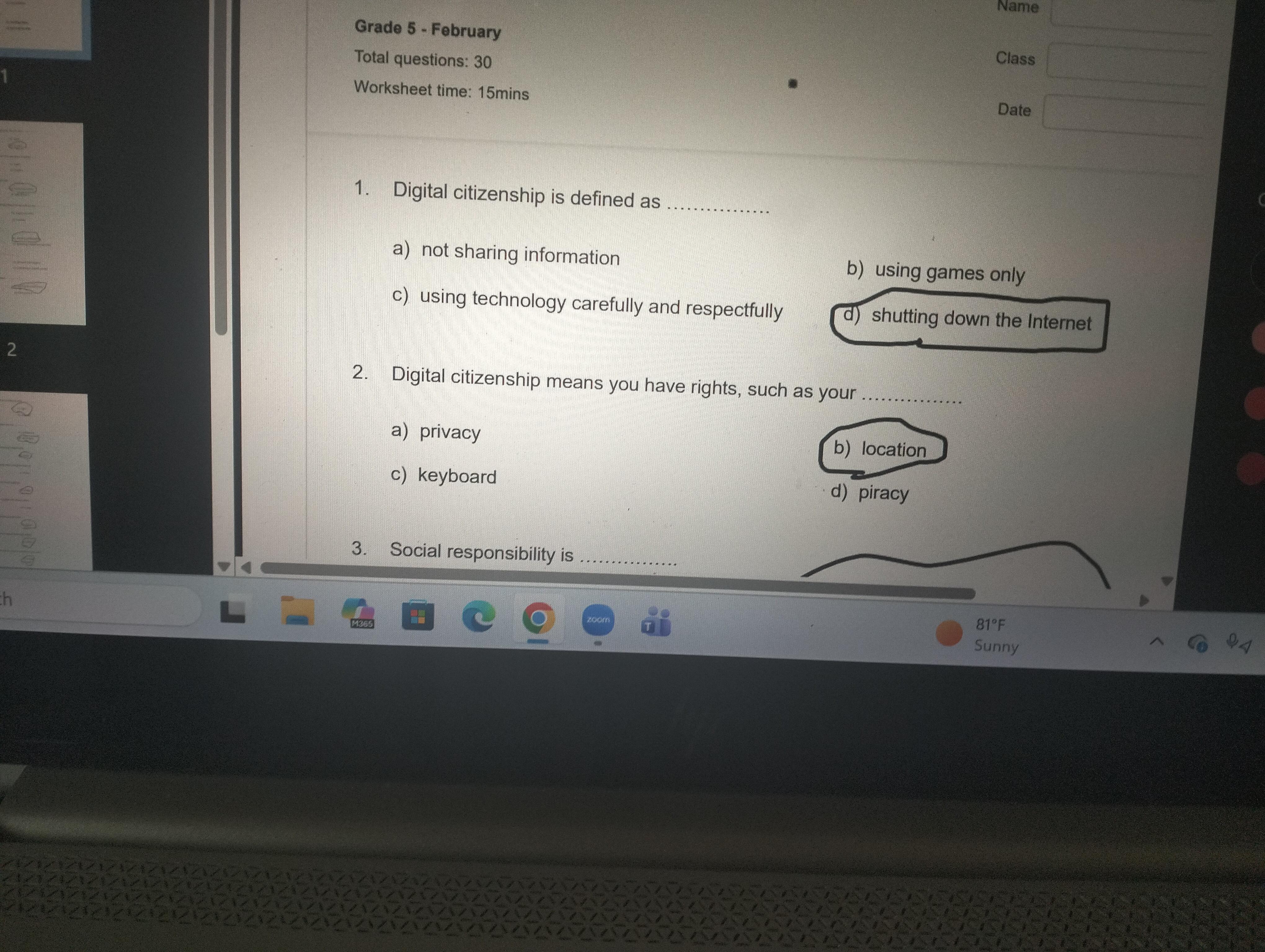 Lesson : Digital Citizenship and social Responsibilities No homework