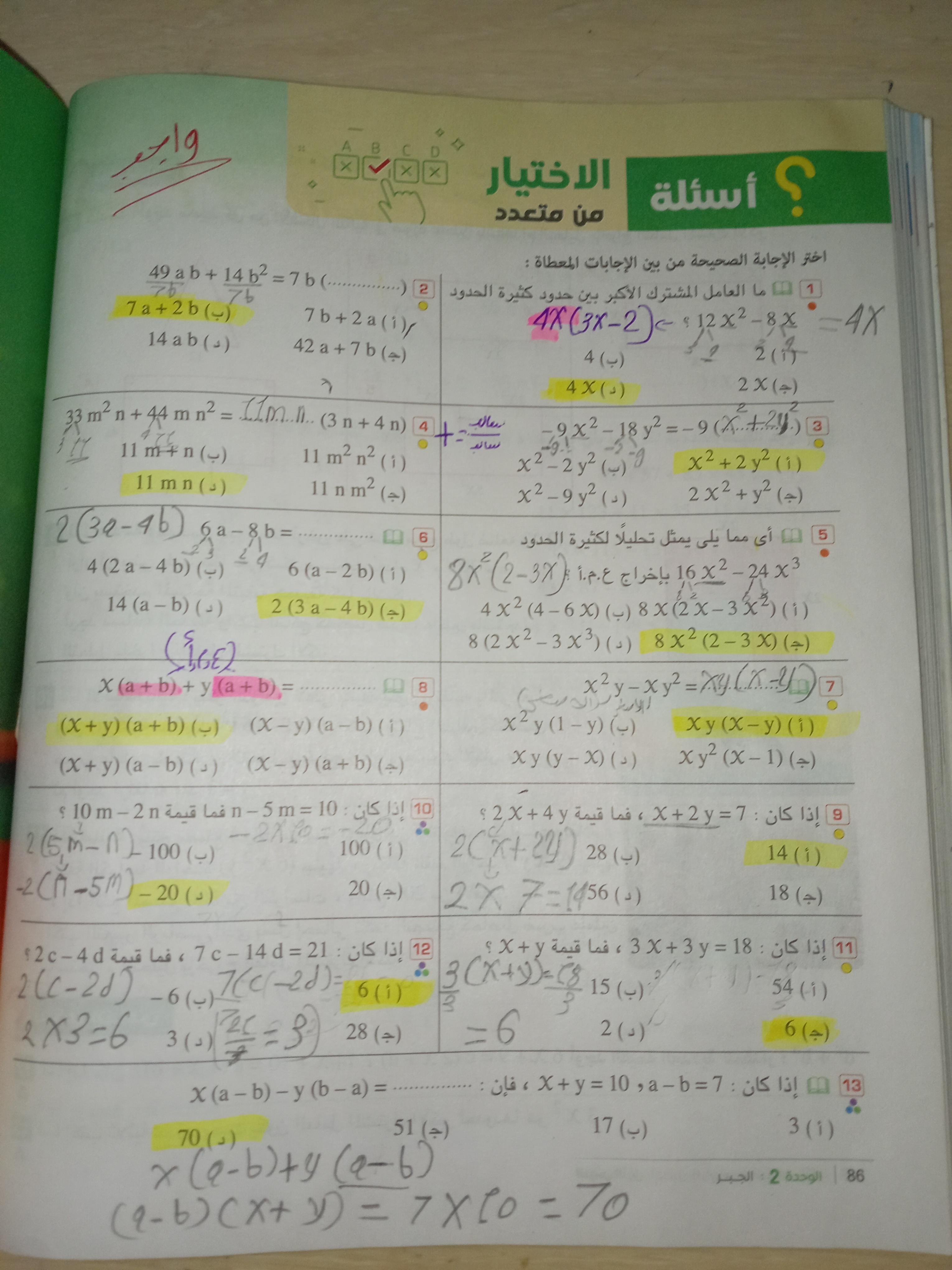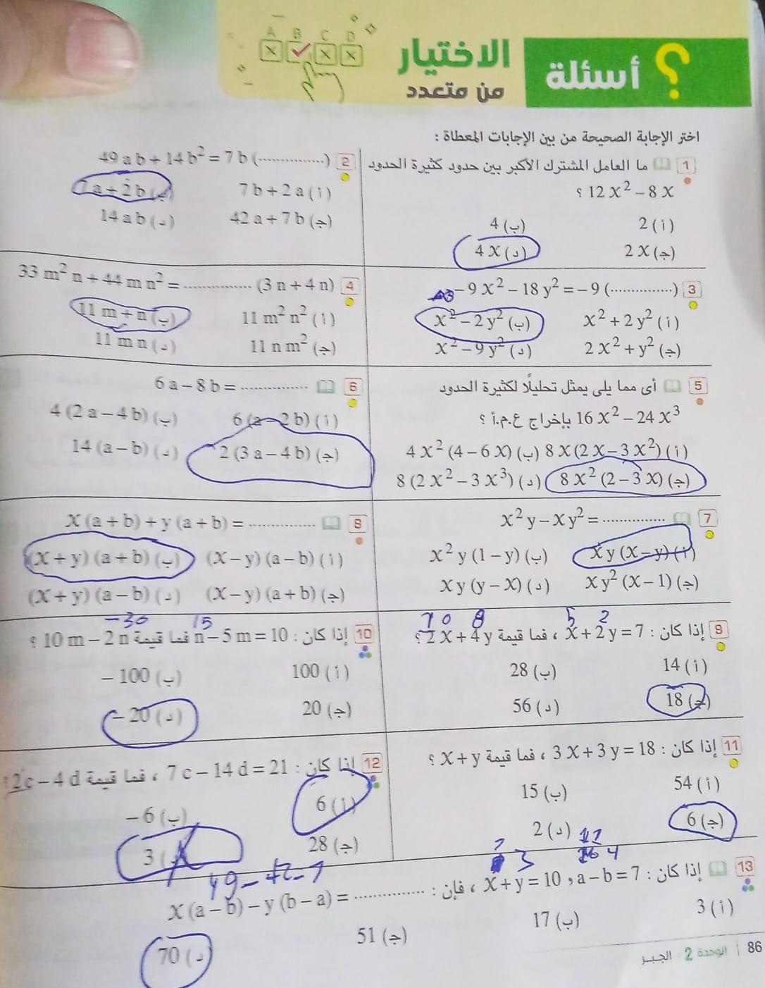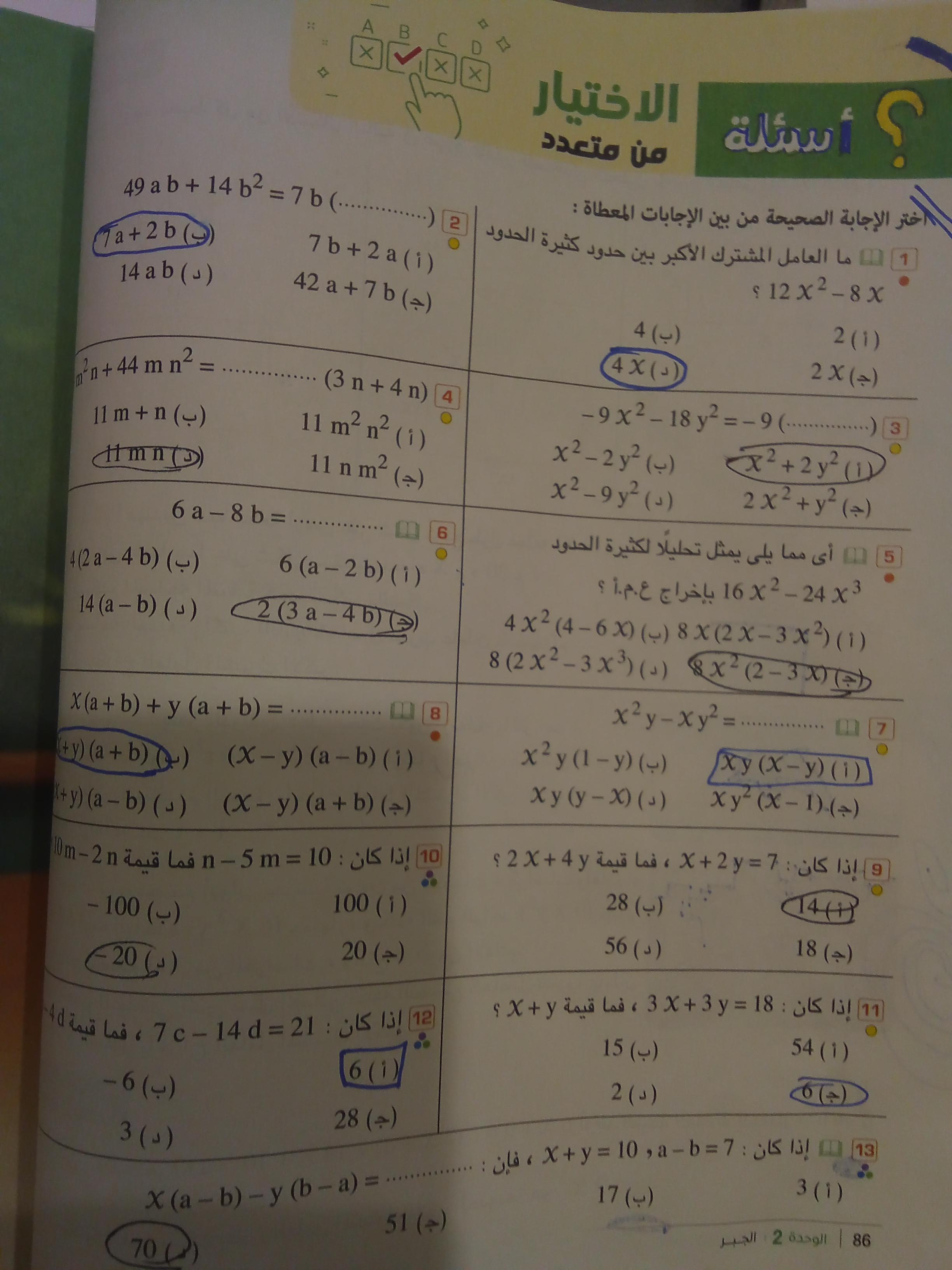 الاختيار من متعدد ص 71 و 72