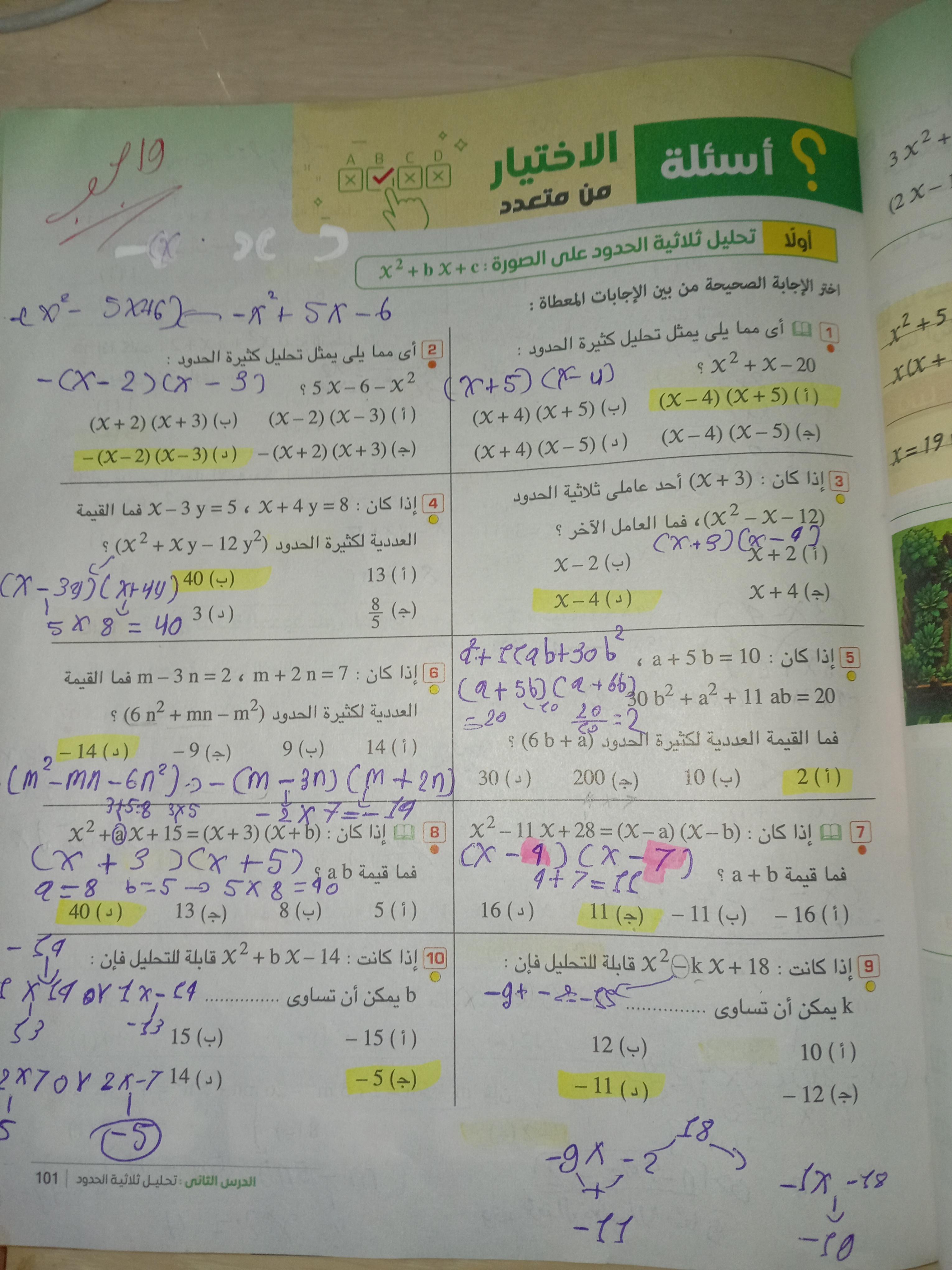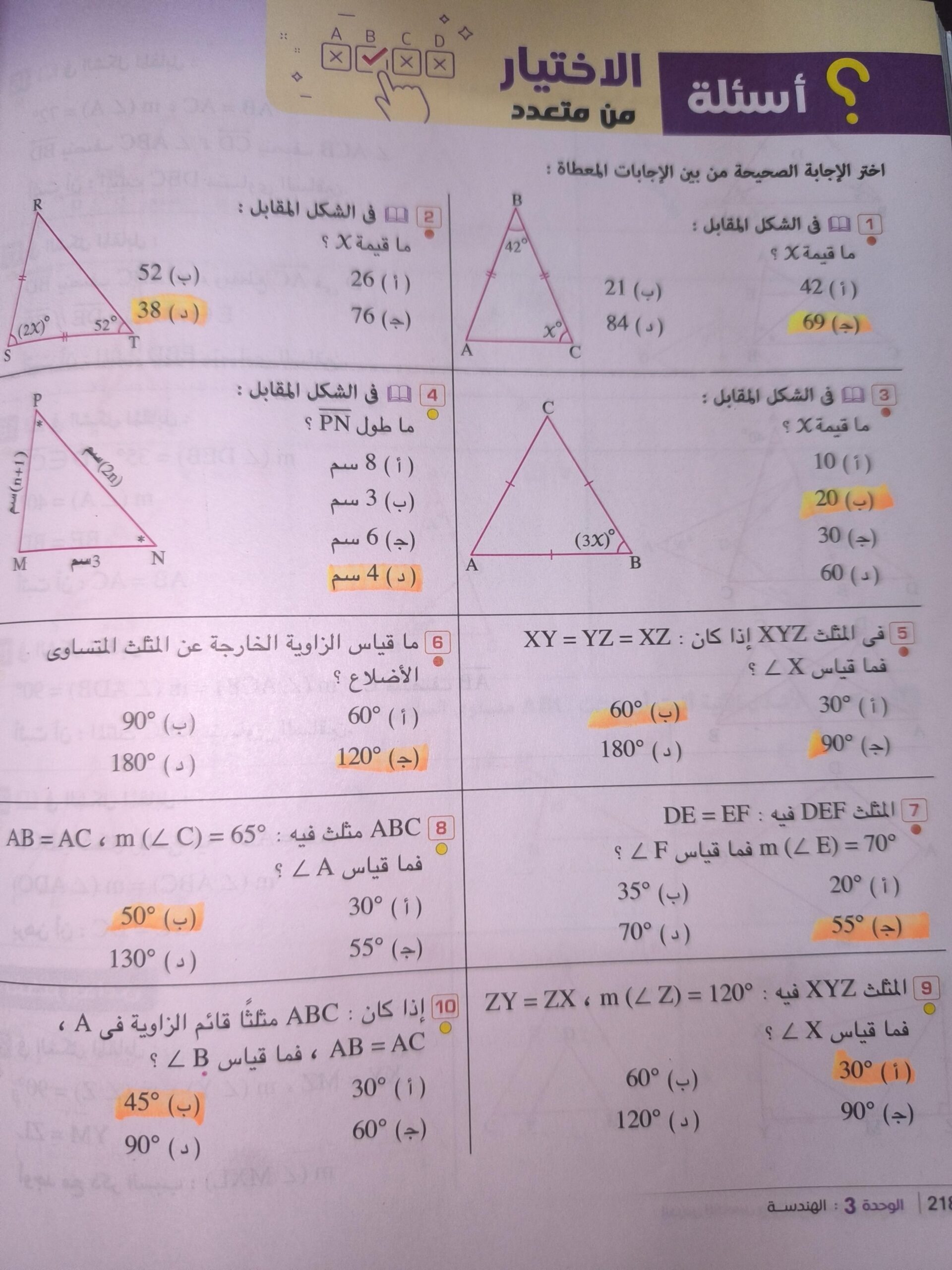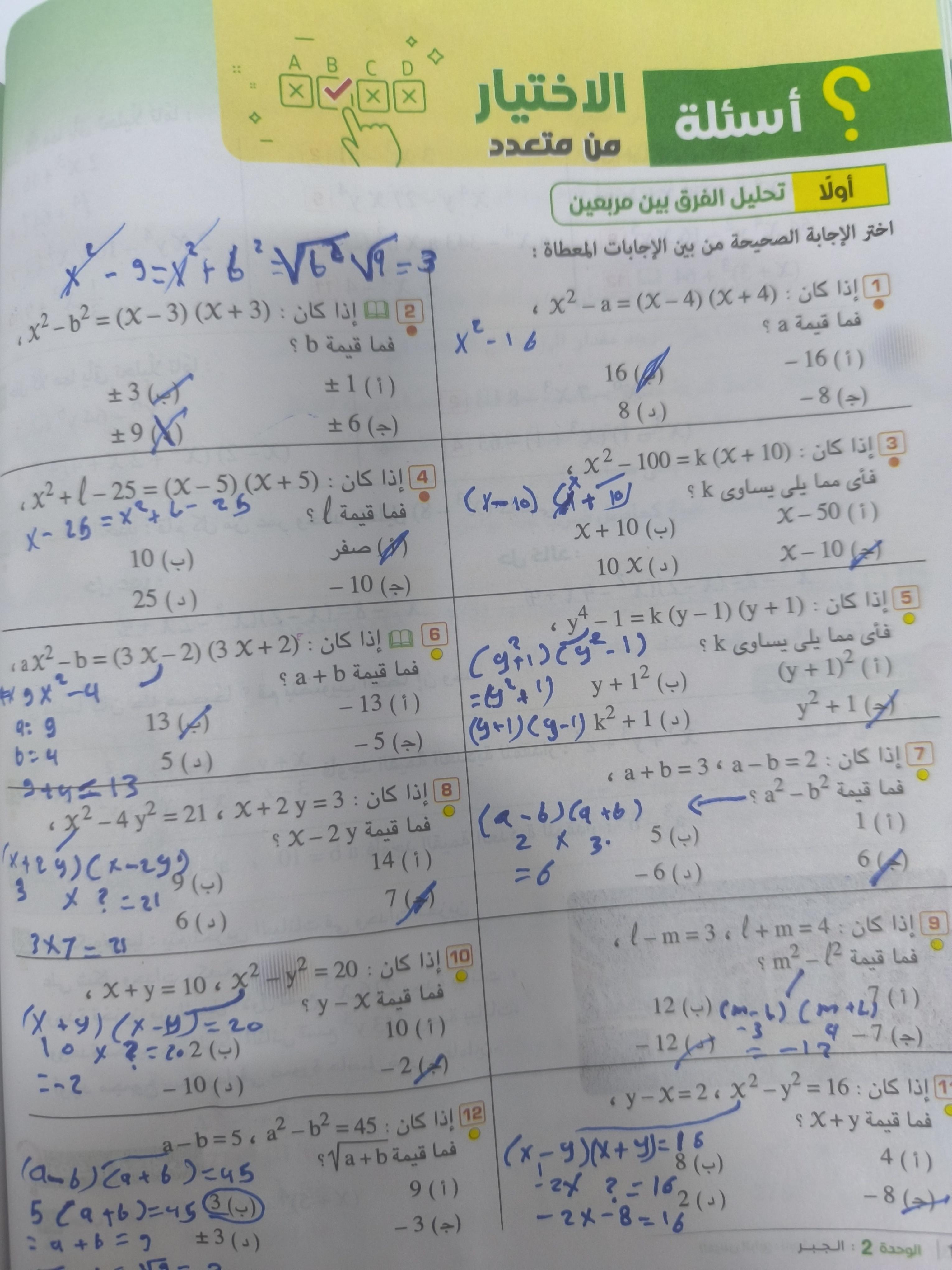 الاختيار من متعدد ص 71 و 72