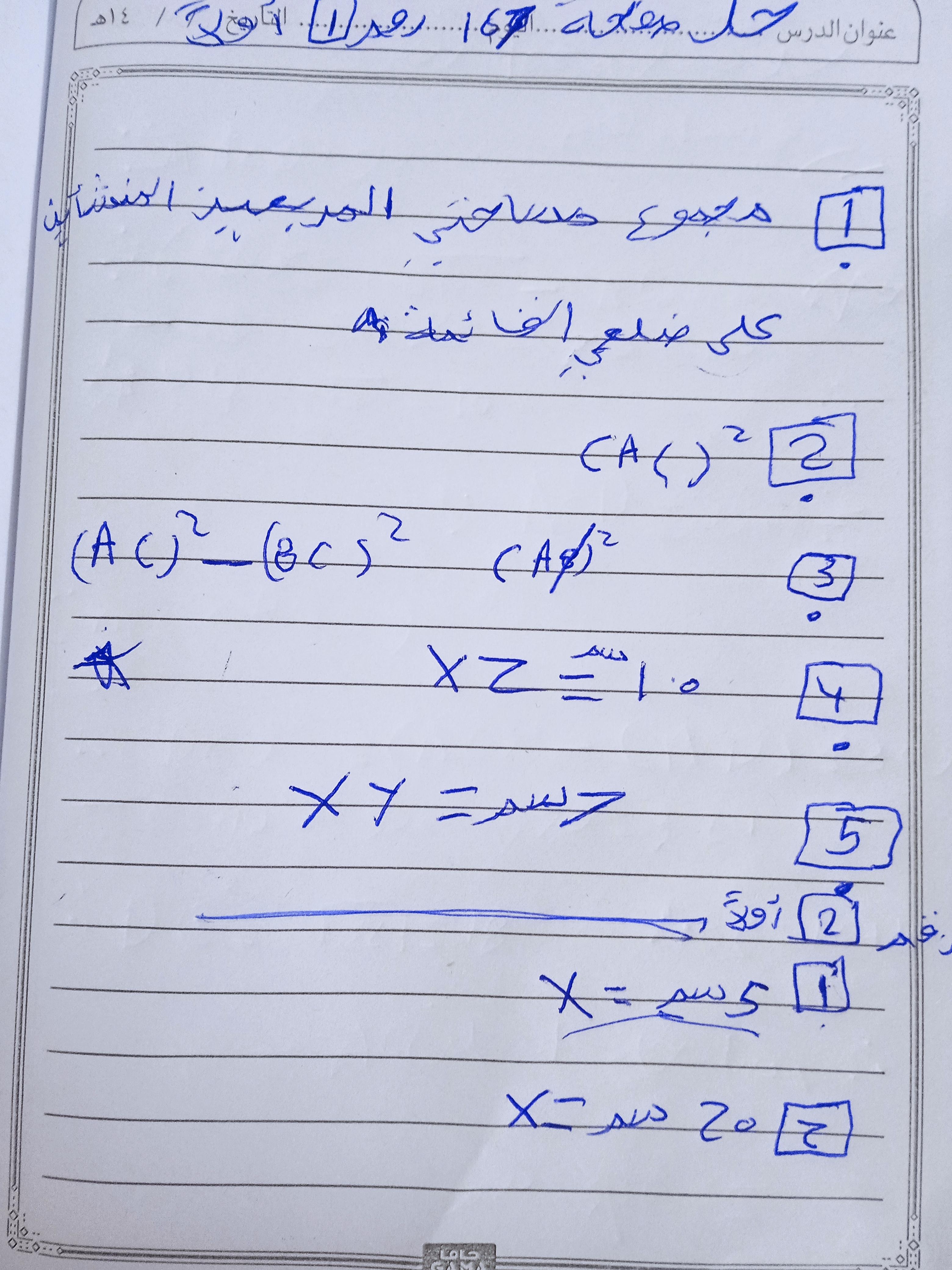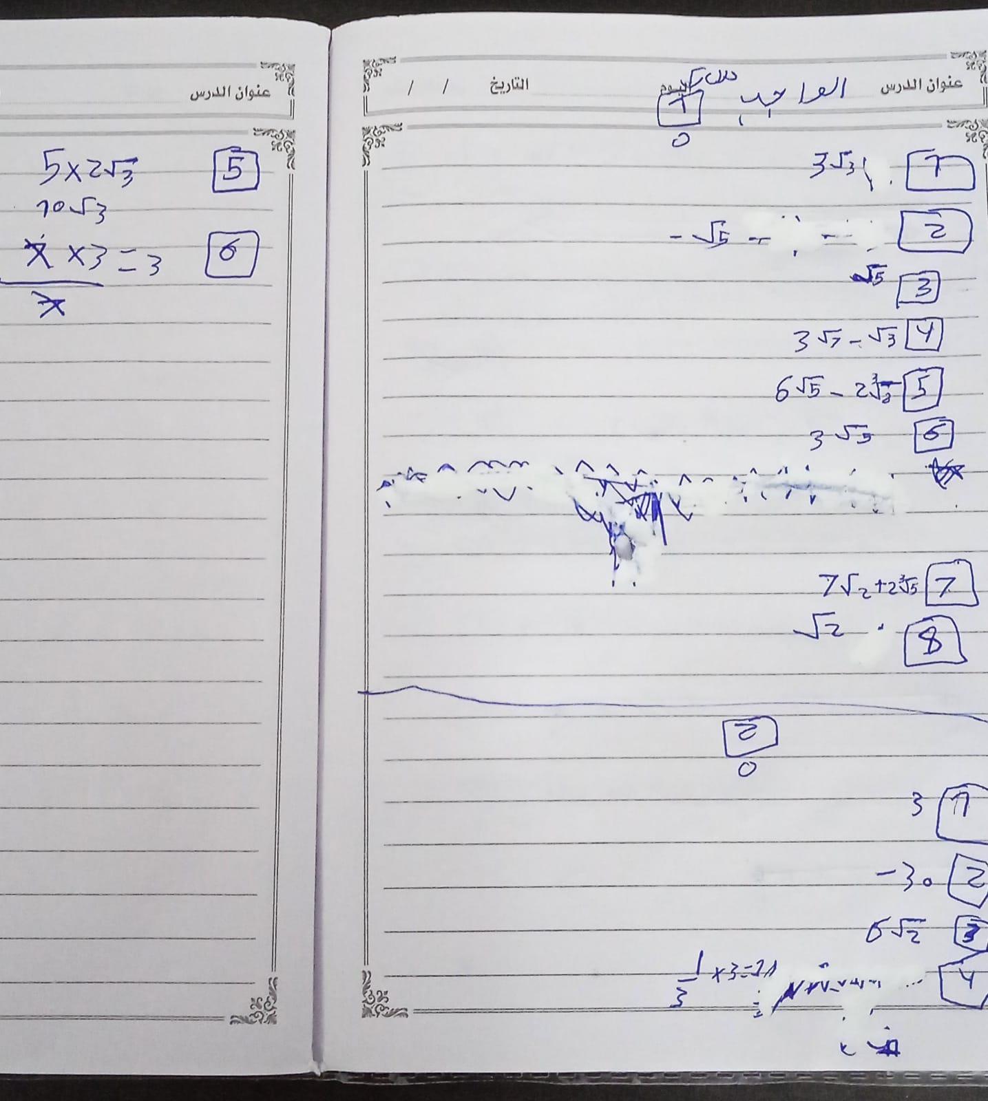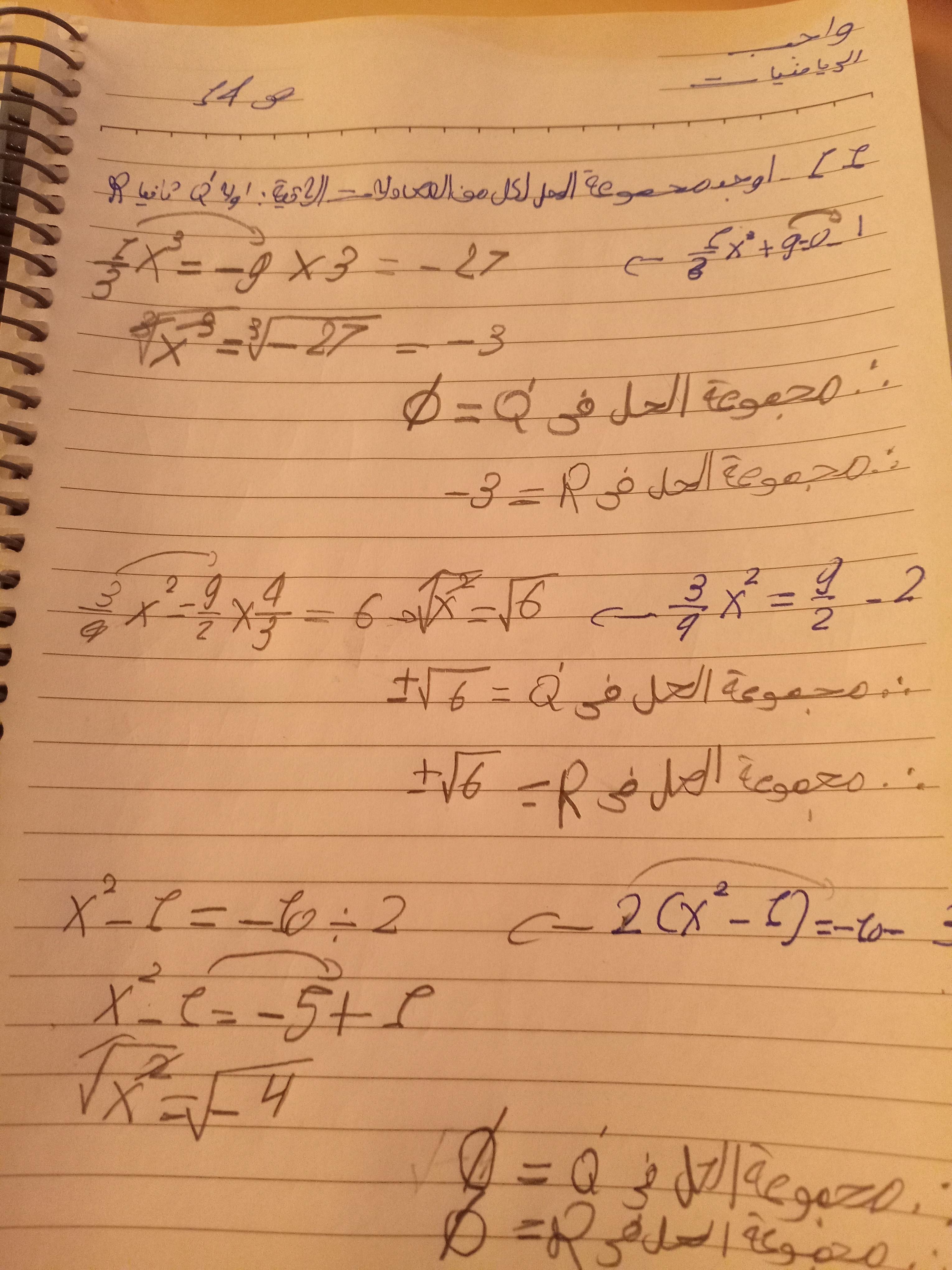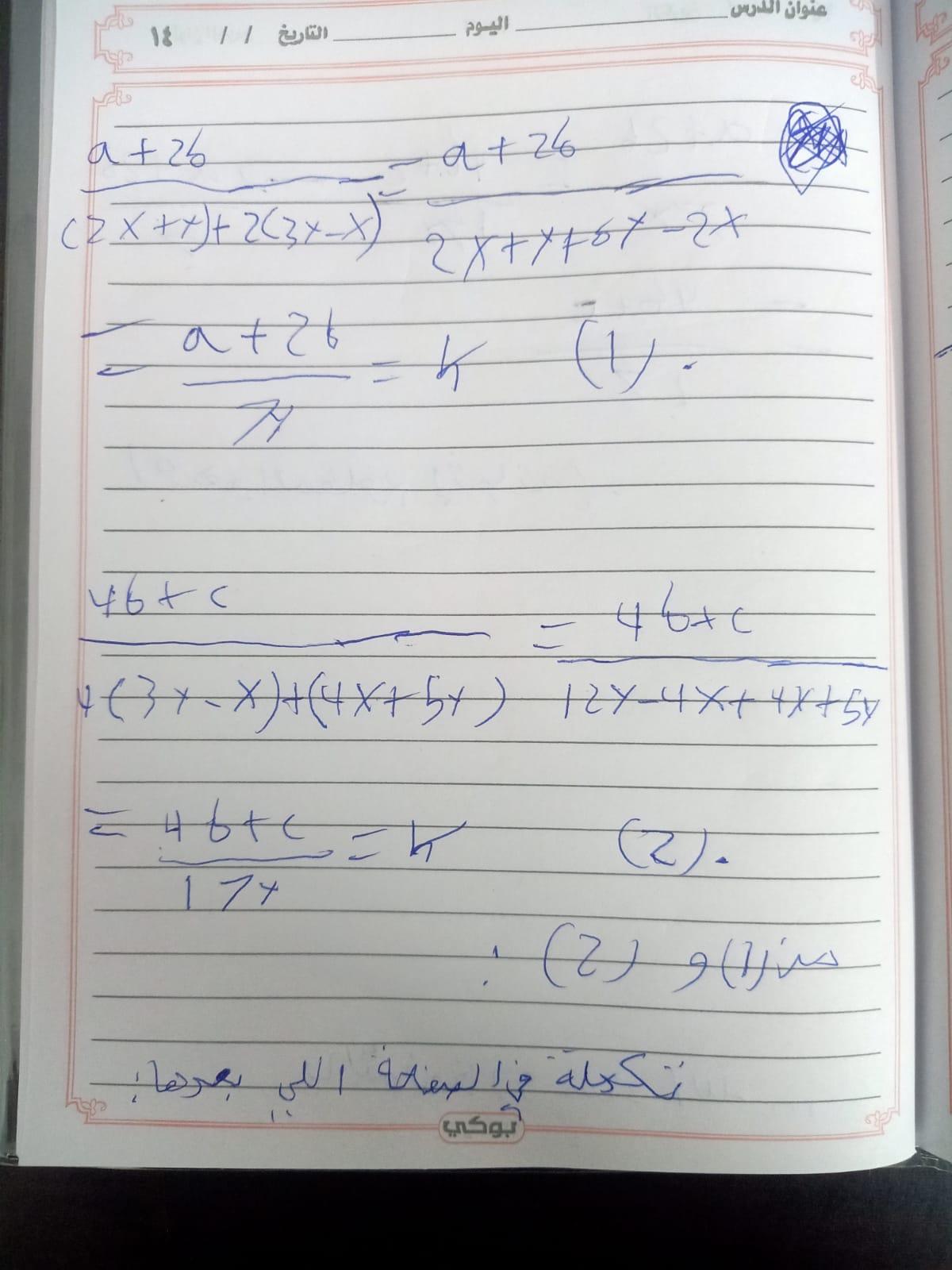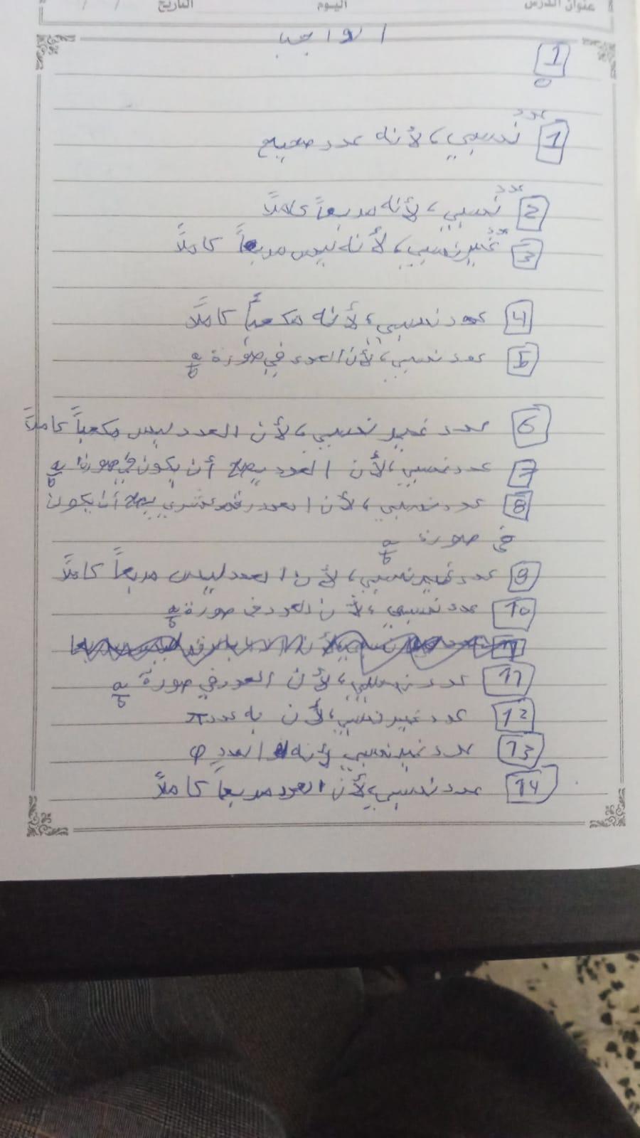 واجب الرياضيات. 📏🖋