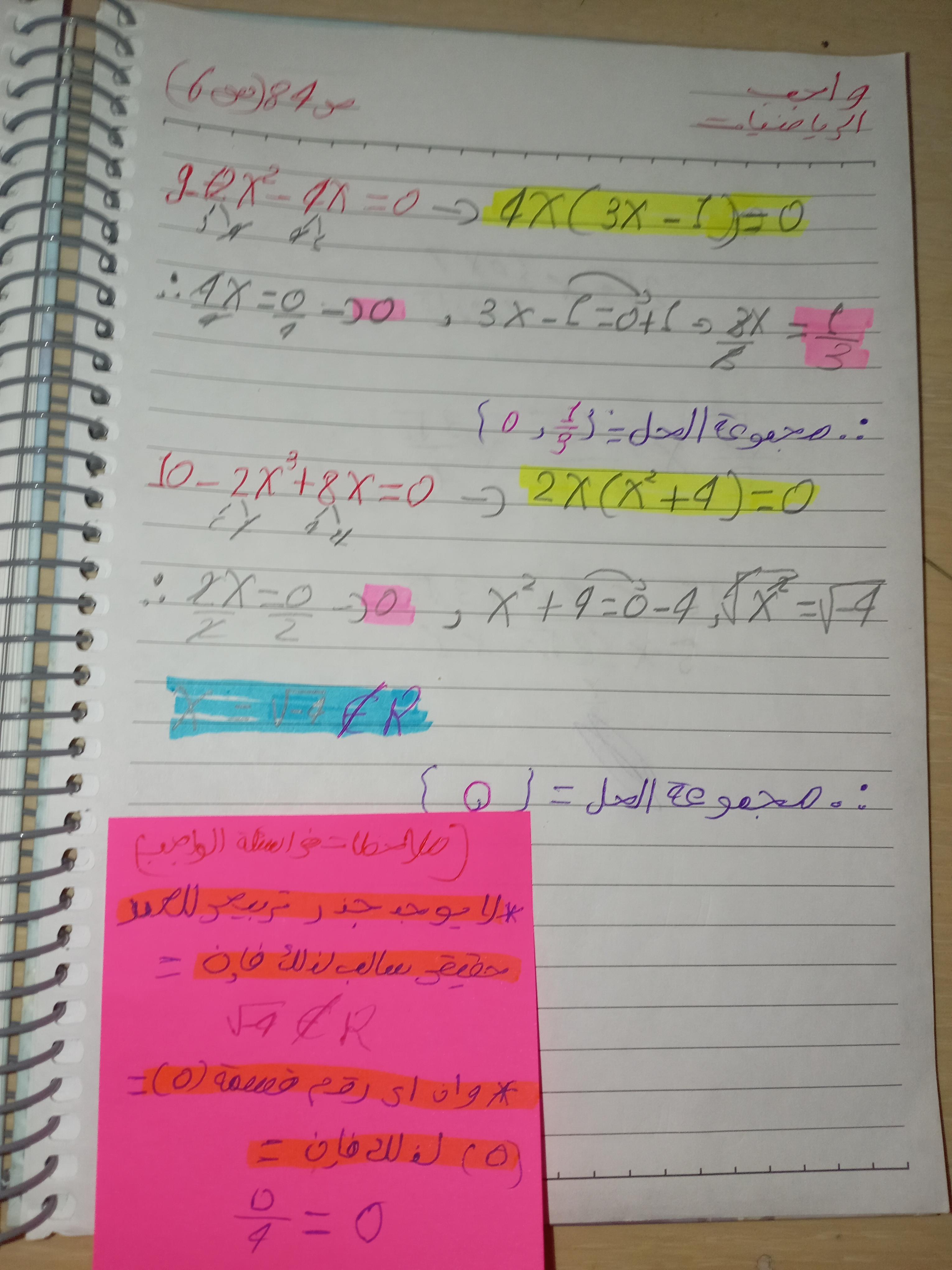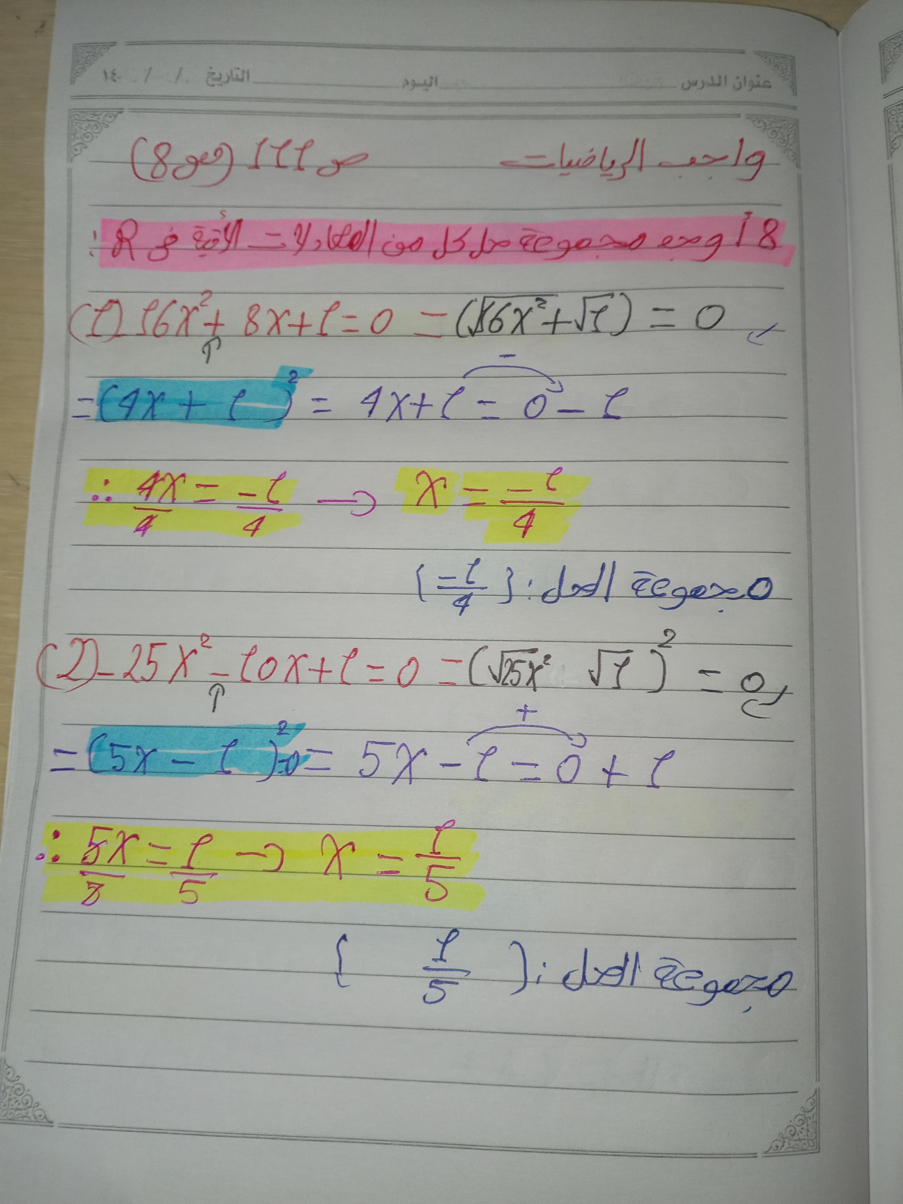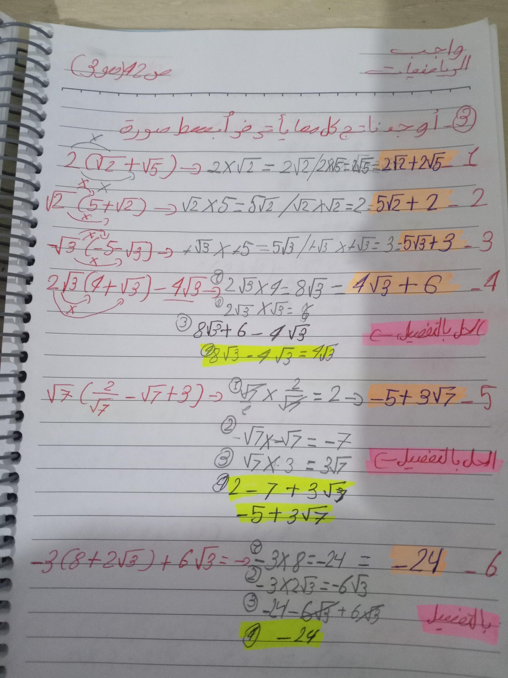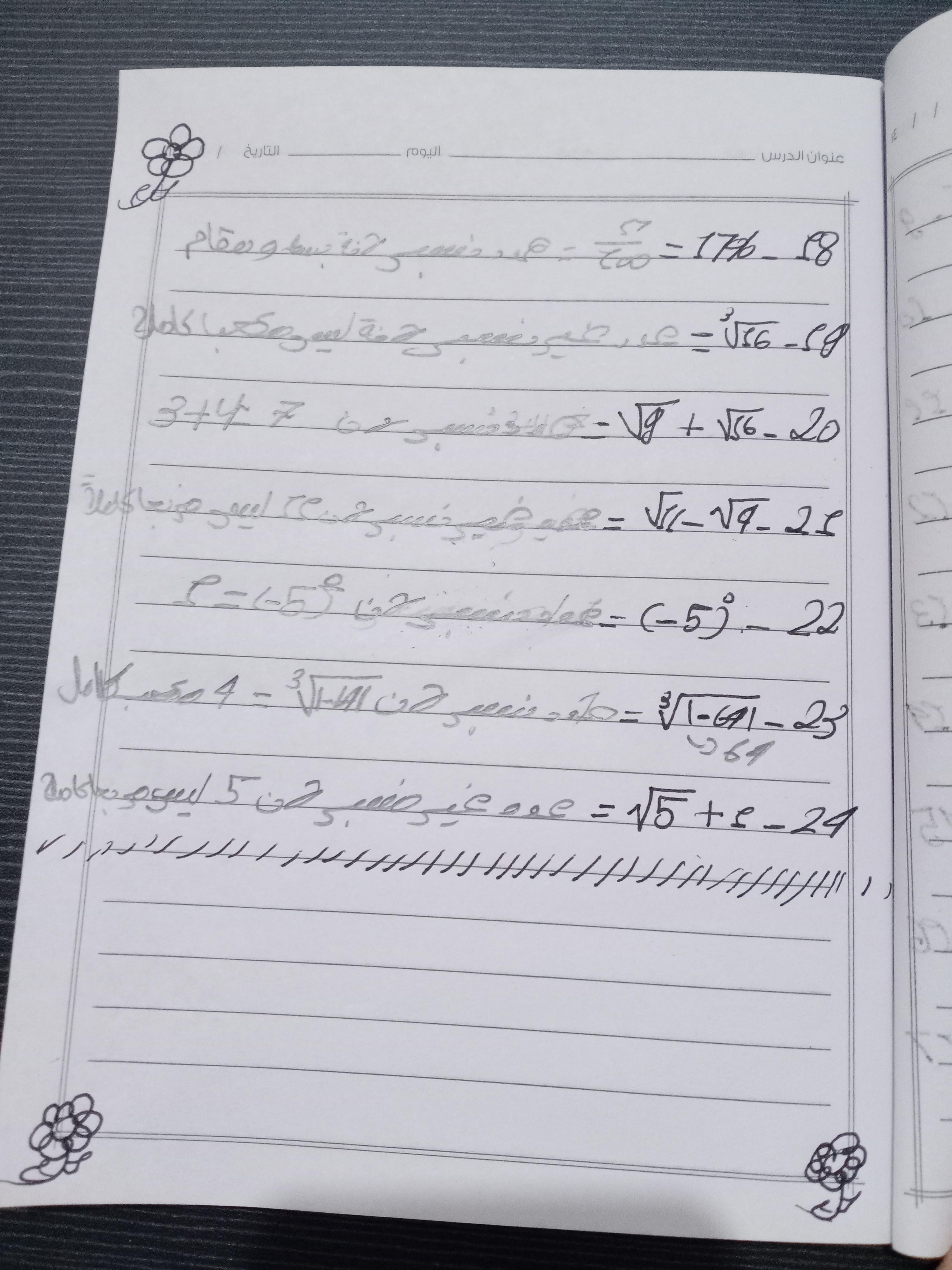 واجب الرياضيات. 📏🖋