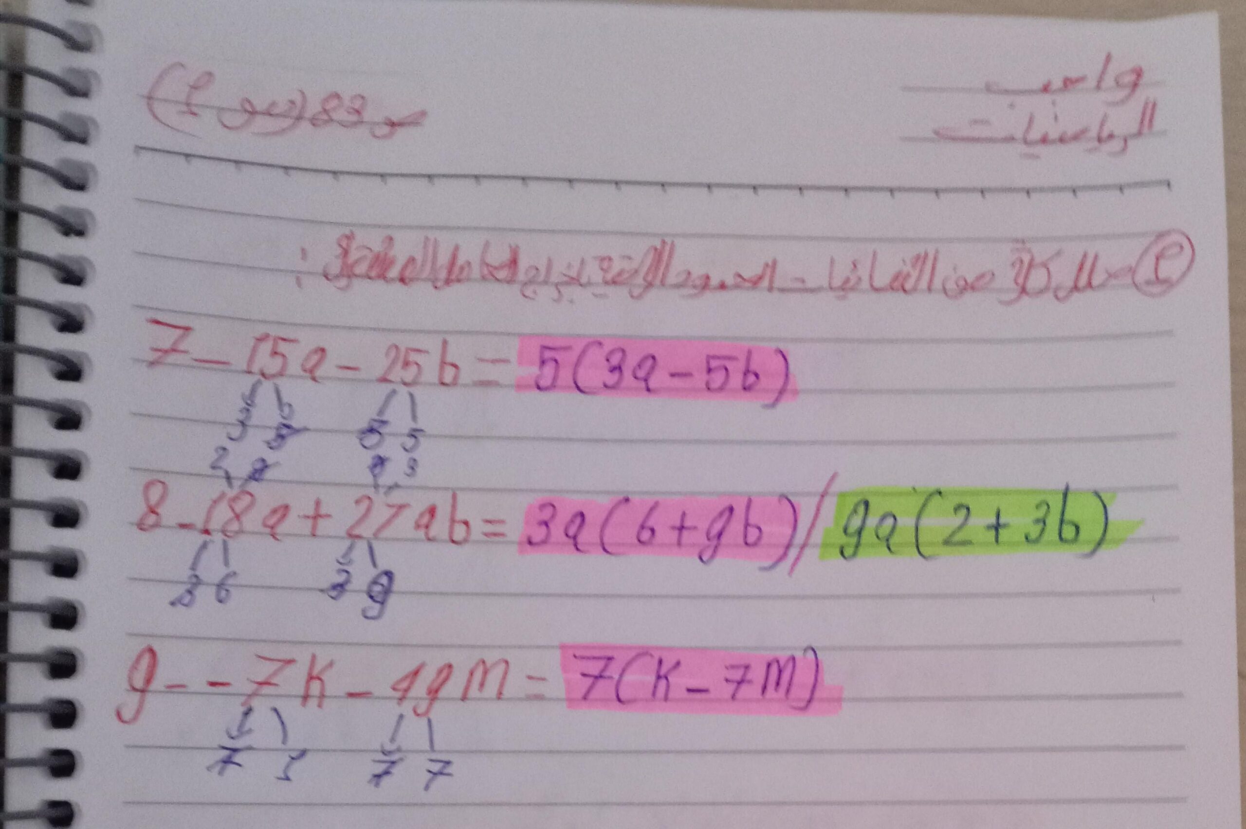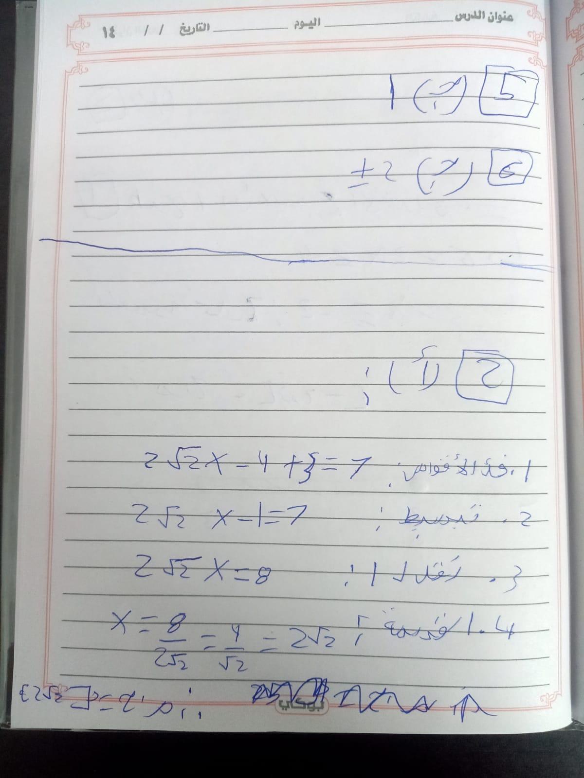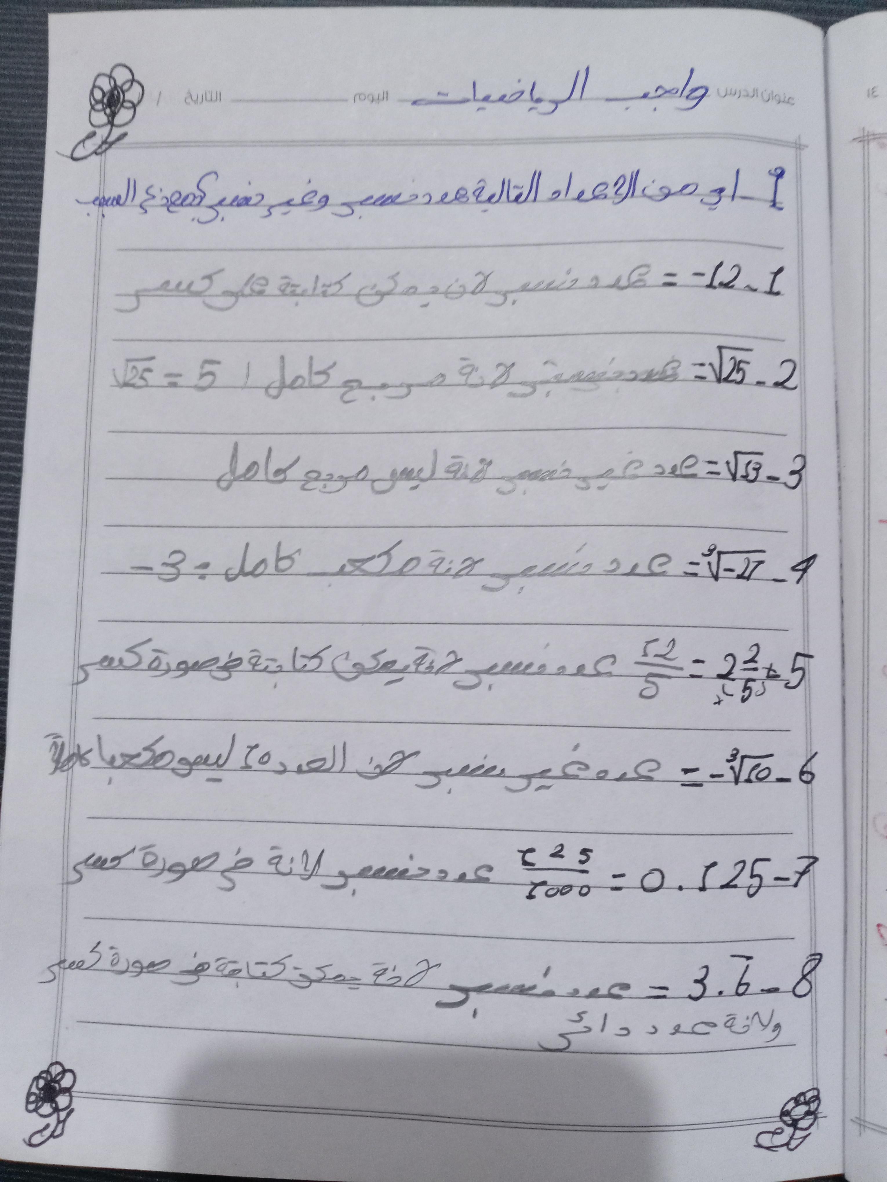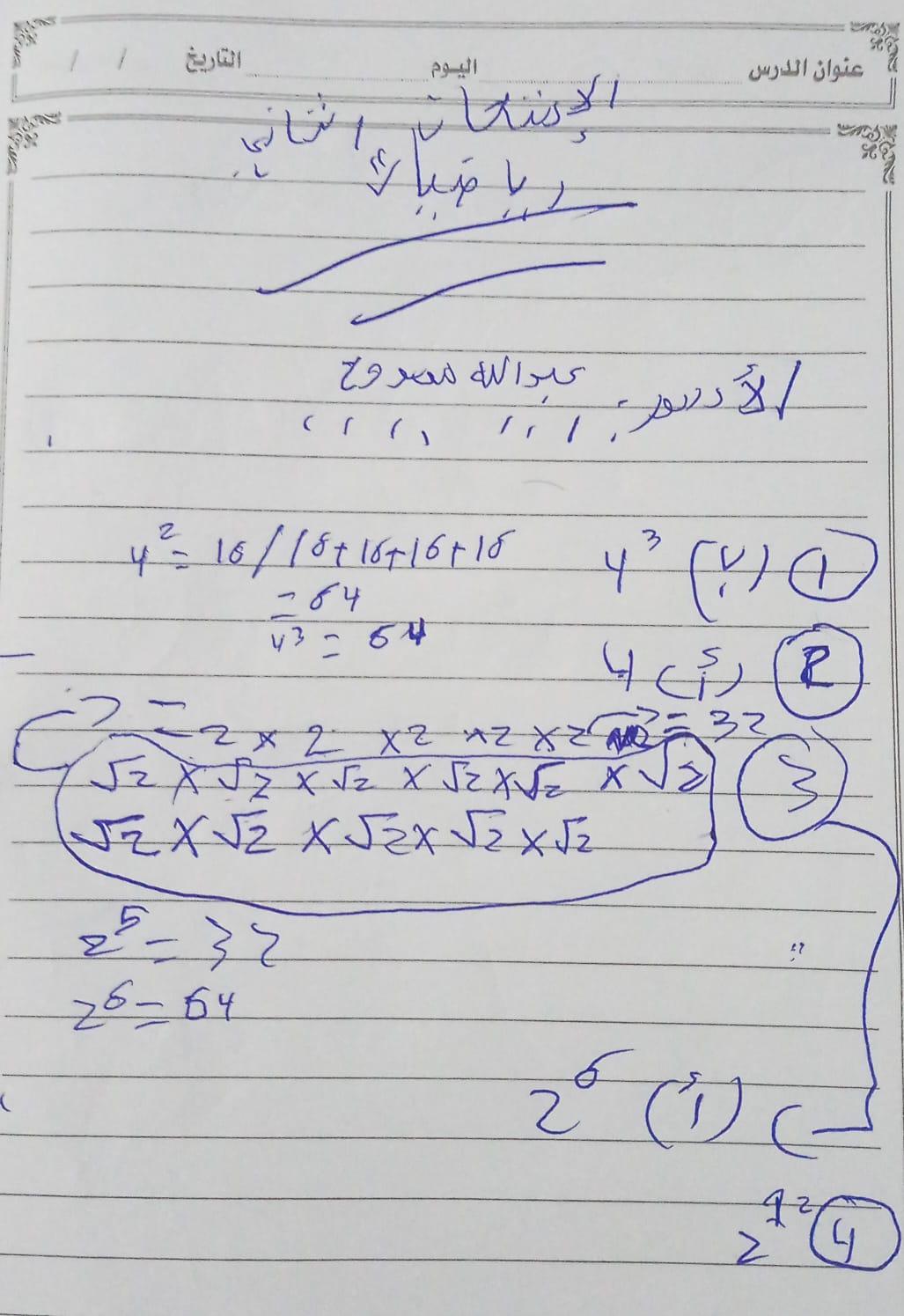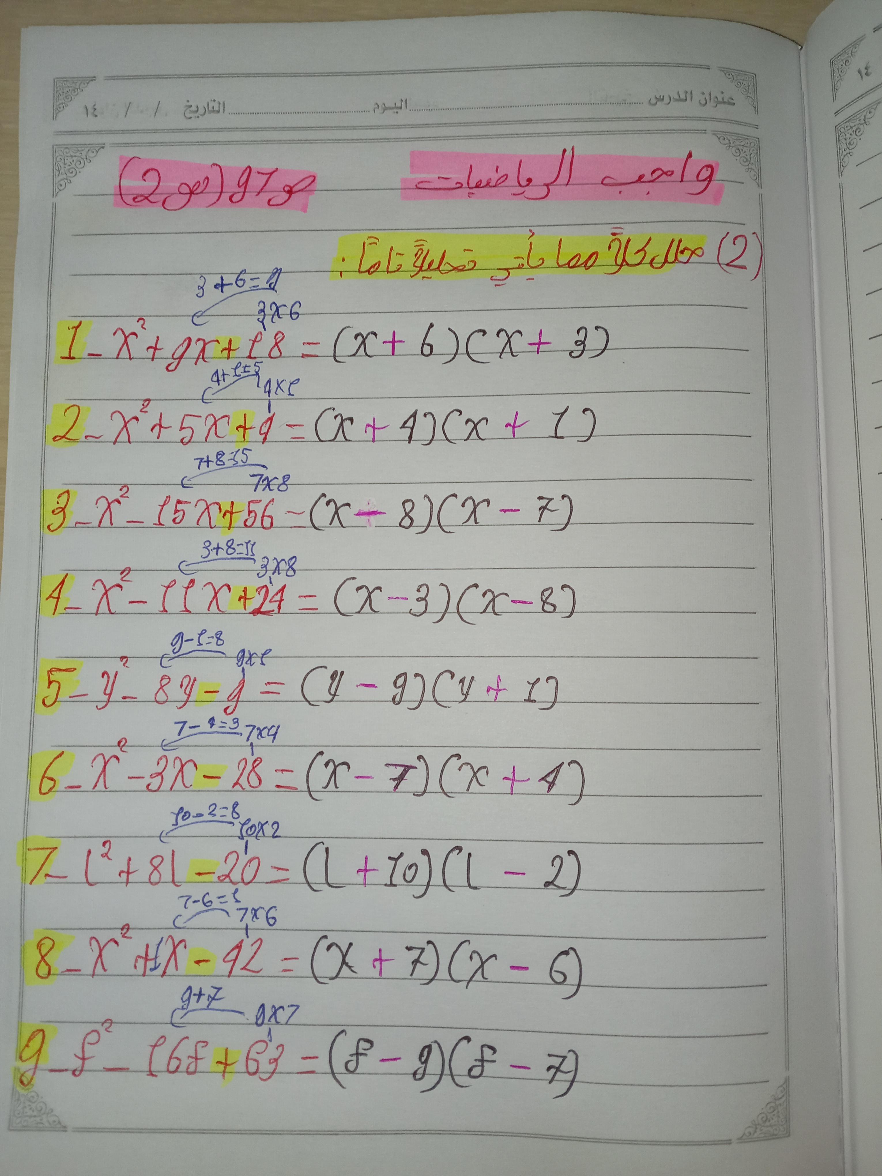 واجب الرياضيات. 📏🖋