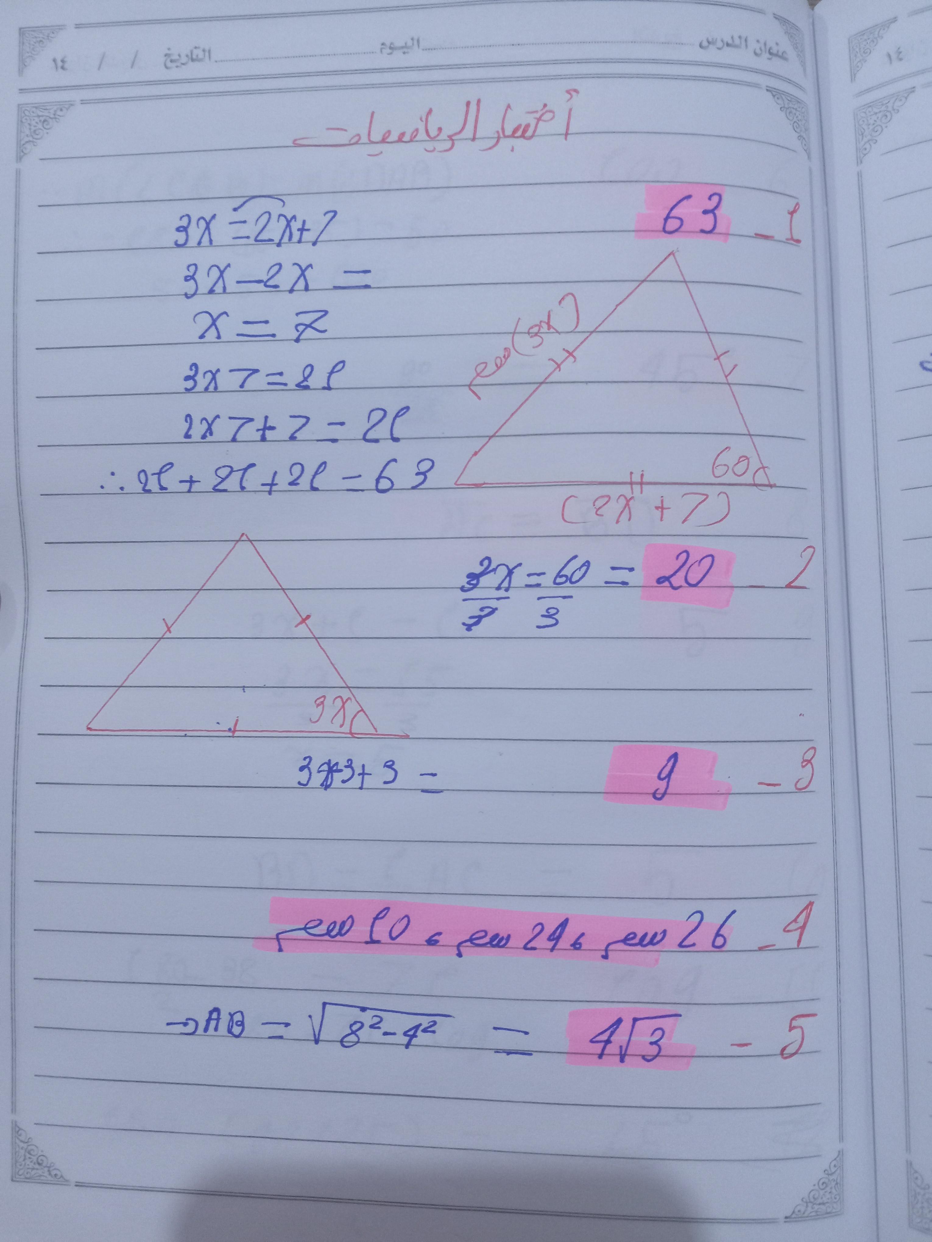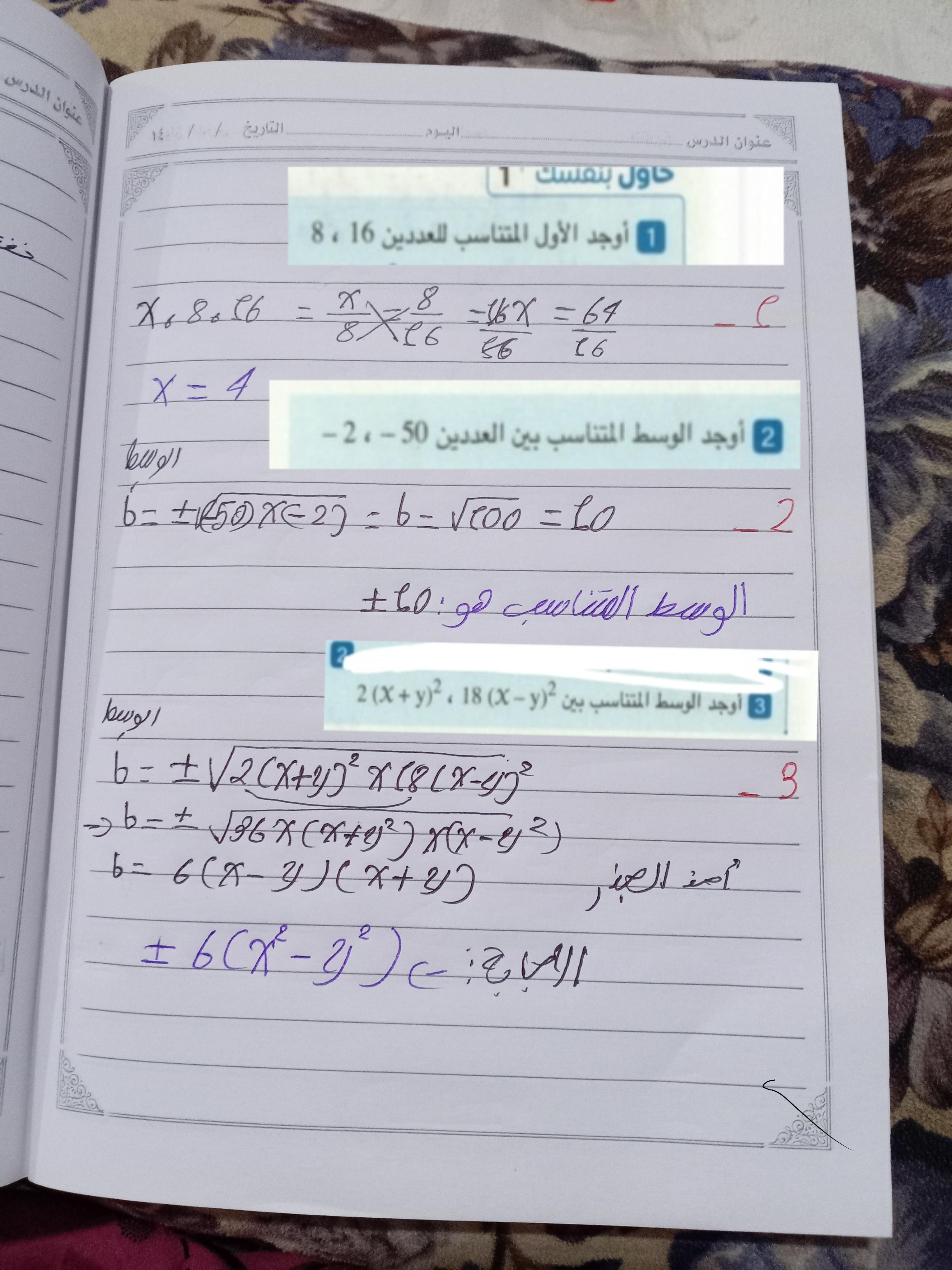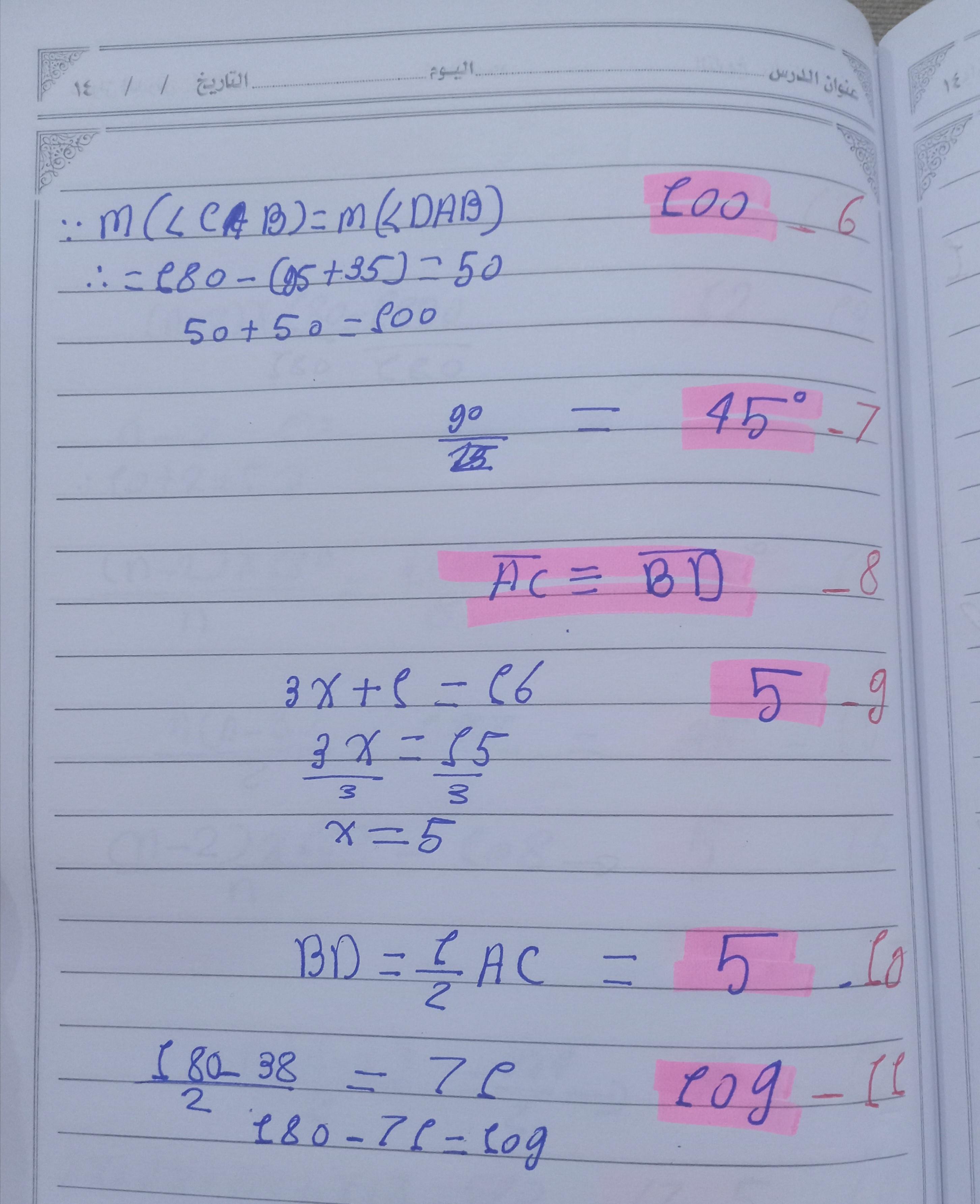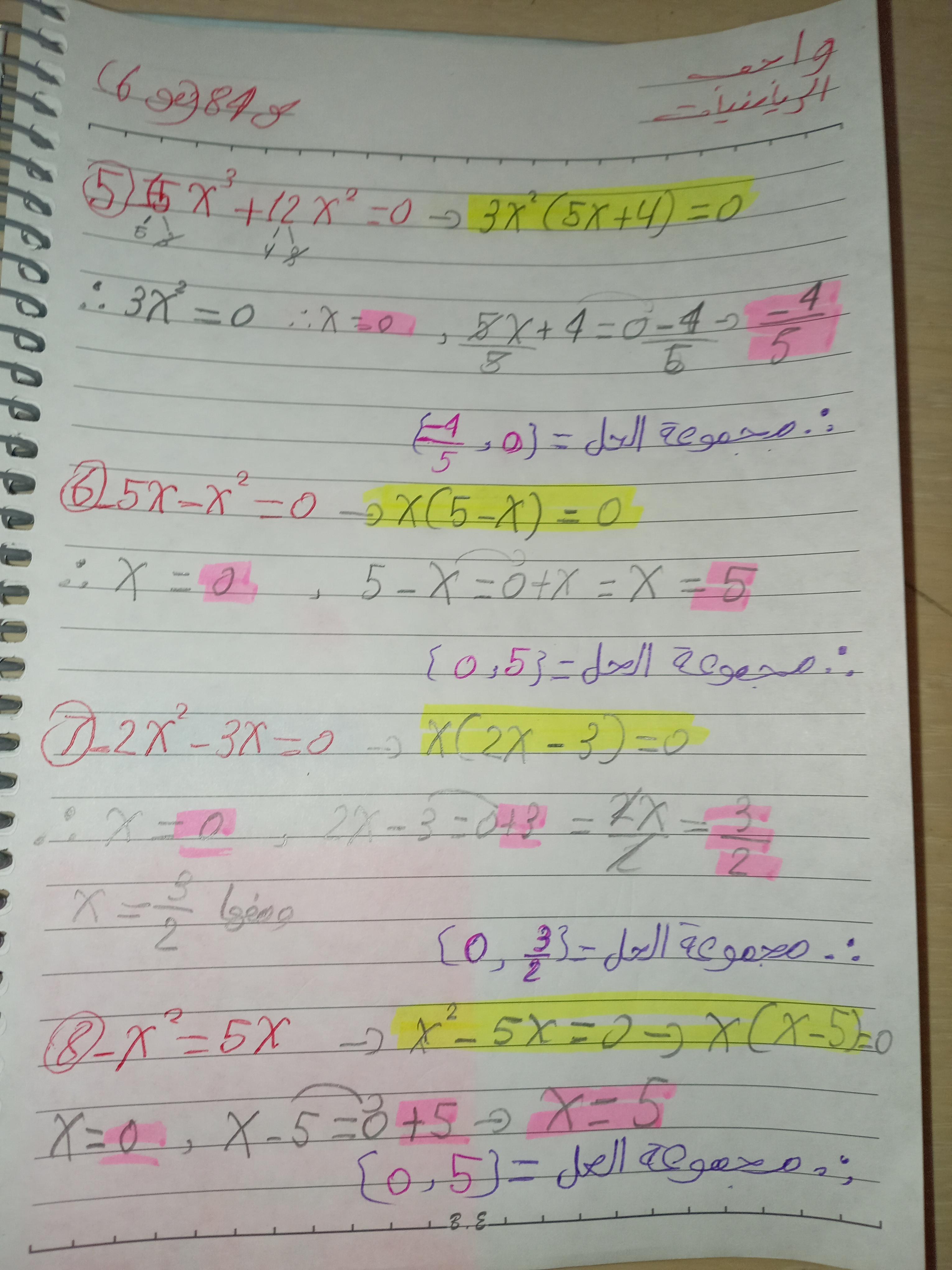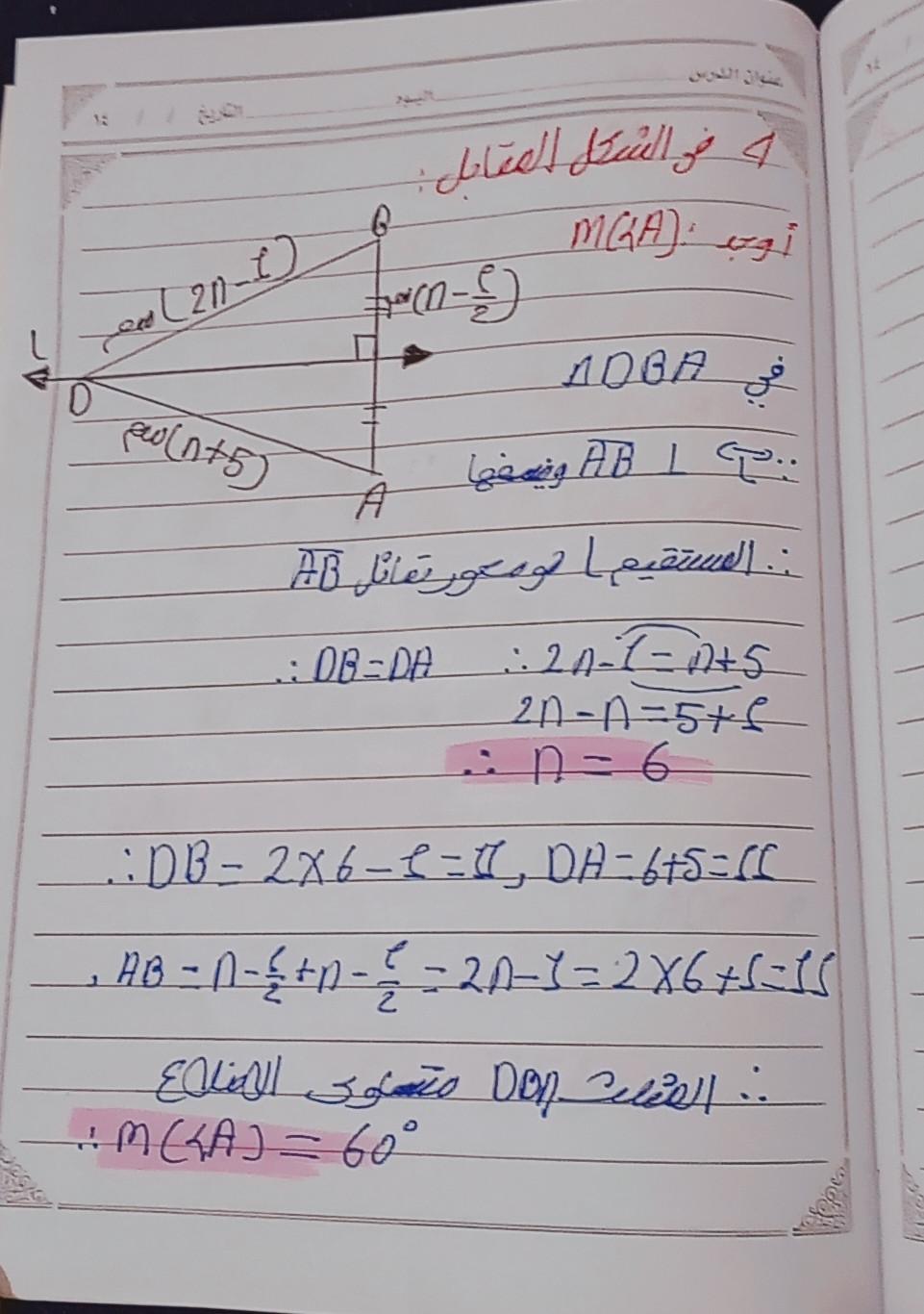 واجب الرياضيات. 📏🖋